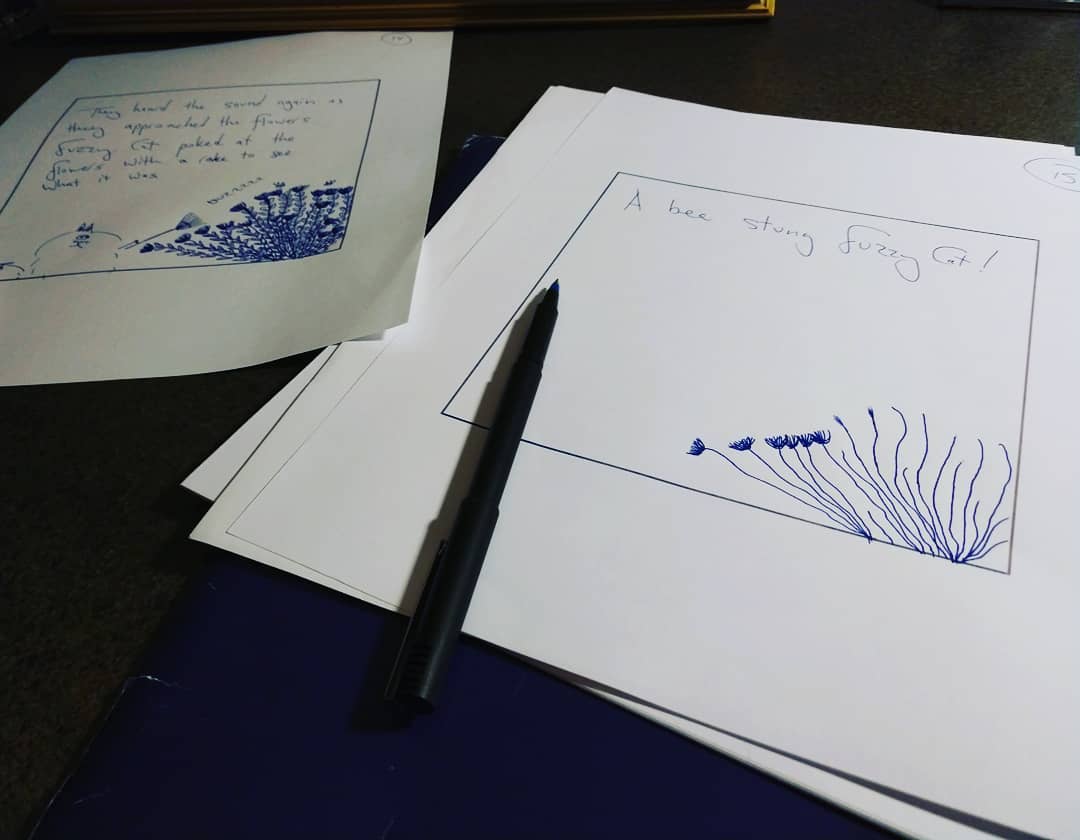 Peaceful way to end the weekend... The next Fuzzy Cat book is now more than halfway done! .