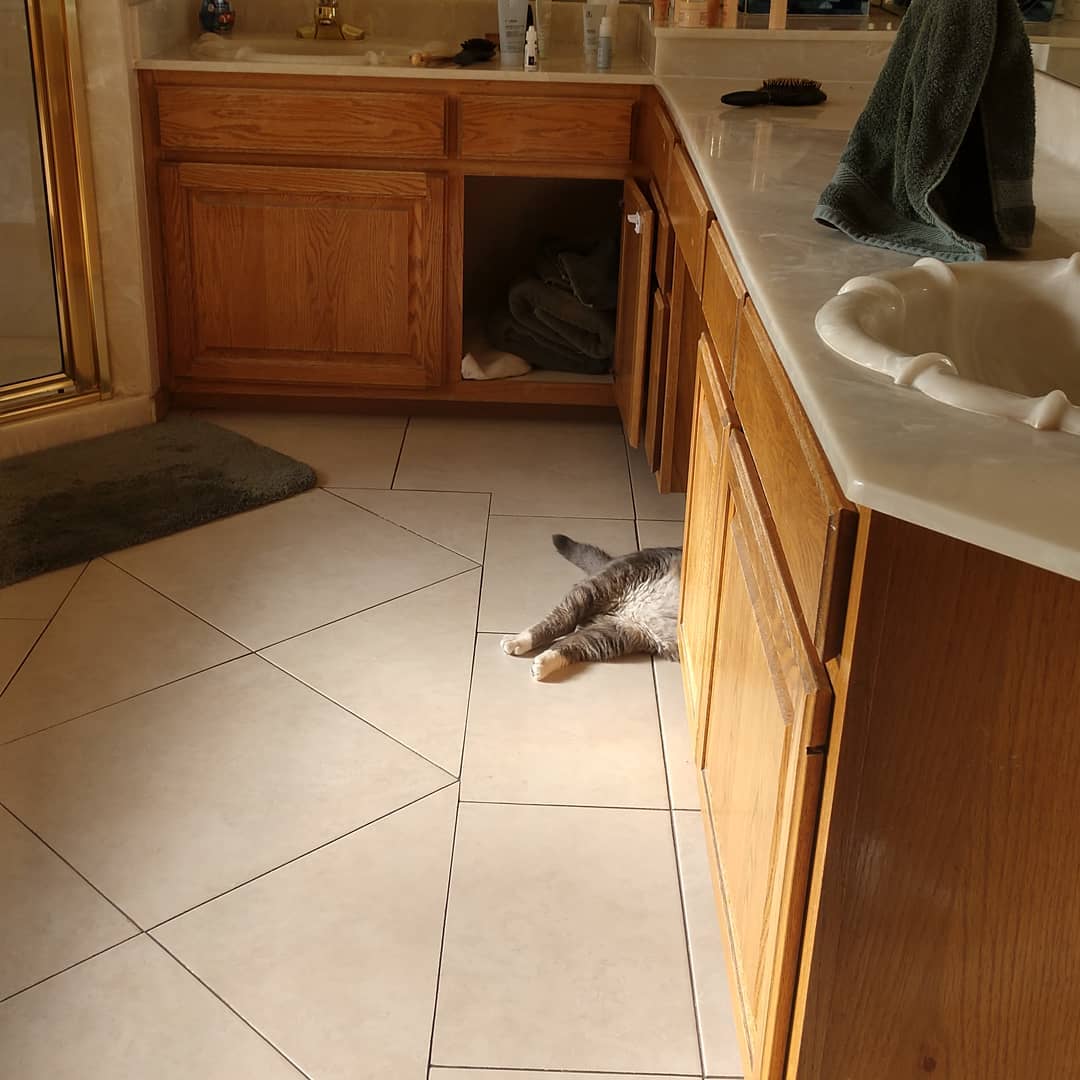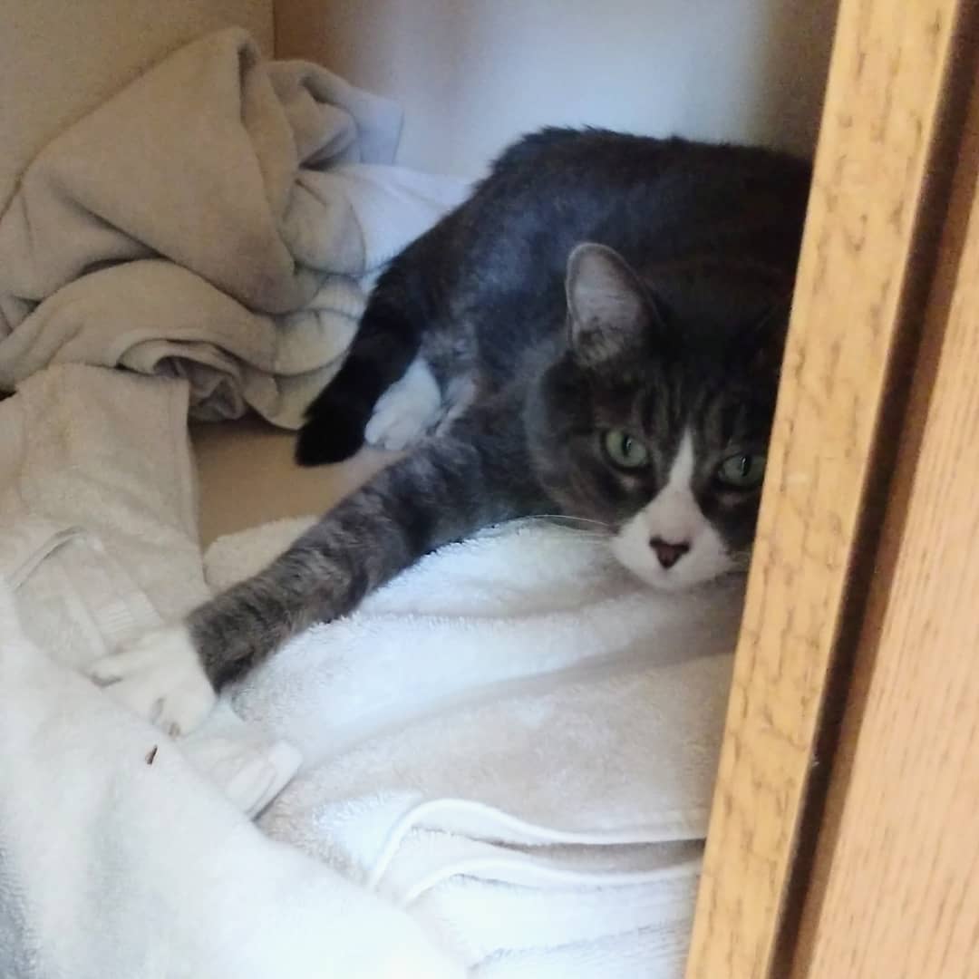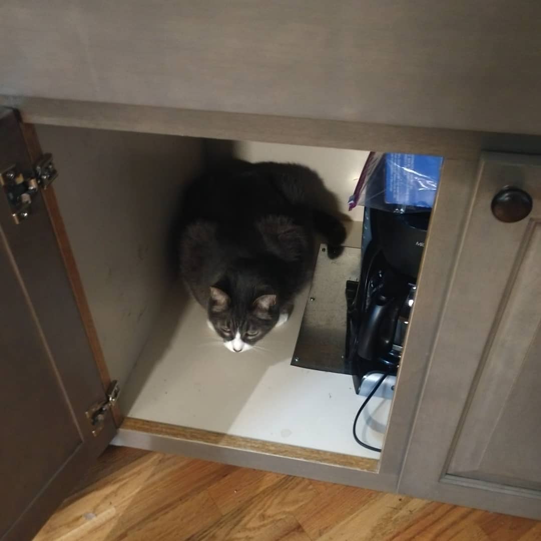 With the towels in the wash, there was plenty of room in the cabinet for lounging.