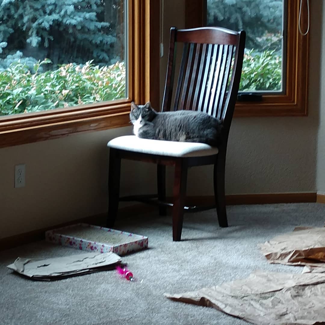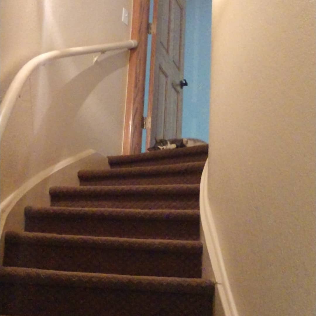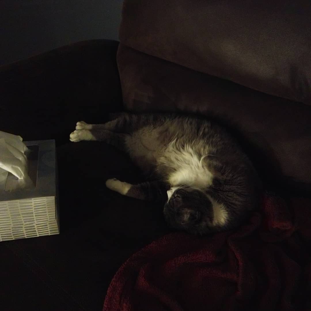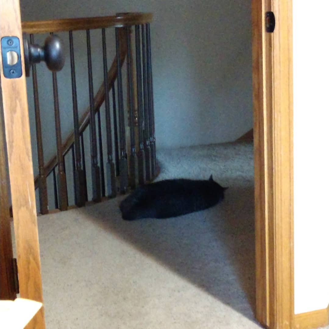 Little guard cat fell asleep (the trash truck has left the neighborhood, so the house is quiet again)