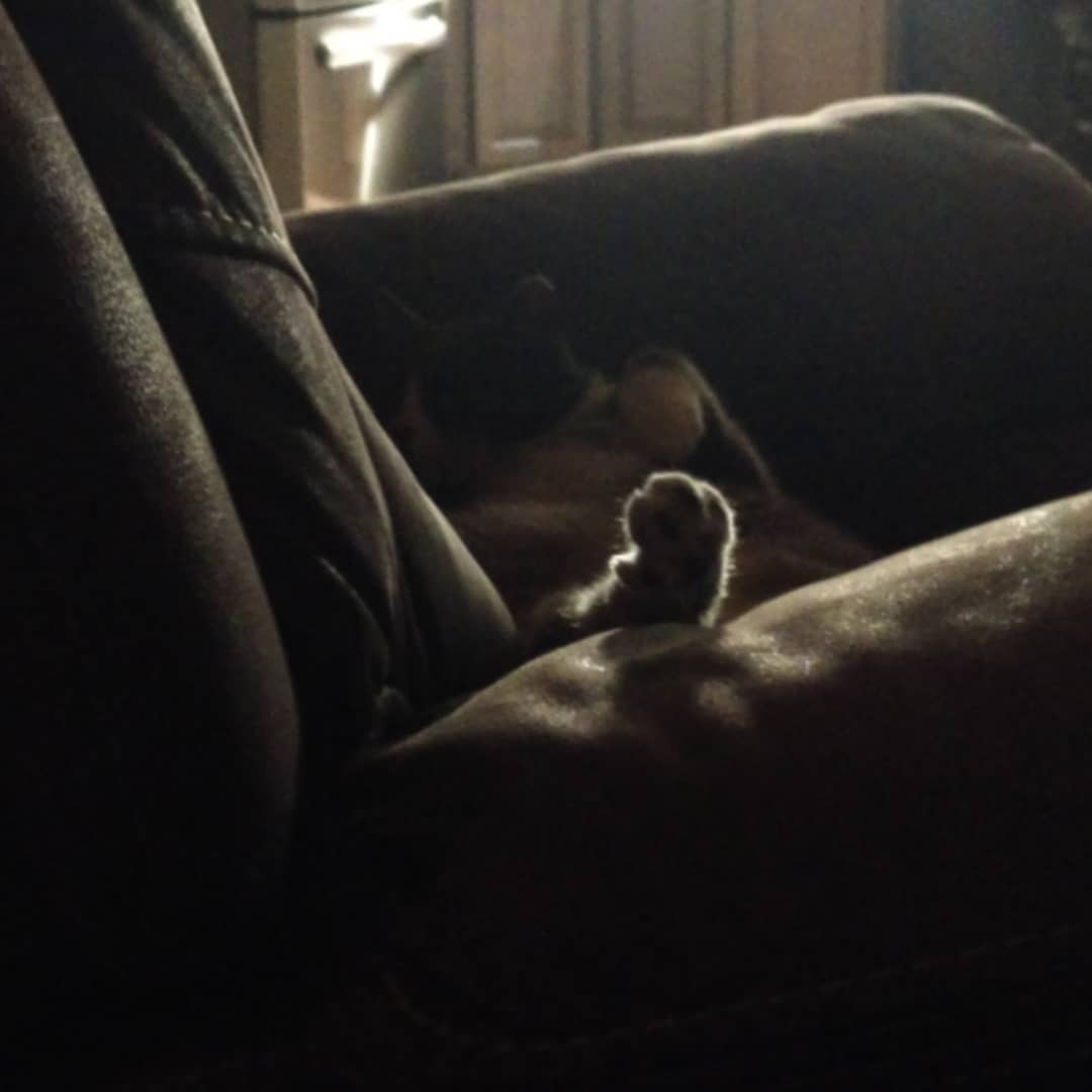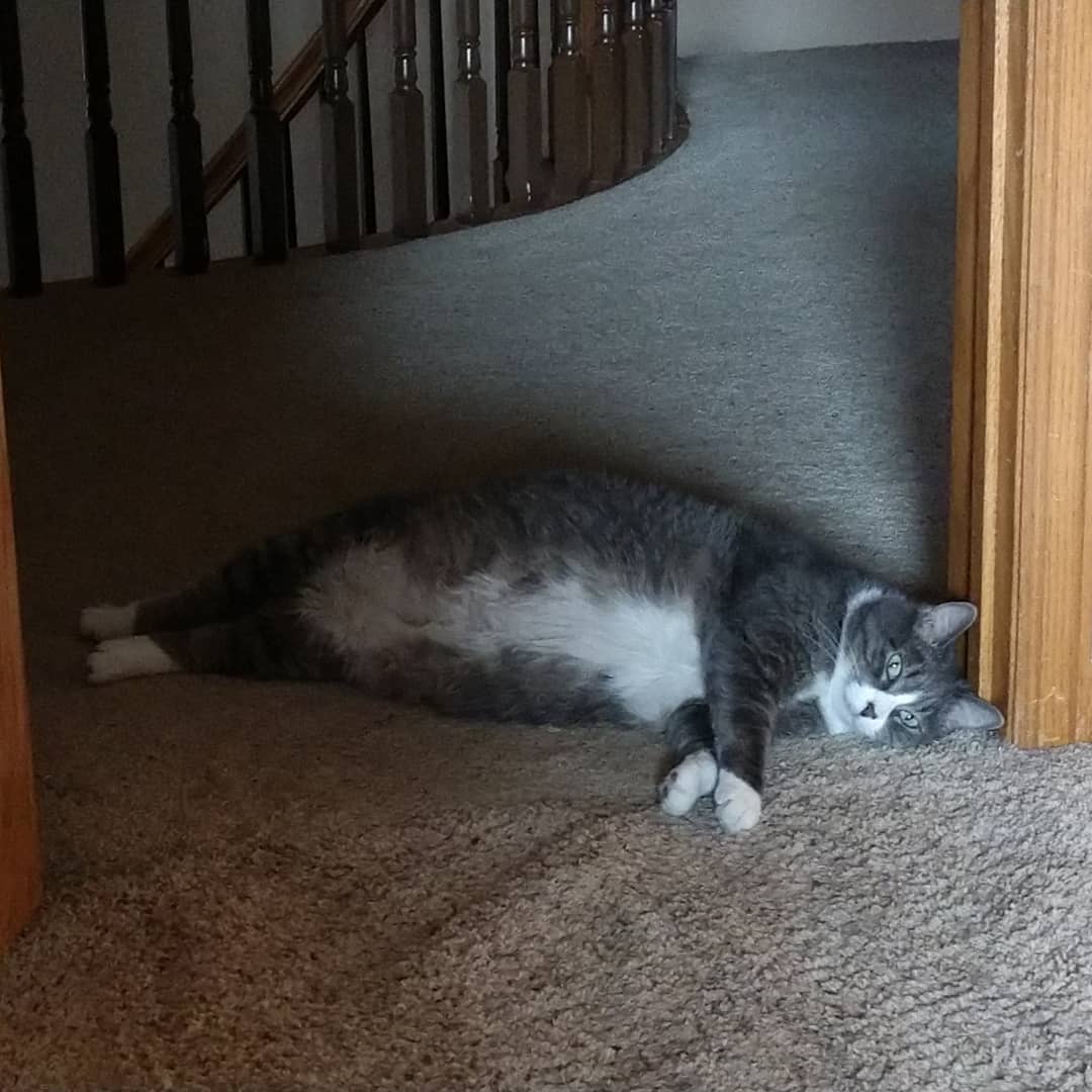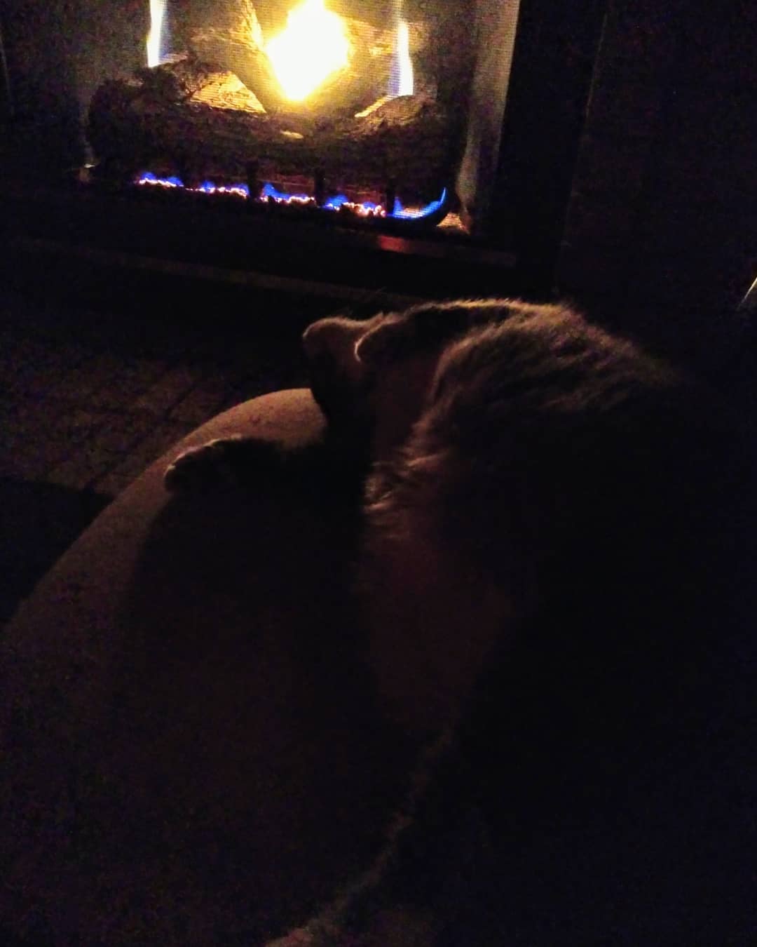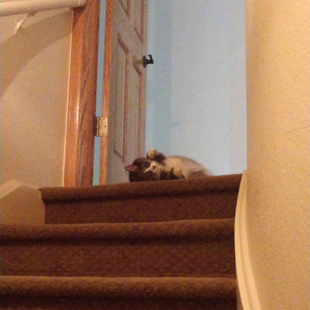 Little guard cat fell asleep (the trash truck has left the neighborhood, so the house is quiet again)