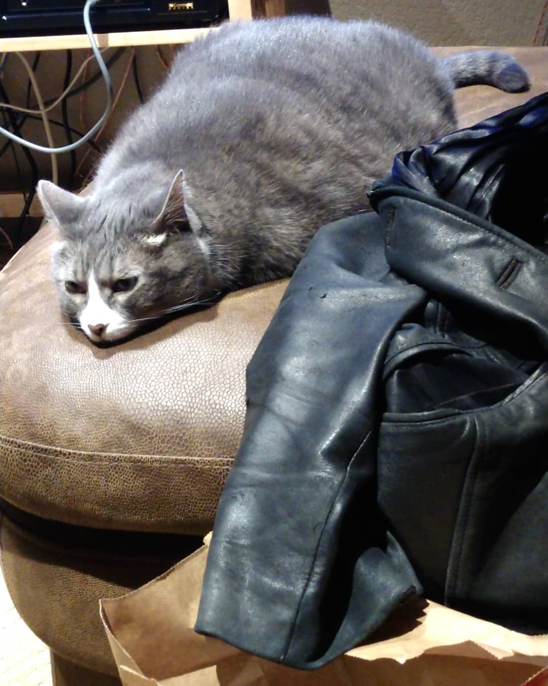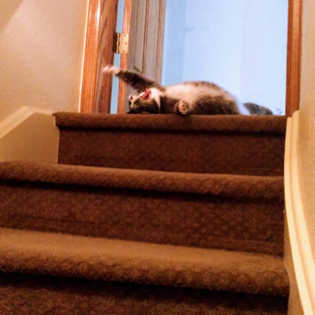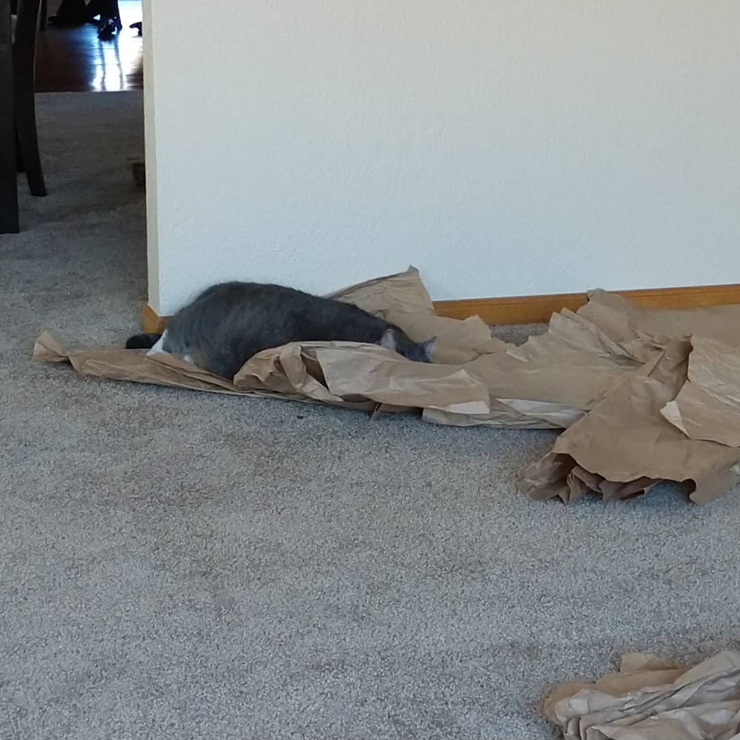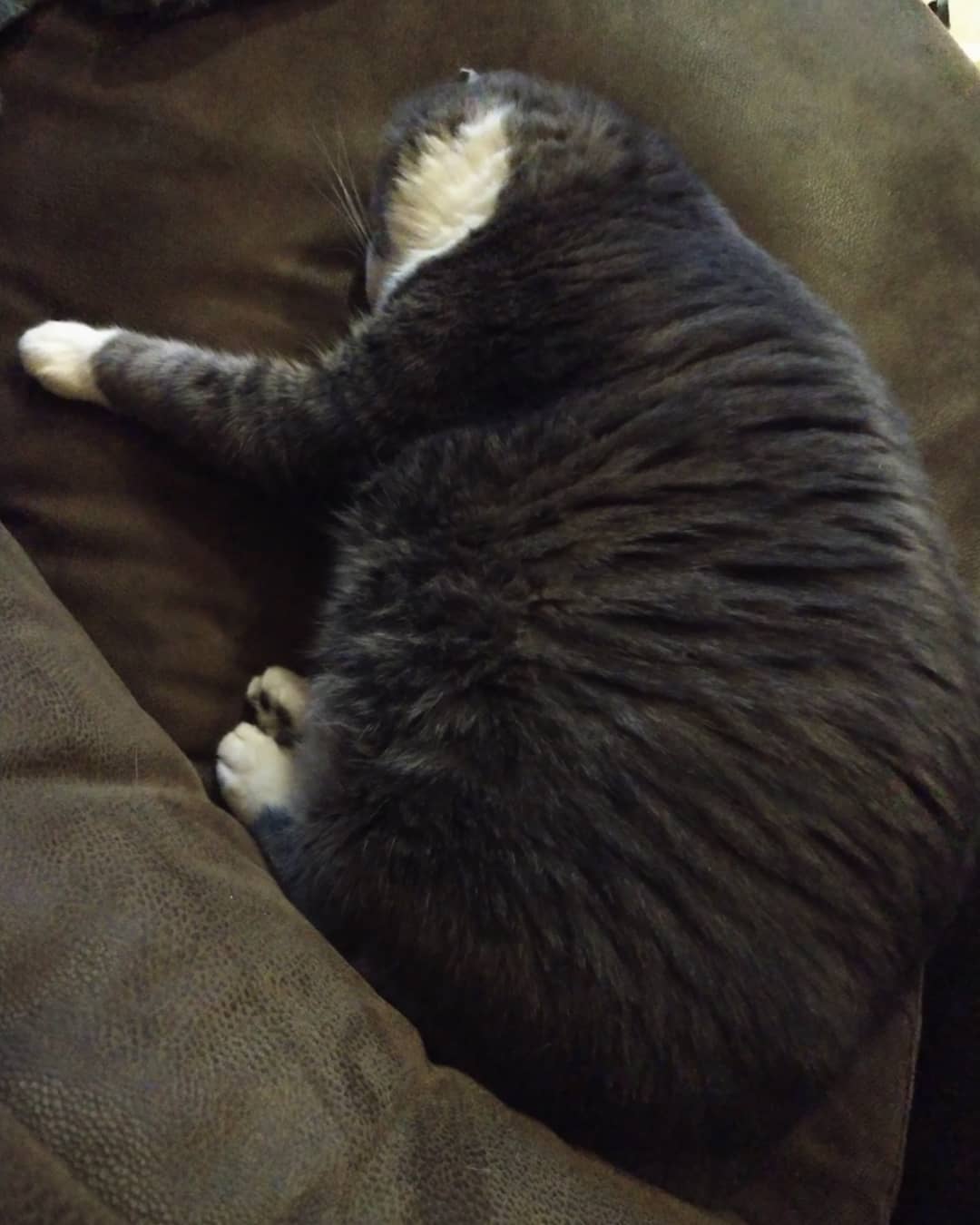 Little guard cat fell asleep (the trash truck has left the neighborhood, so the house is quiet again)