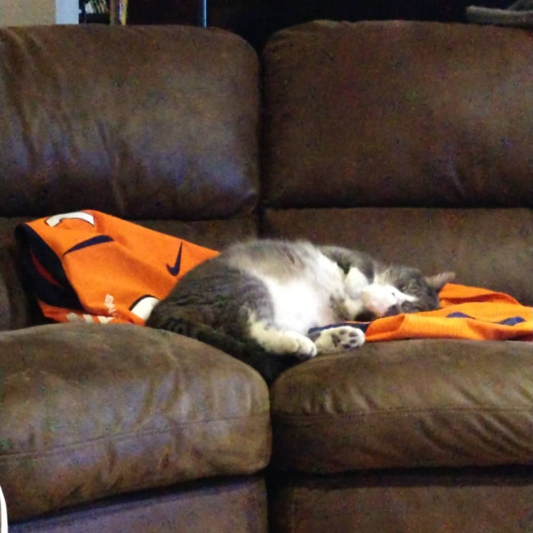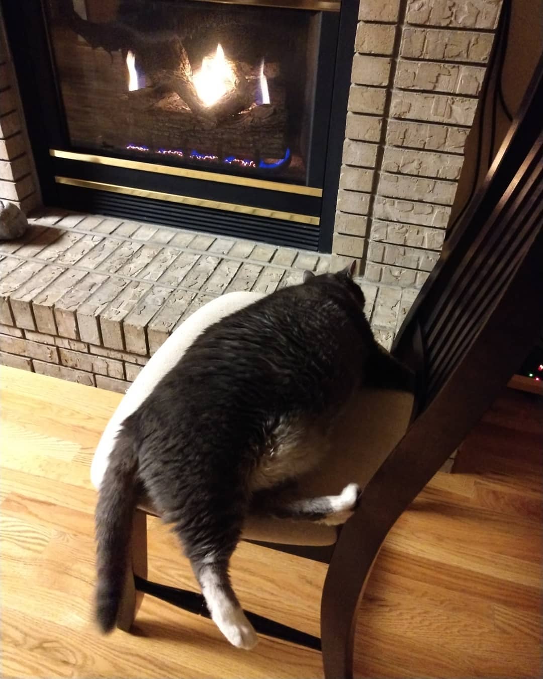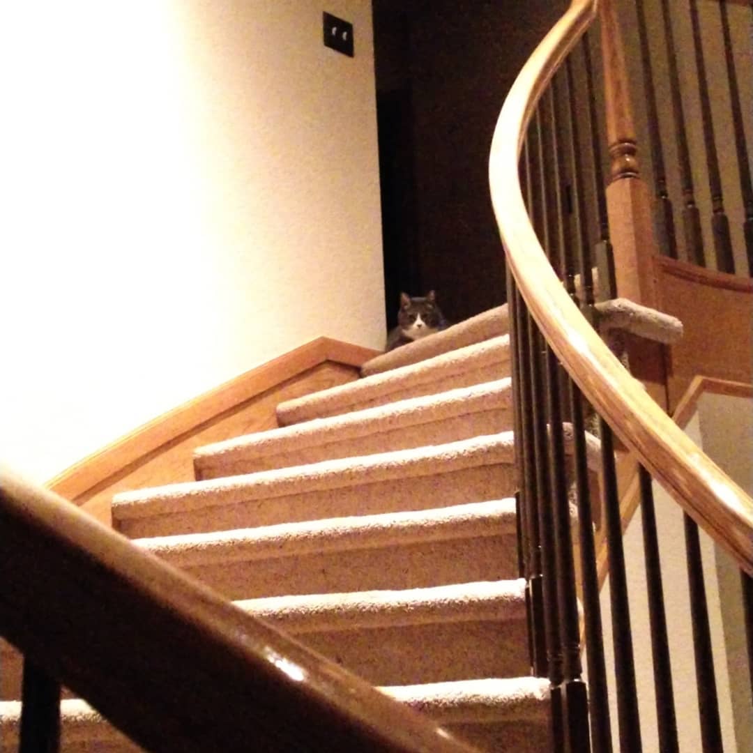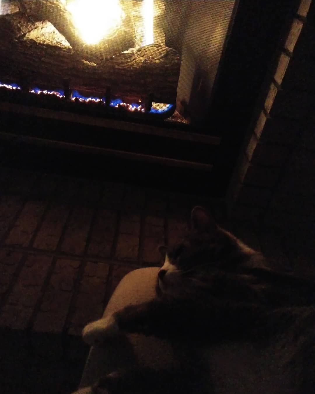 Little guard cat fell asleep (the trash truck has left the neighborhood, so the house is quiet again)