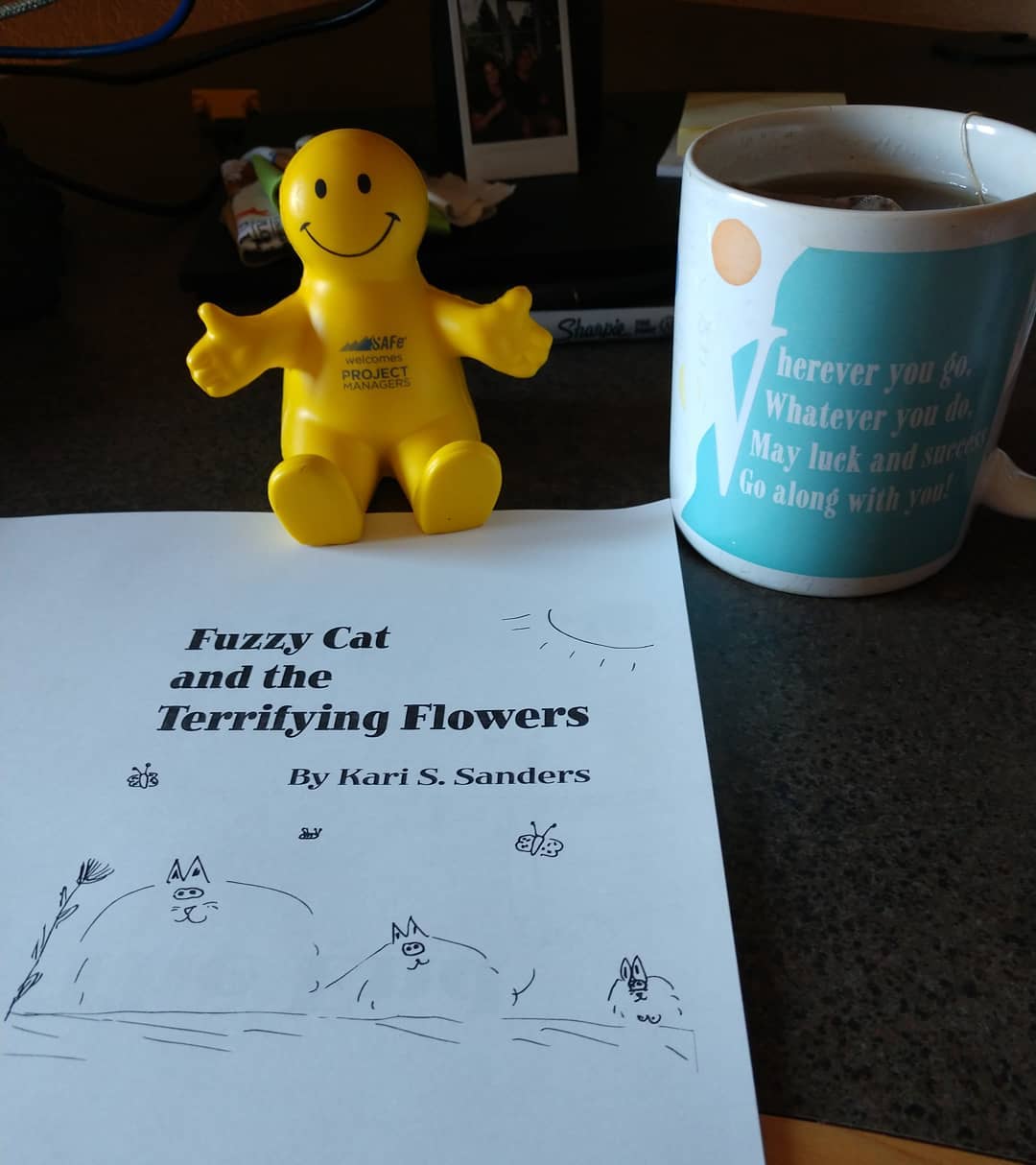 "Fuzzy Cat and the Terrifying Flowers" - welcome to the family! Excited to be sending my 4th book to my hubby for pre-press. I will let you know when it is available on Amazon.com . ??
