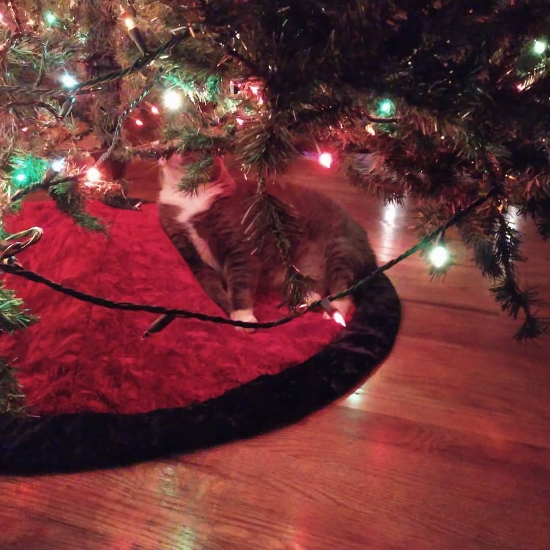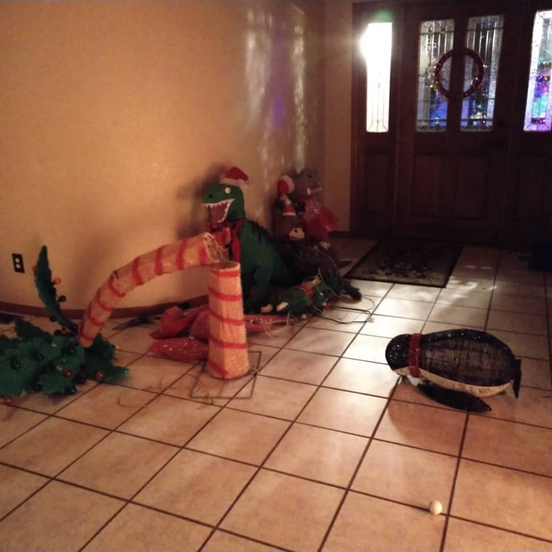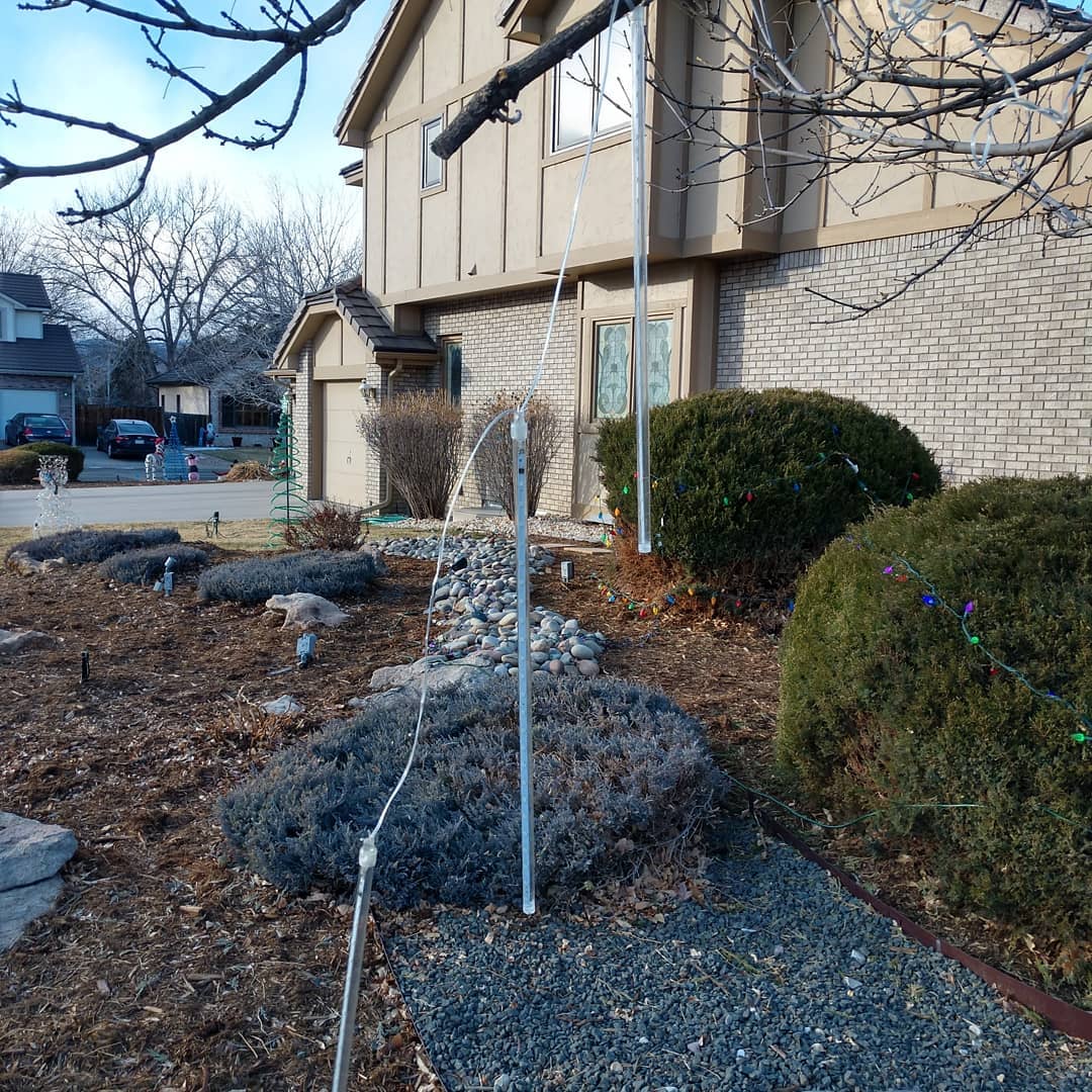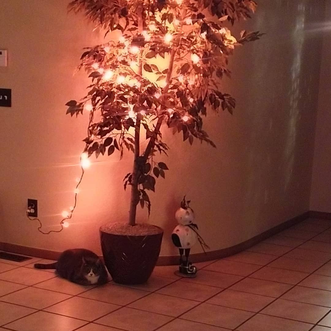 My helper and I fixed up the icicle lights after last night's wind storm. Much of the zoo ended up inside, some repairs are needed. Amazingly, only 3 icicles were lost when the wire snapped. I guess I gave "spare icicles" now.