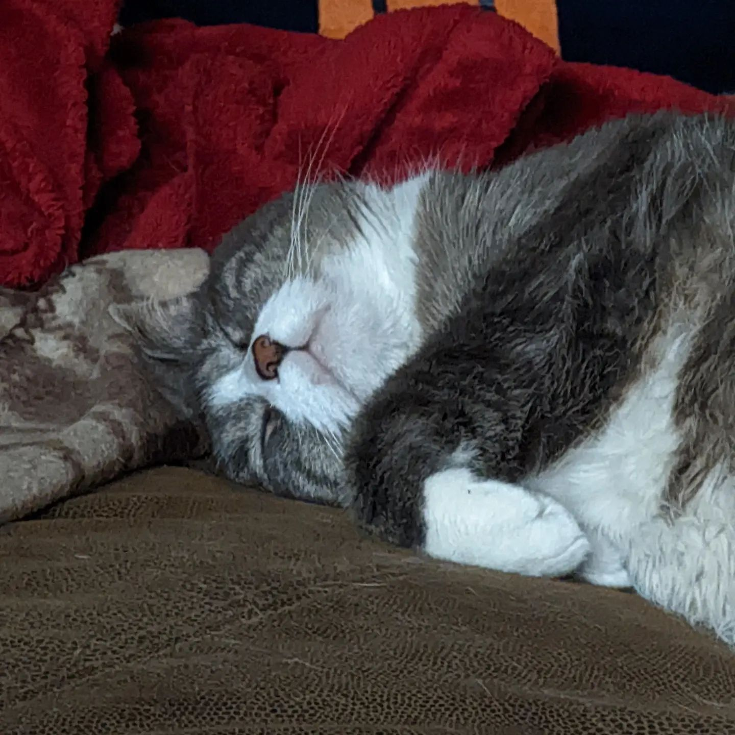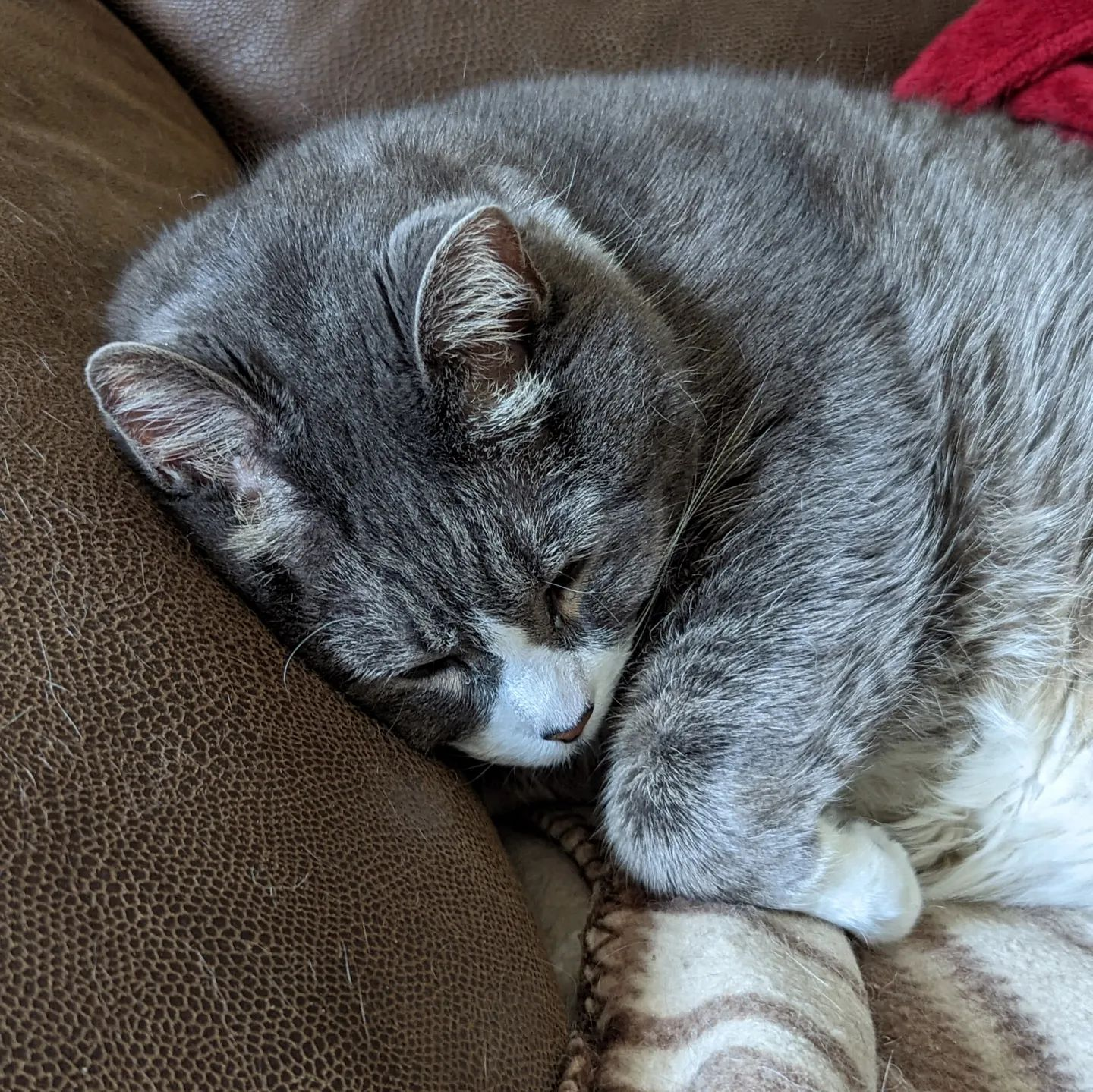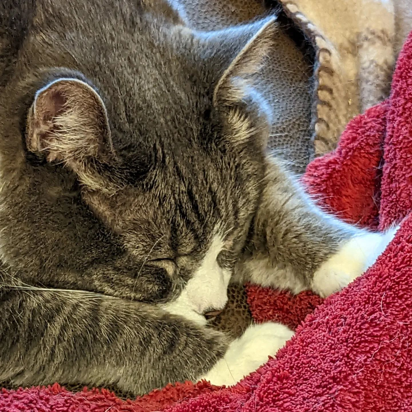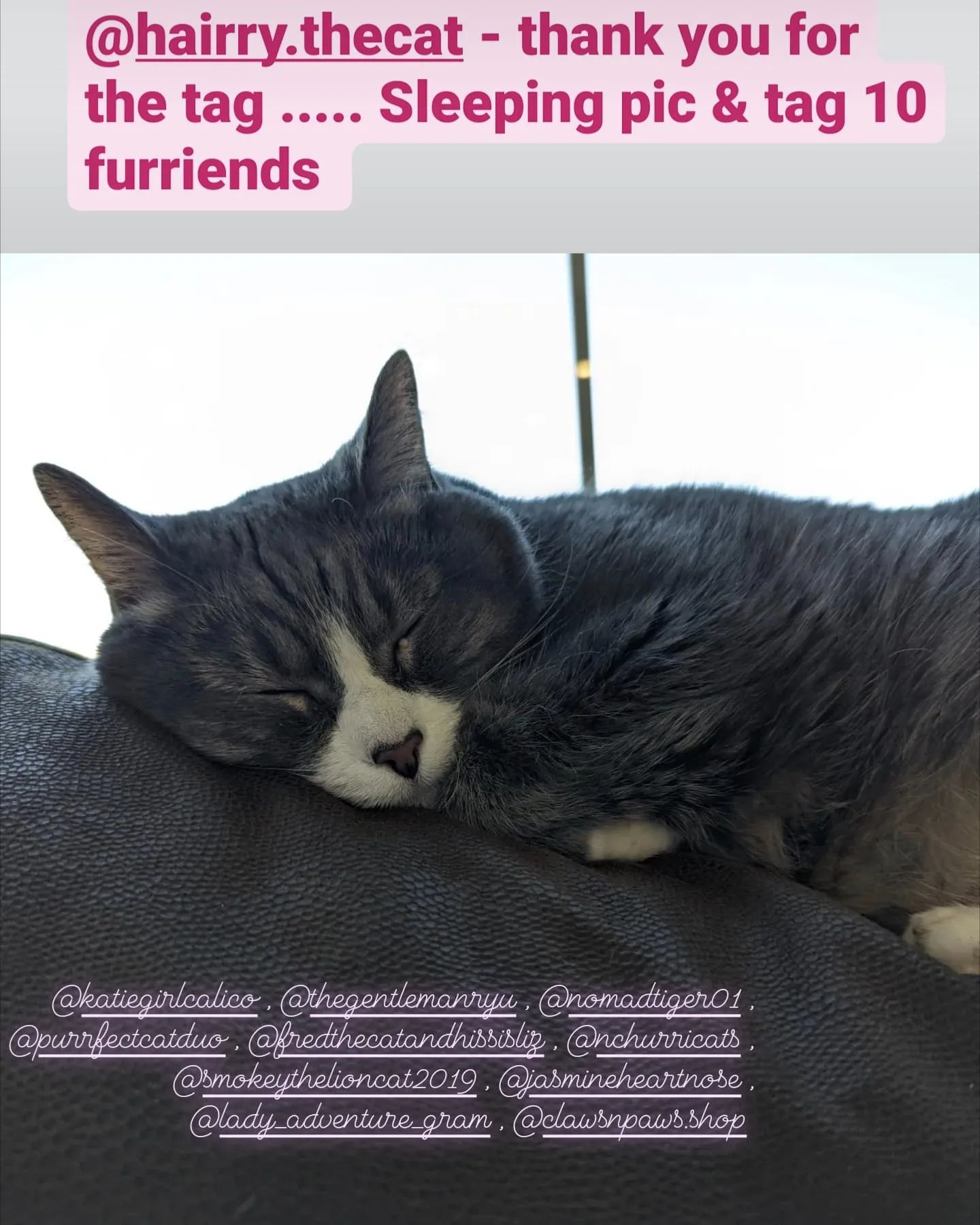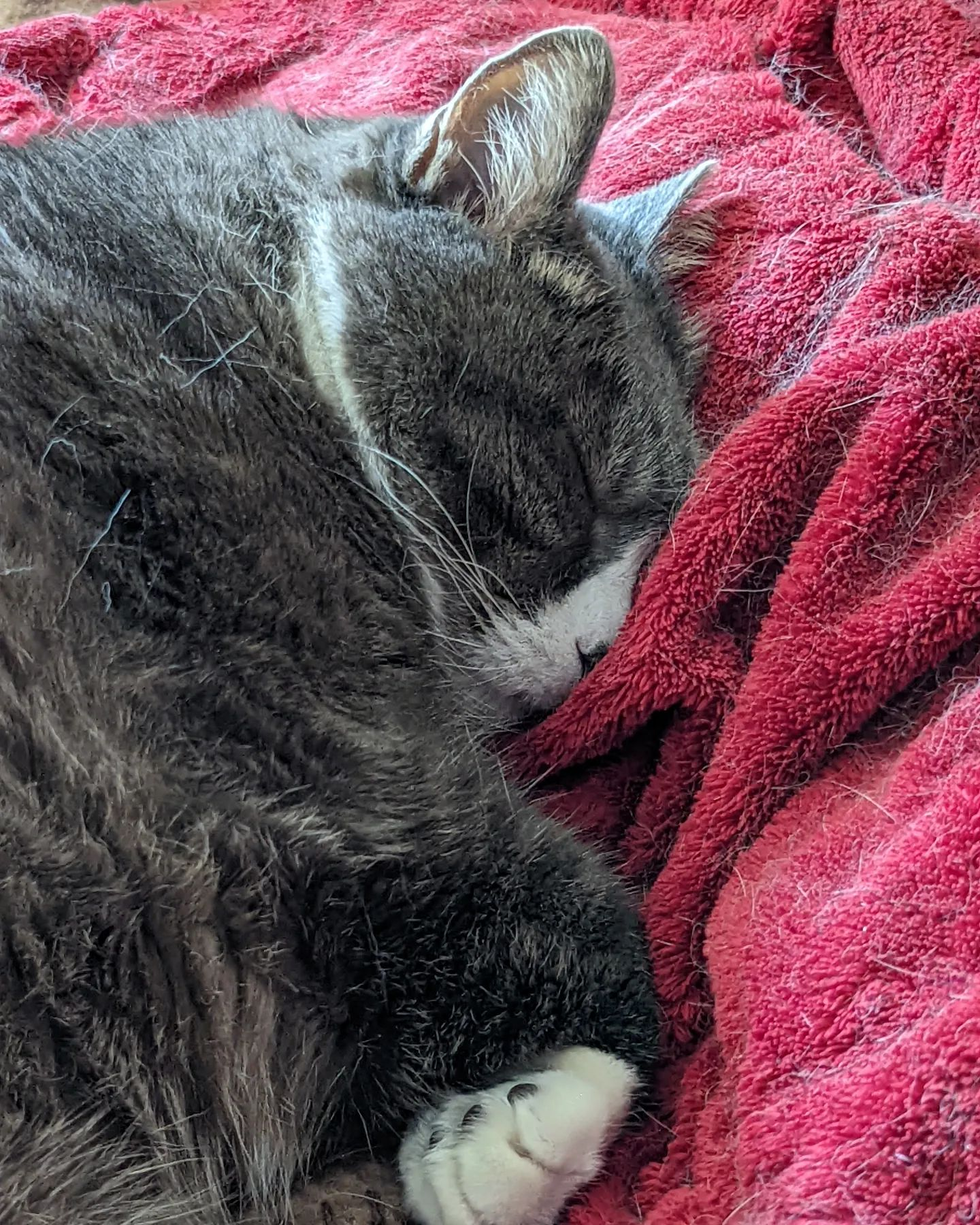 ?????? or awake? Actually, Ziggy is posing and if you look carefully, one eye is checking for when the picture is done. Meowdeling... ??