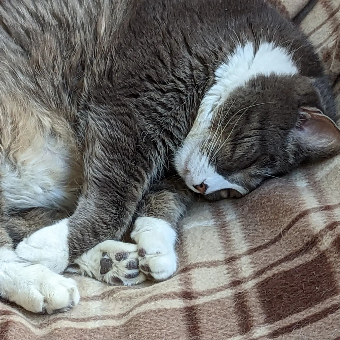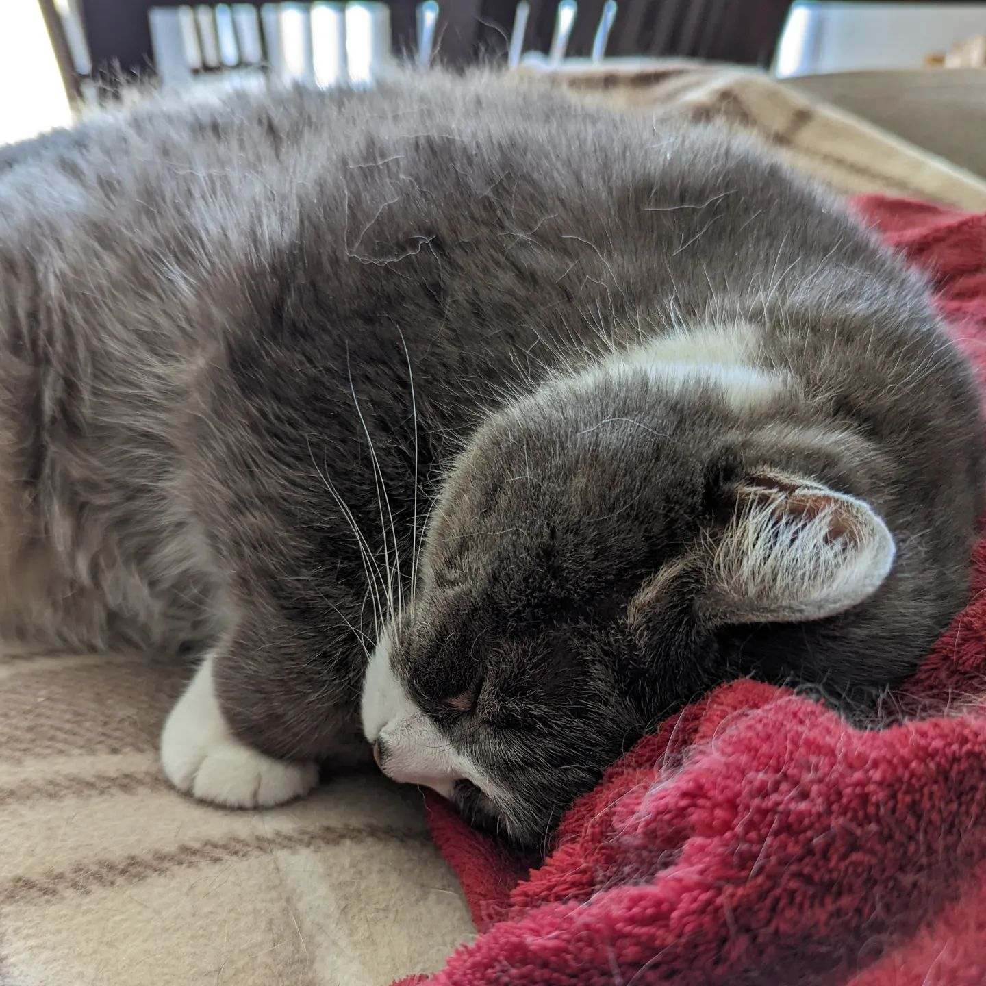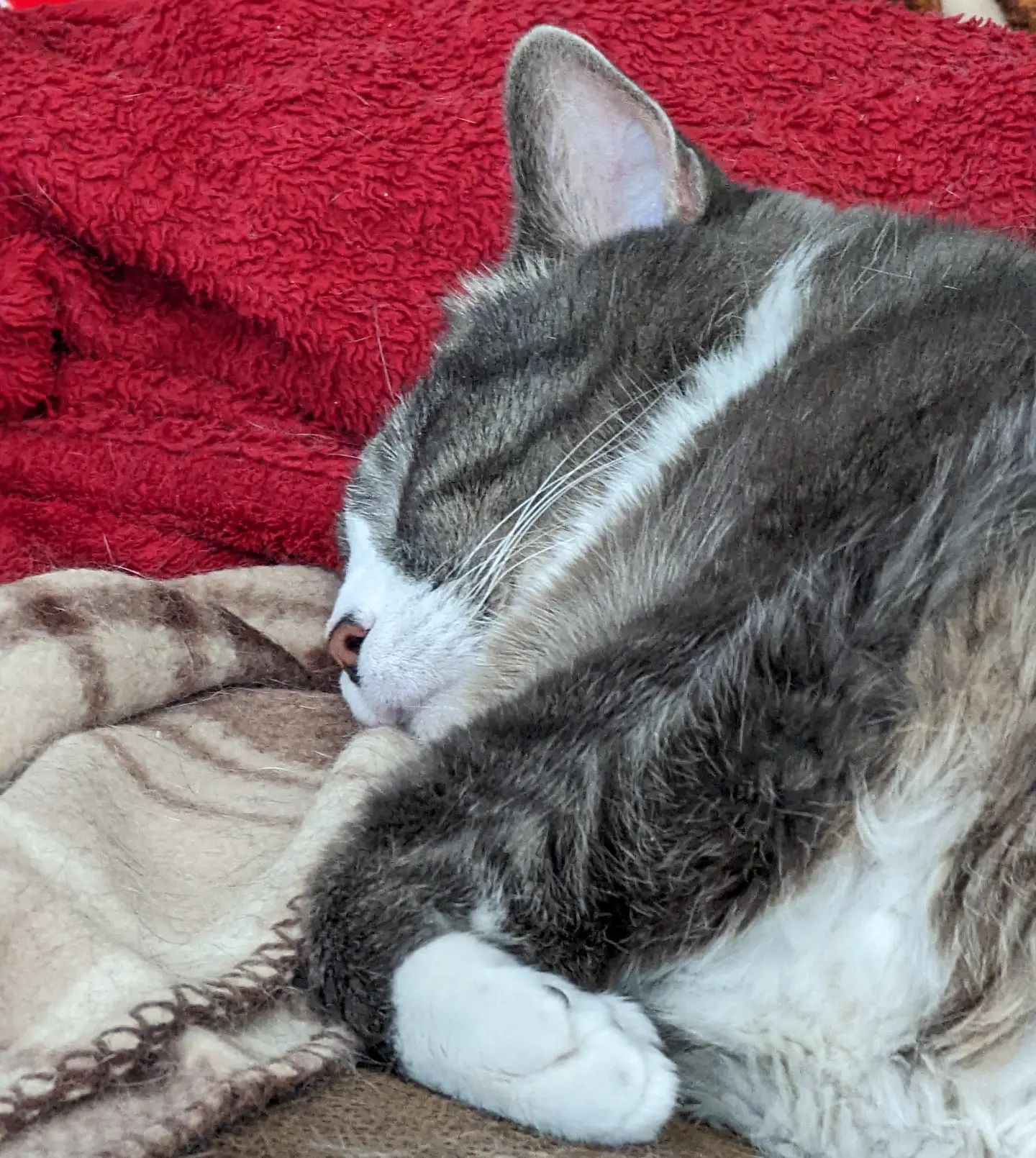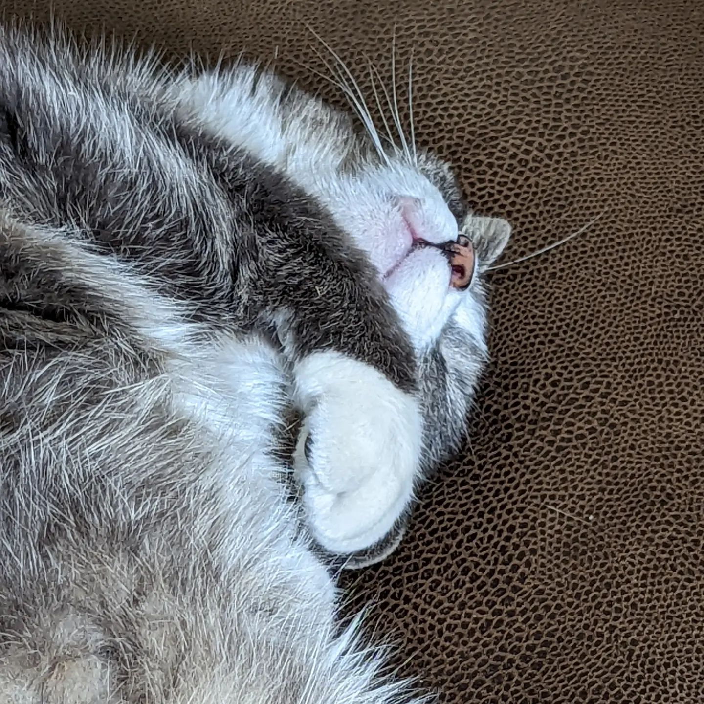 ?????? or awake? Actually, Ziggy is posing and if you look carefully, one eye is checking for when the picture is done. Meowdeling... ??