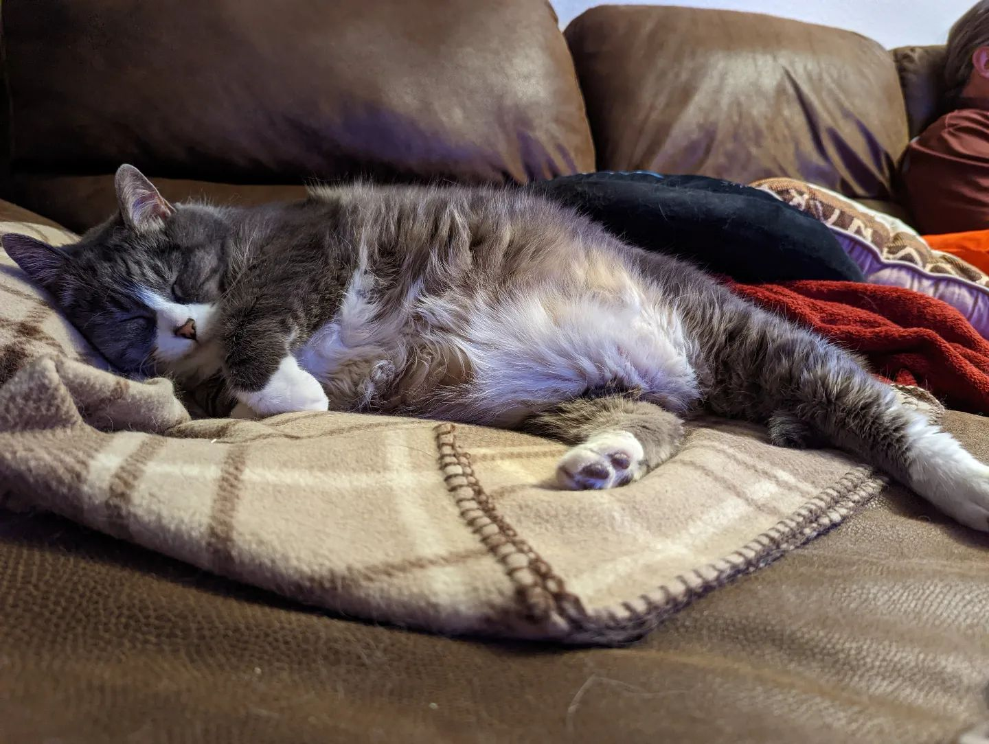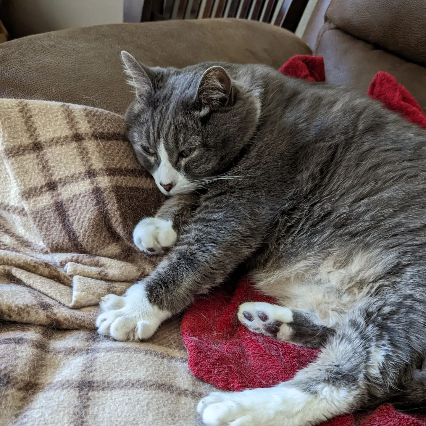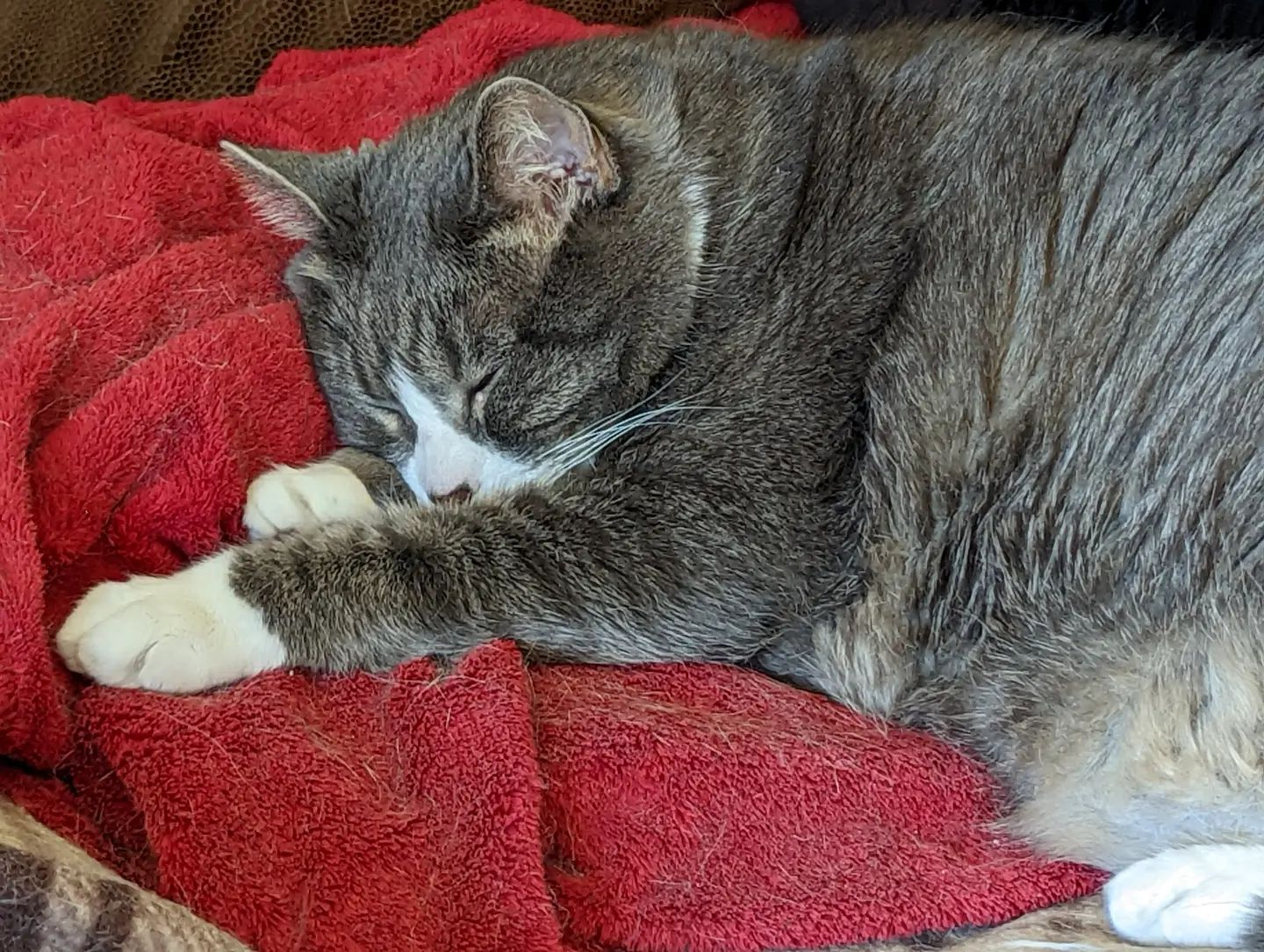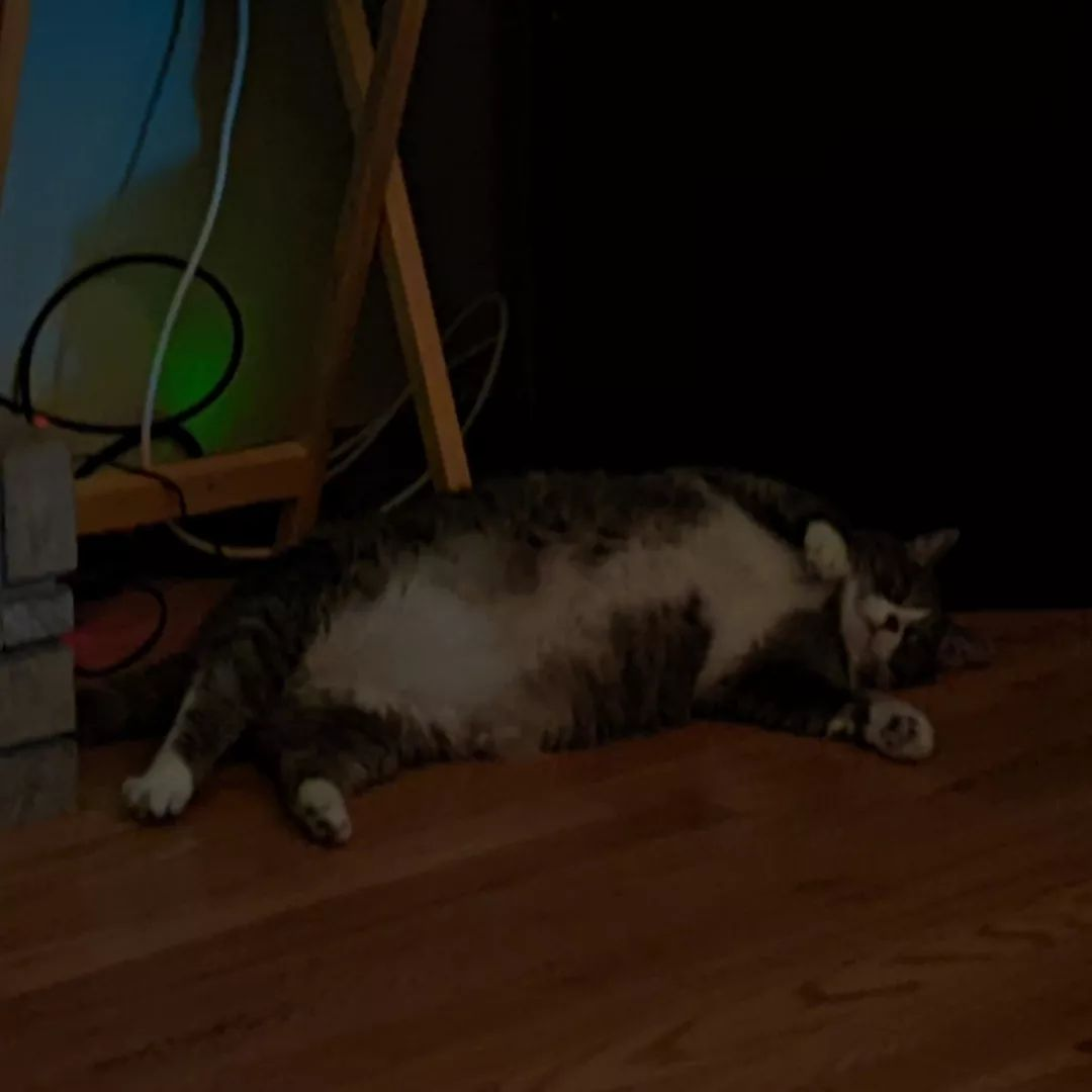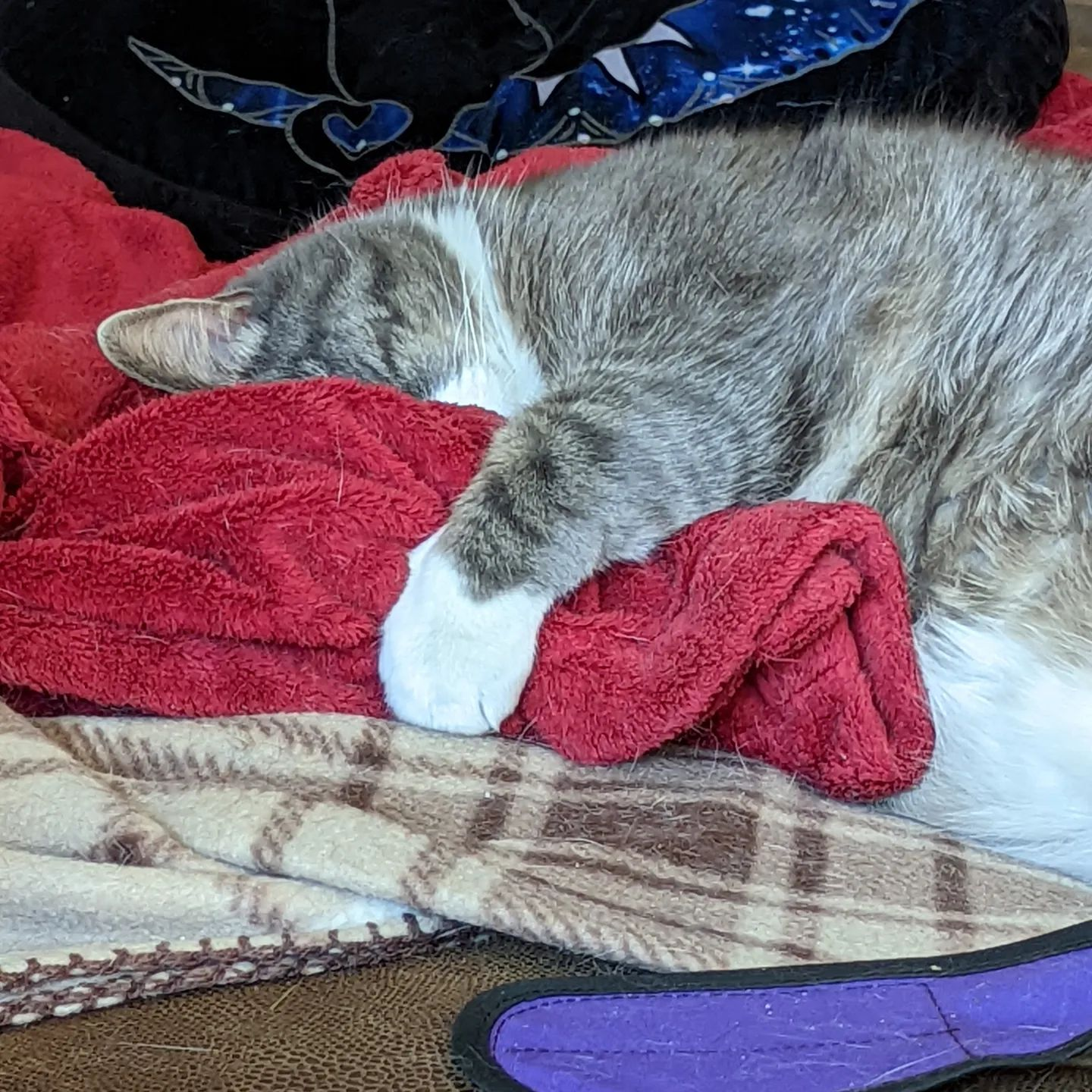 ?????? or awake? Actually, Ziggy is posing and if you look carefully, one eye is checking for when the picture is done. Meowdeling... ??