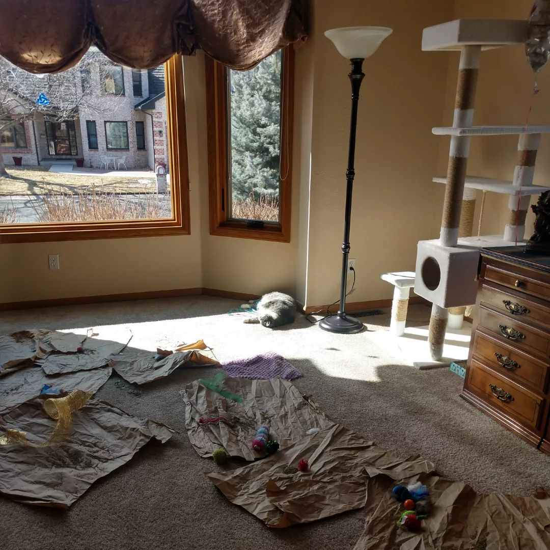 Prelude to zoomies... Swipe through to see how Crinkle Paper Empire craziness led to zoomies ??????
