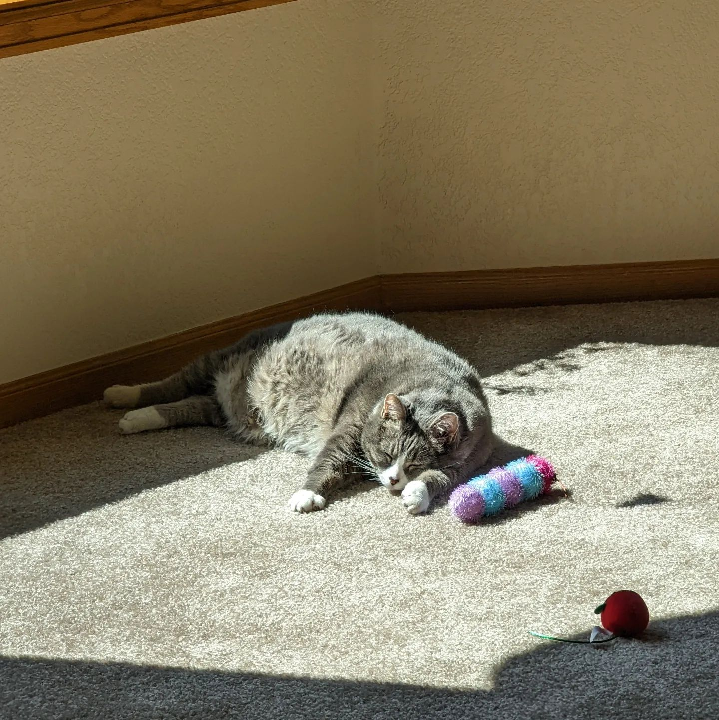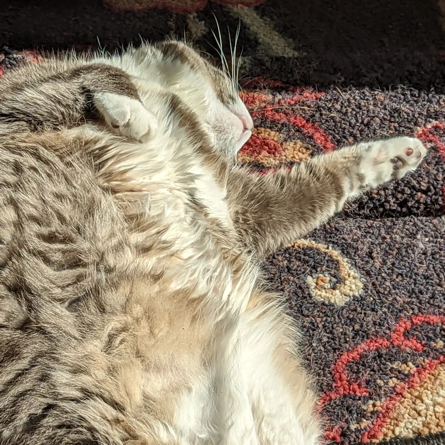 Toasty, part 3. It's ba Sunny Sunday here, currently 51 deg (10.5 C). The snow is melting and Ziggy is so toasty her fur is almost hot to the touch.