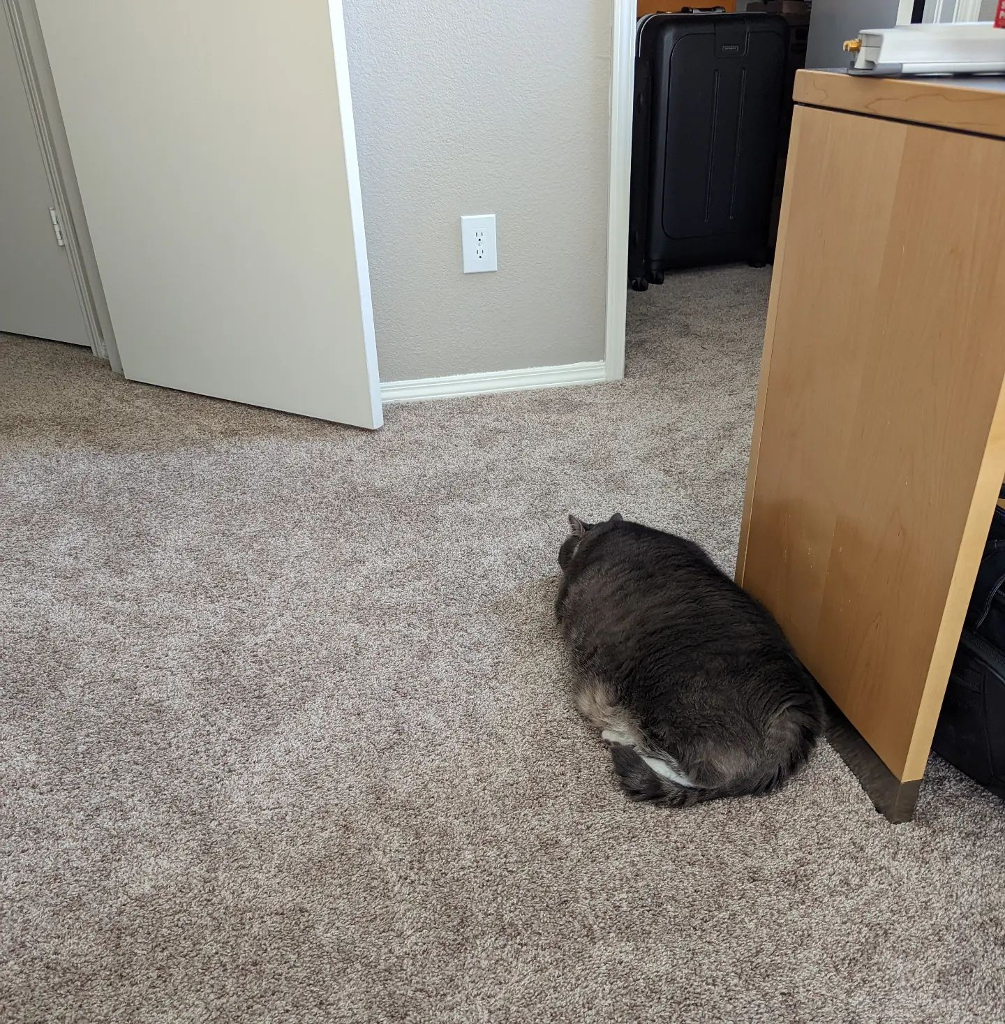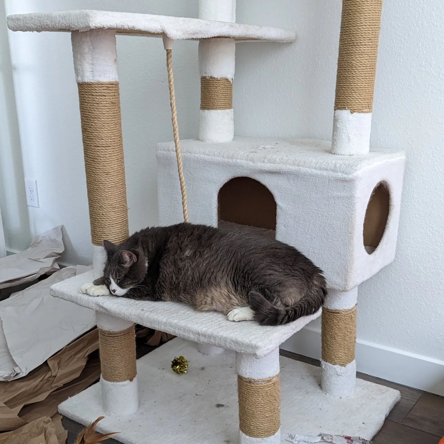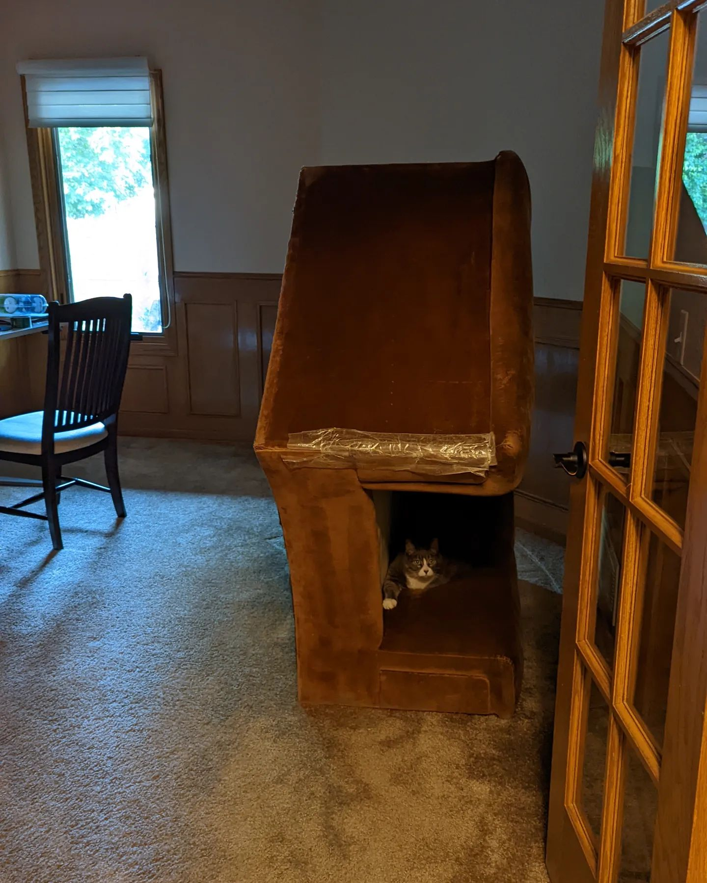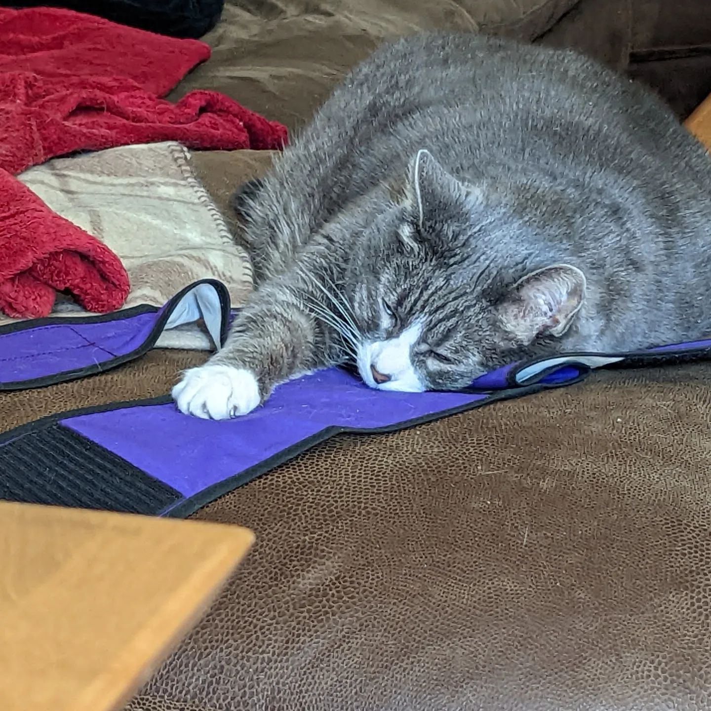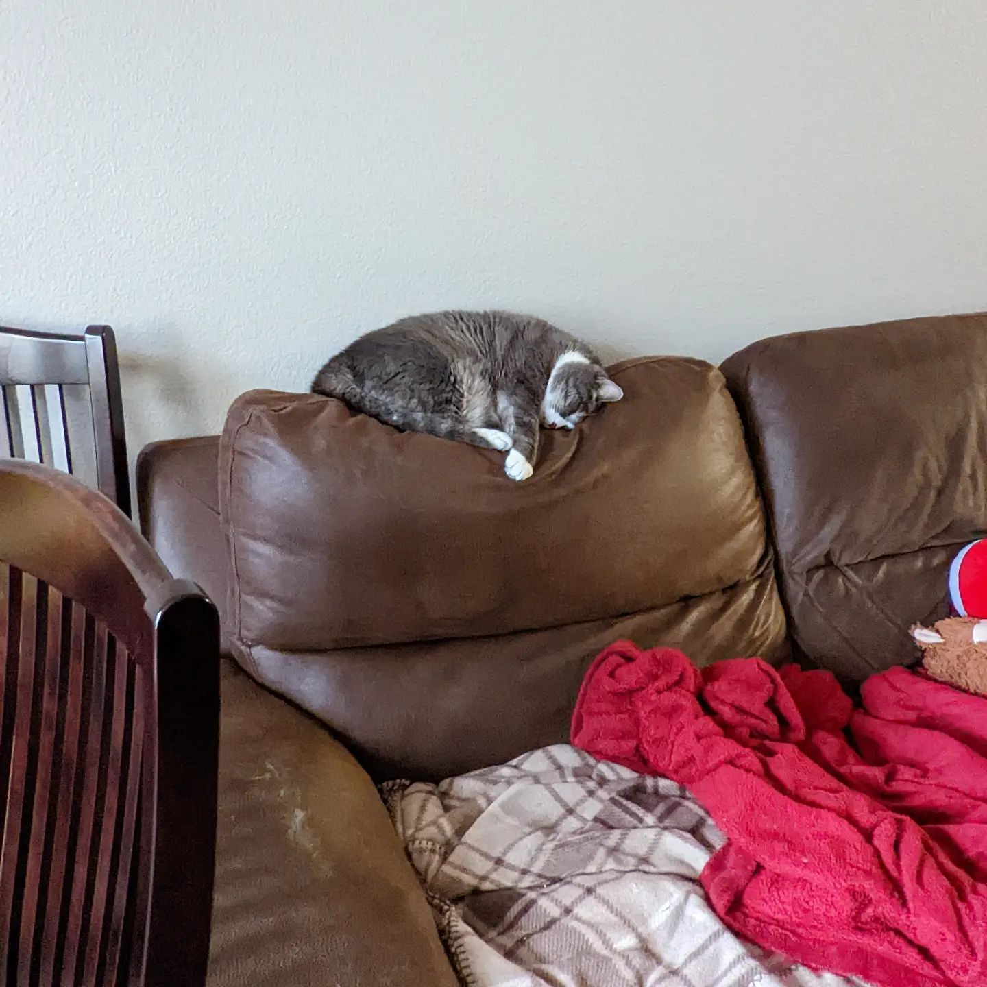 Cat condo as pillow.... Ziggy is not pleased that my hubby is sick and I am working. "Stupid everything"