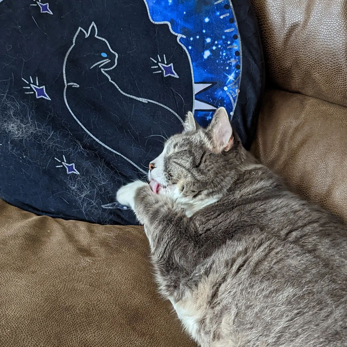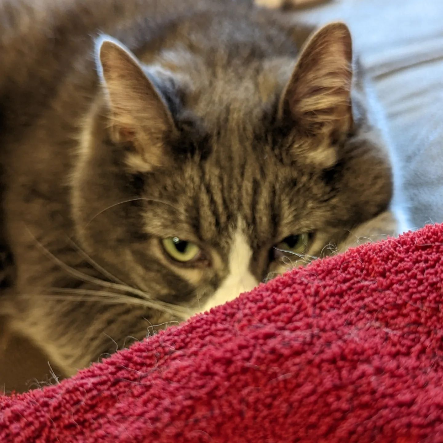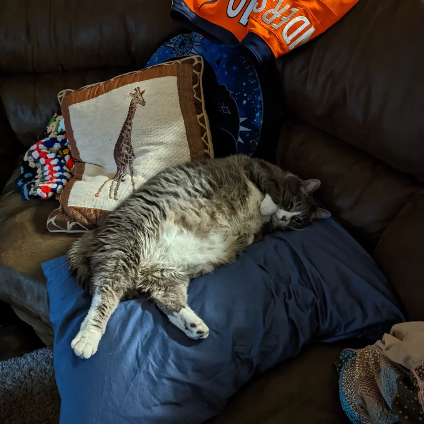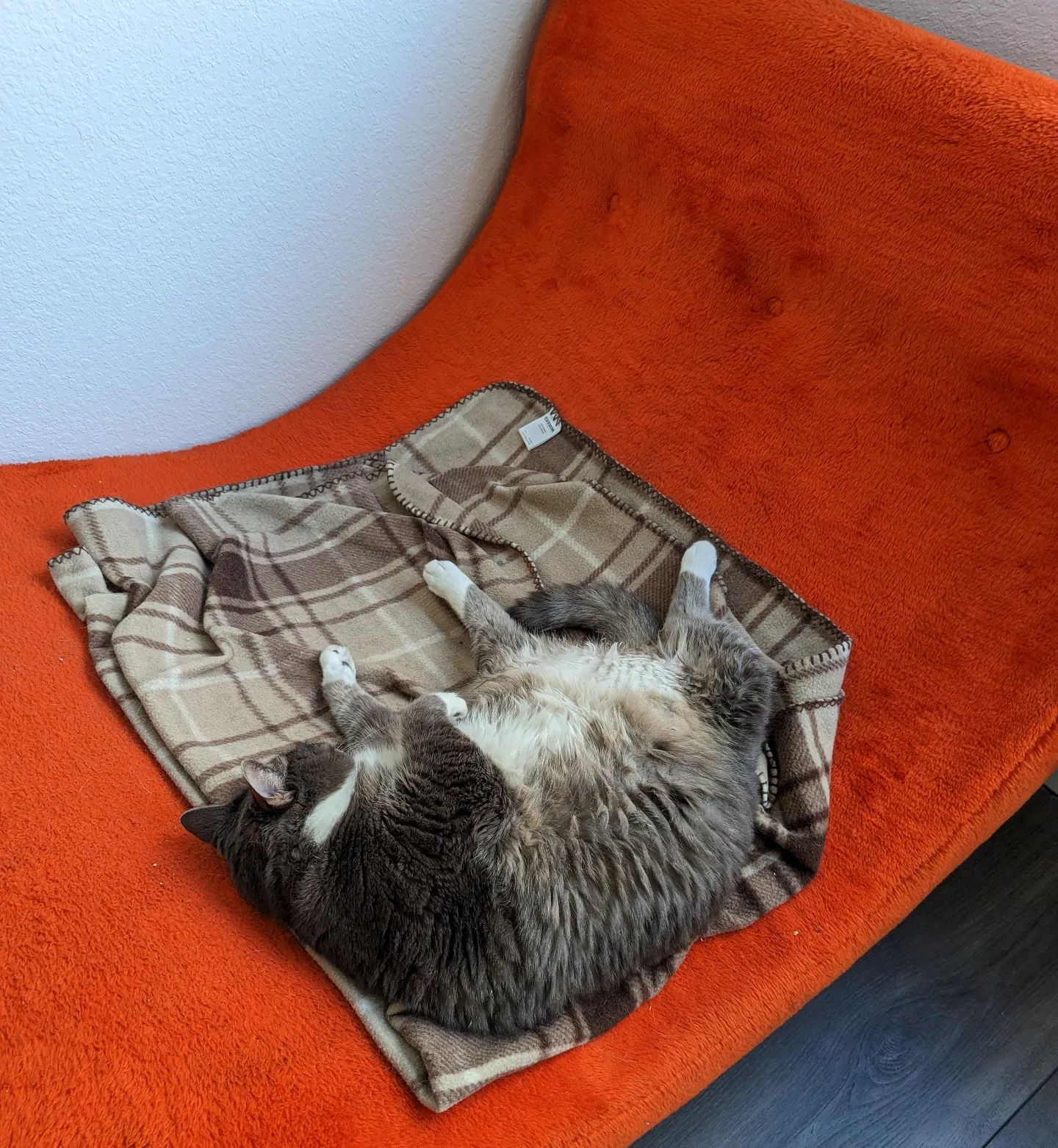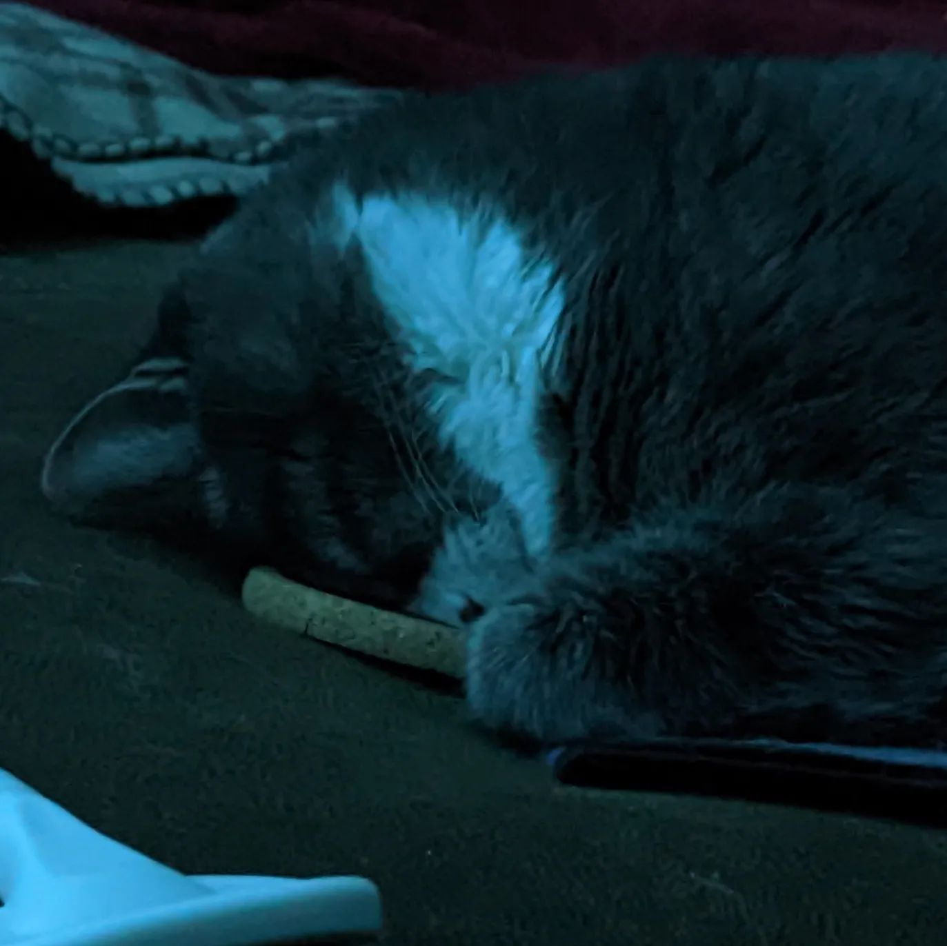 Cat condo as pillow.... Ziggy is not pleased that my hubby is sick and I am working. "Stupid everything"