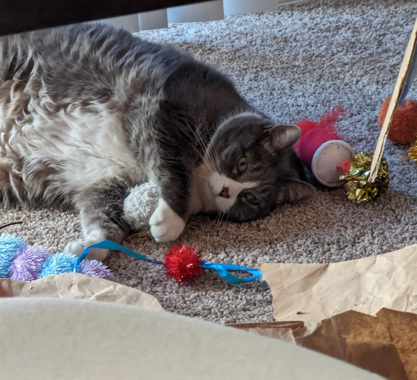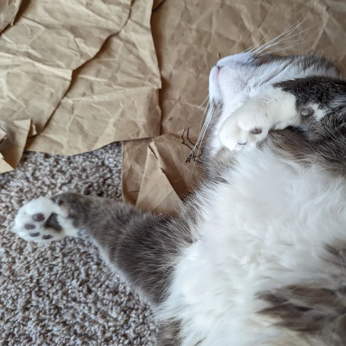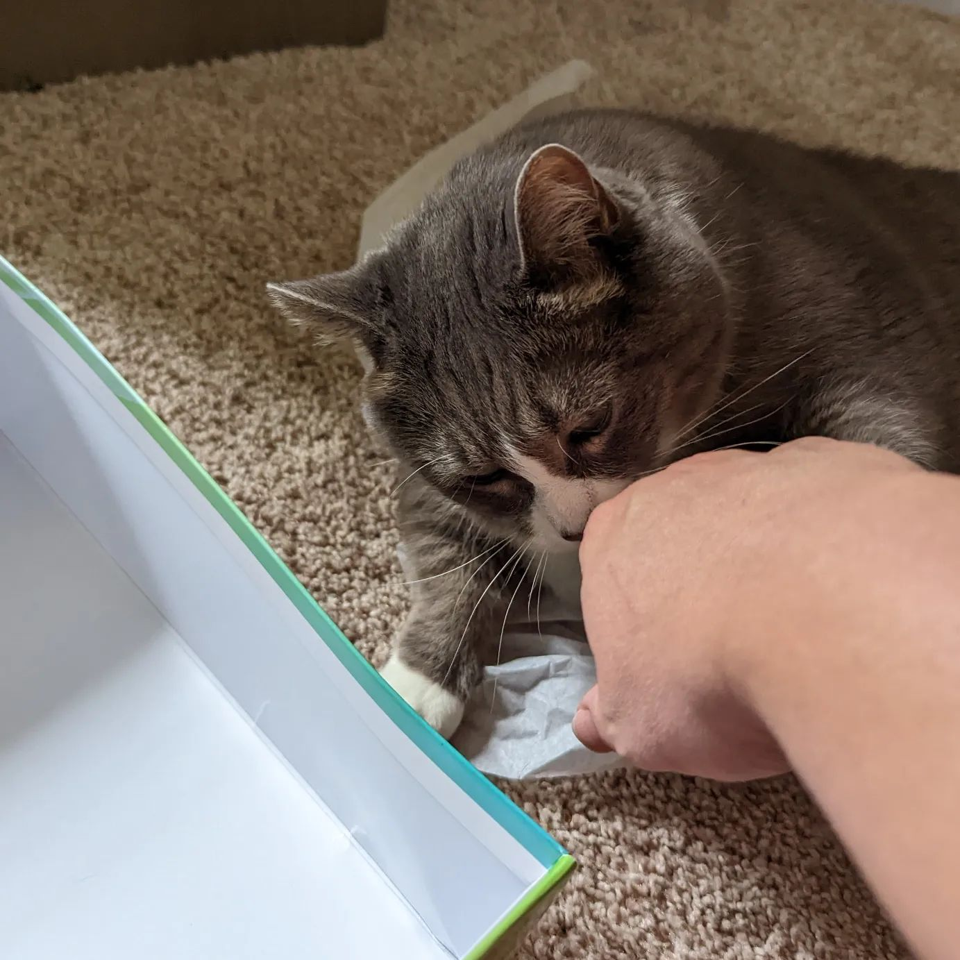 Packages being delivered means new crinkle paper! Crinkle paper that must be tamed! ?? Very serious business, as you can see
