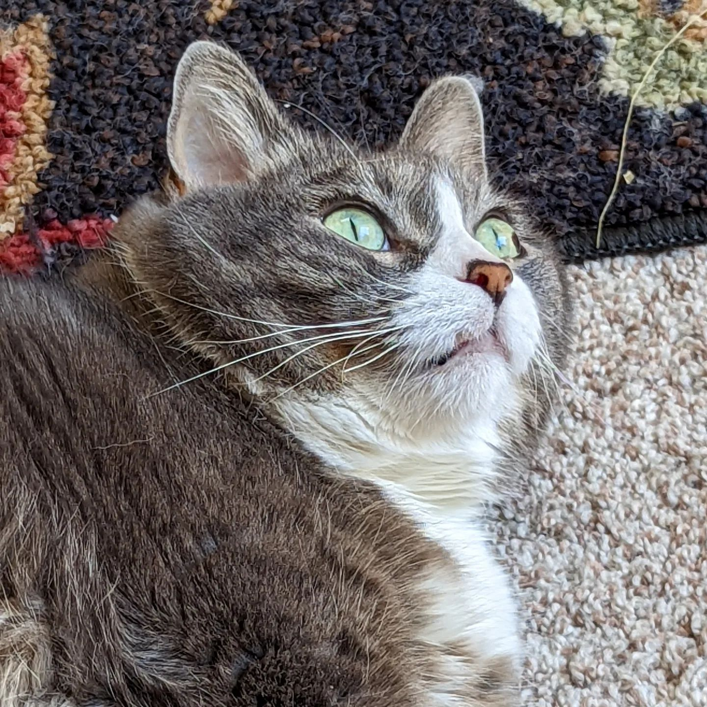 Share more? ....this is what Ziggy does when she has had a little bit from my dinner and wants more . ??