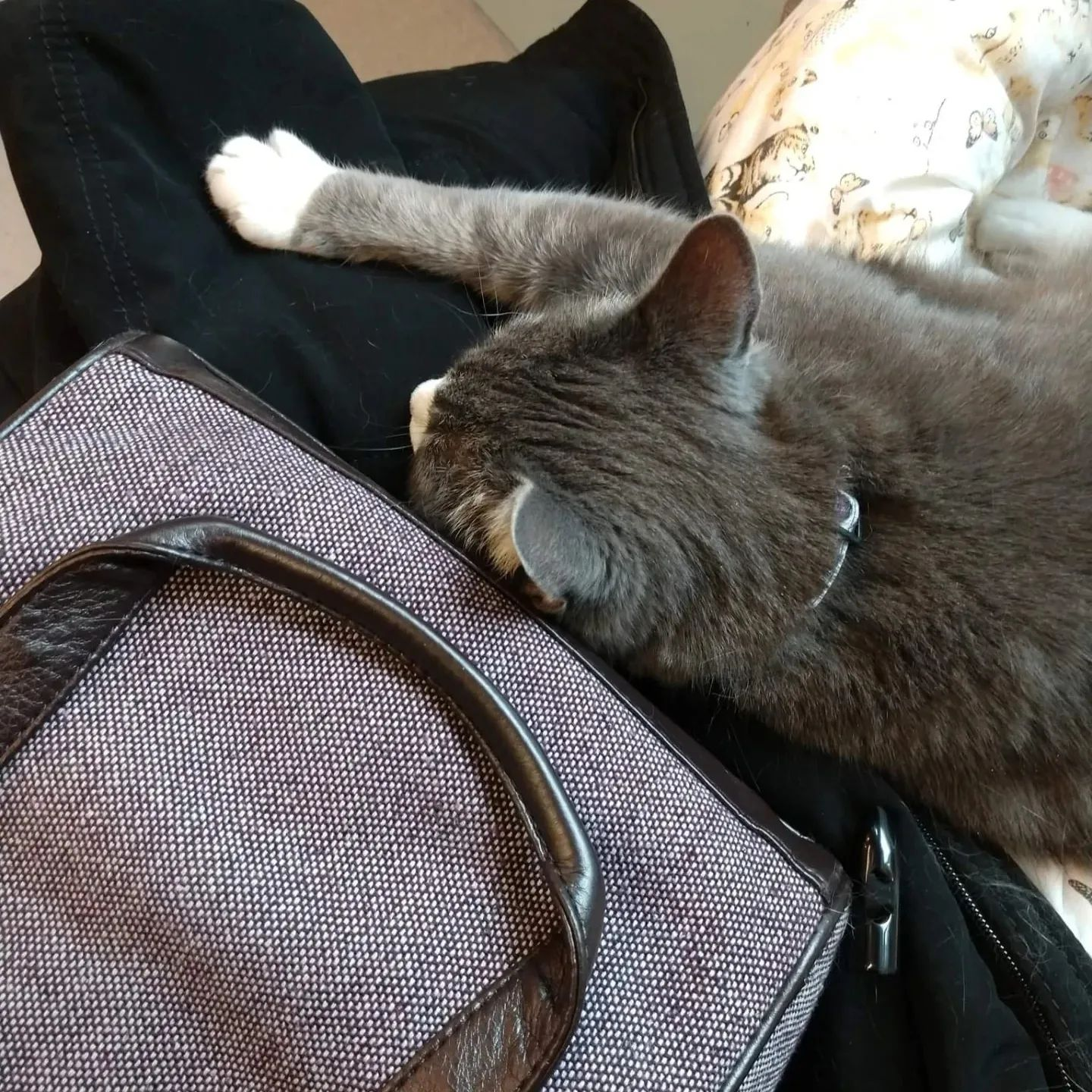 I touched the puff. I was reminded the puff is not mine. Ziggy is sleep-guarding her puff.