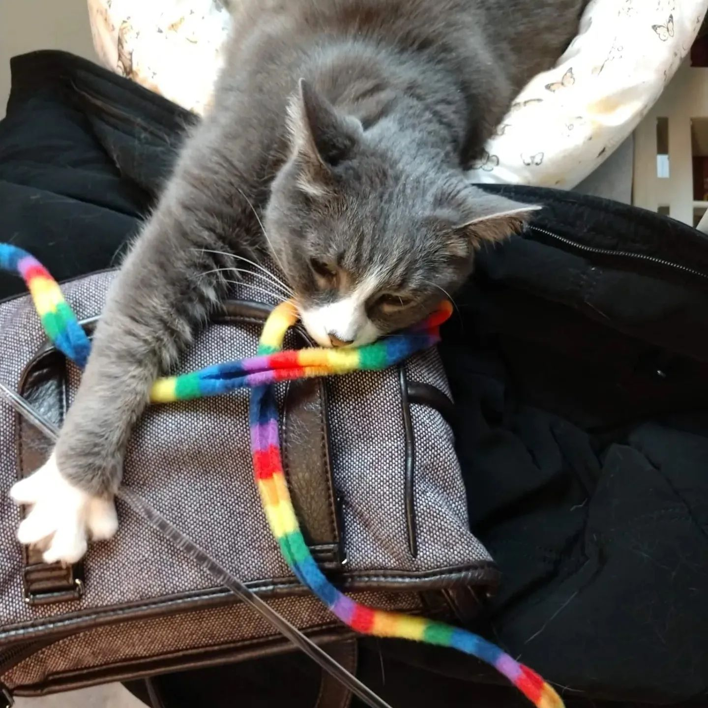 take her frustration out on....swipe to see... don't worry, she doesn't eat the bags, just shreds them