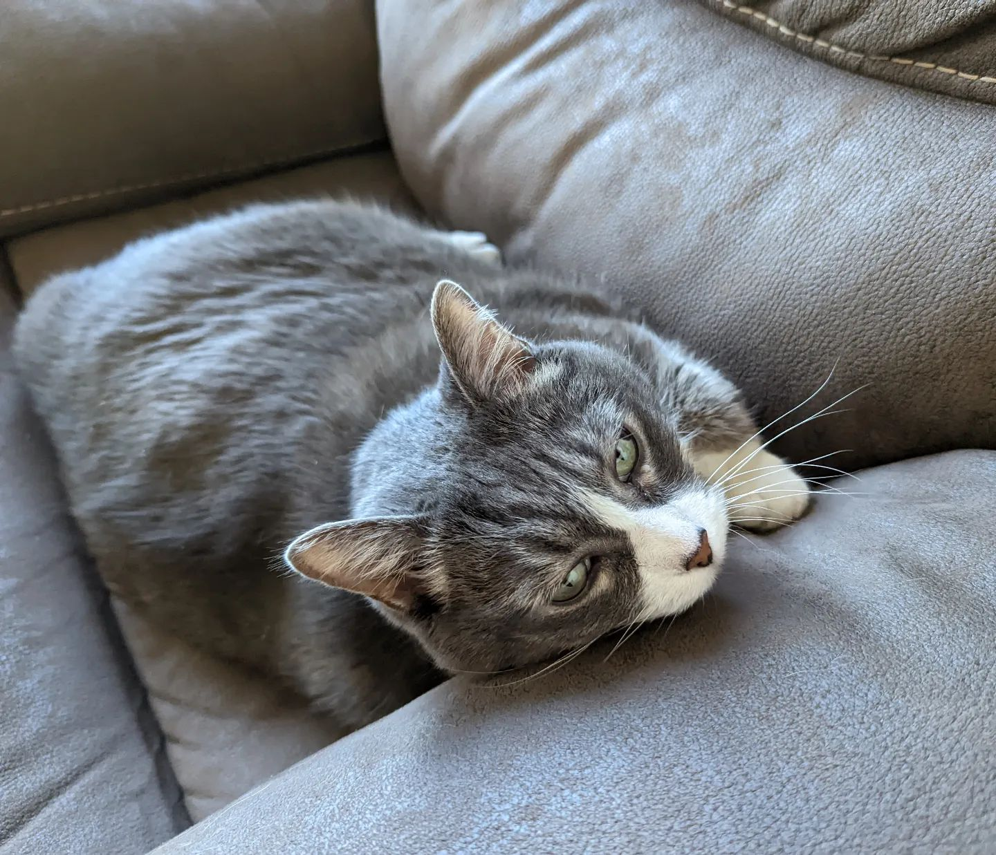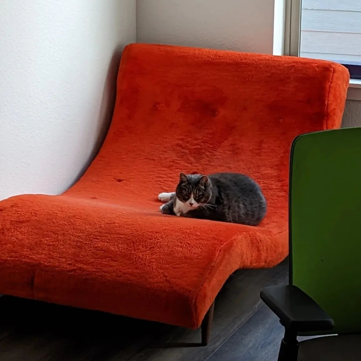 Trying new places... Ziggy found the comfy fluffy brown chair in the loft