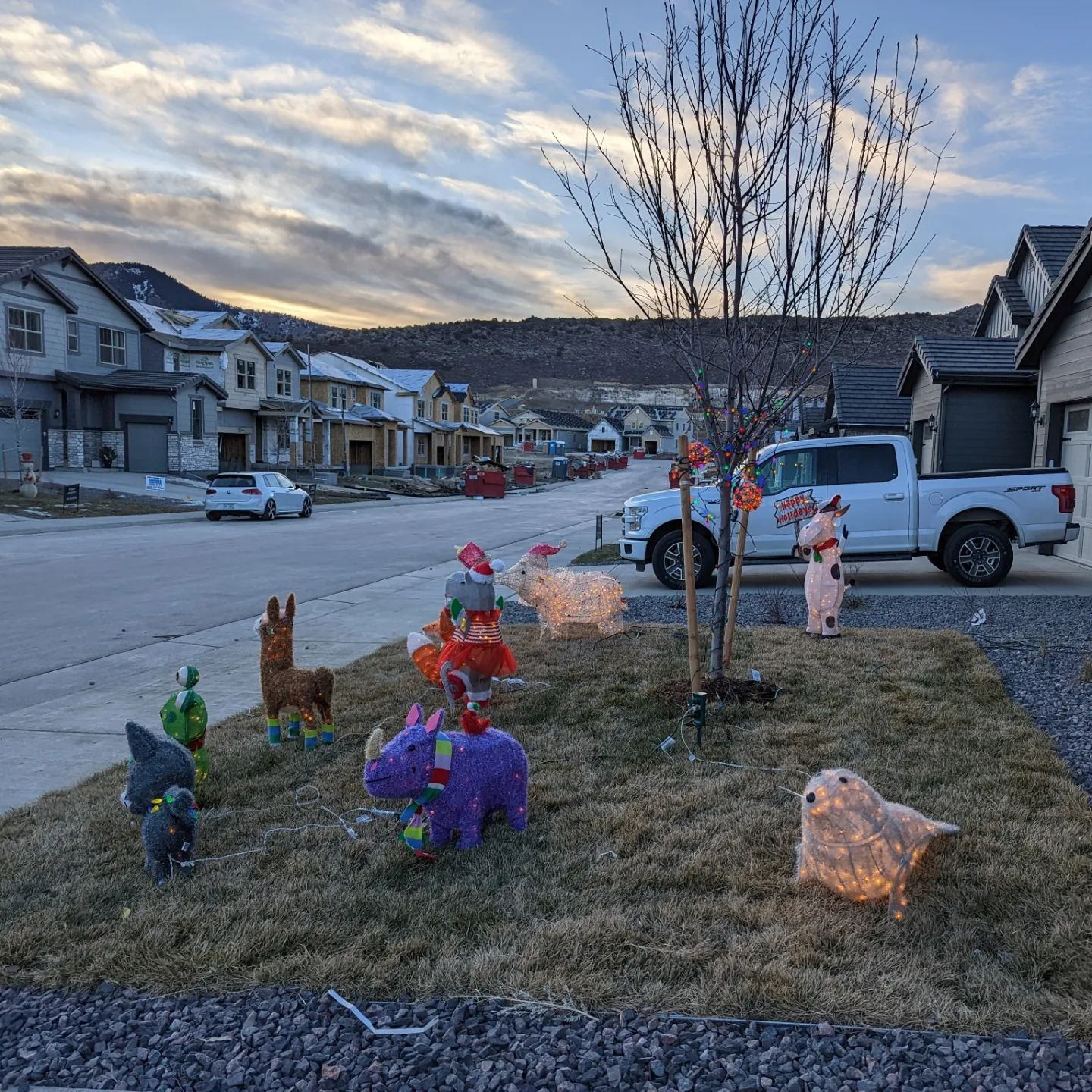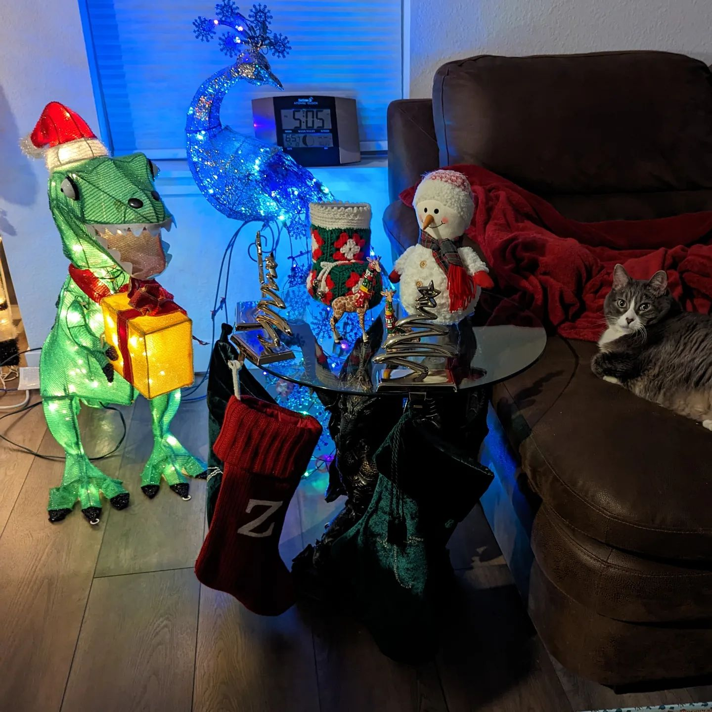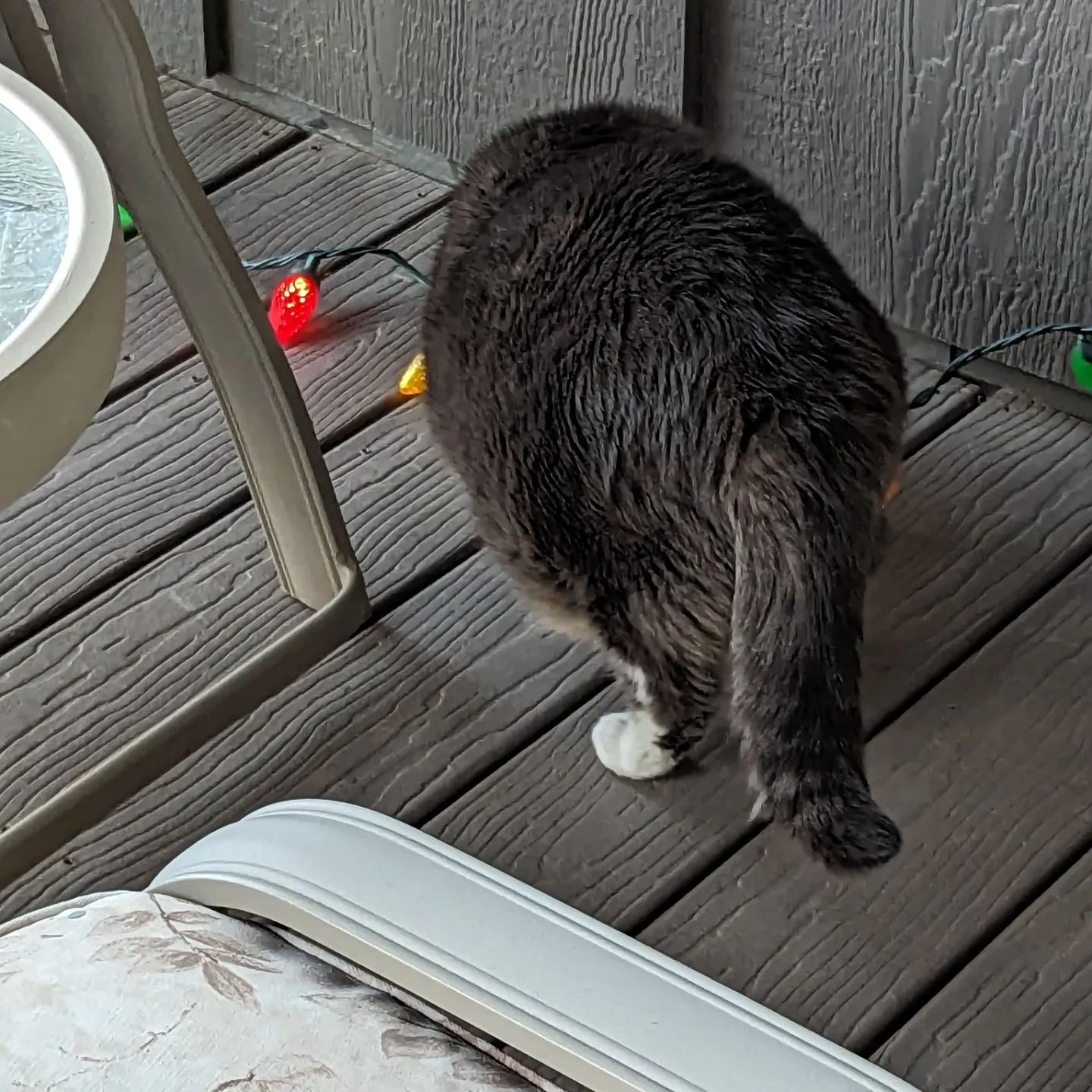 I haven't been sure what to do with the back deck decorating-wise due to the high winds this month, but I did zip tie 2 strings of lights to the railing. They passed inspection.
