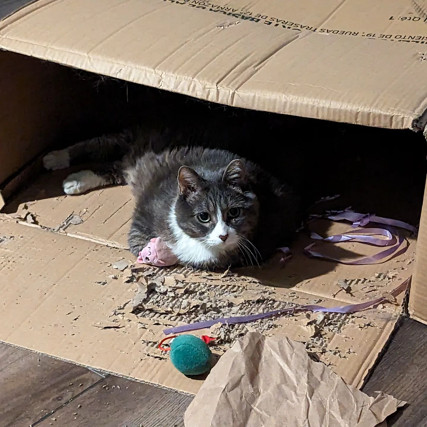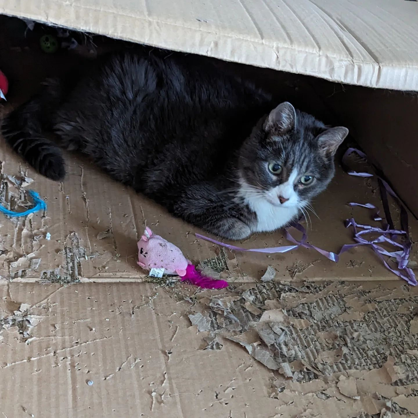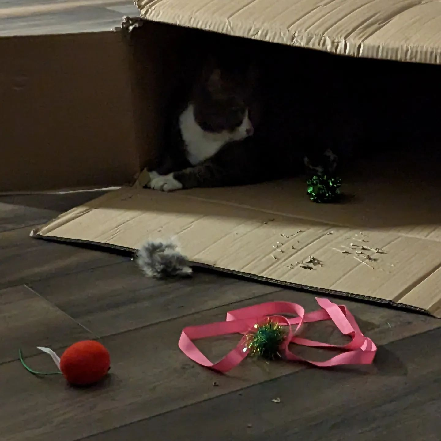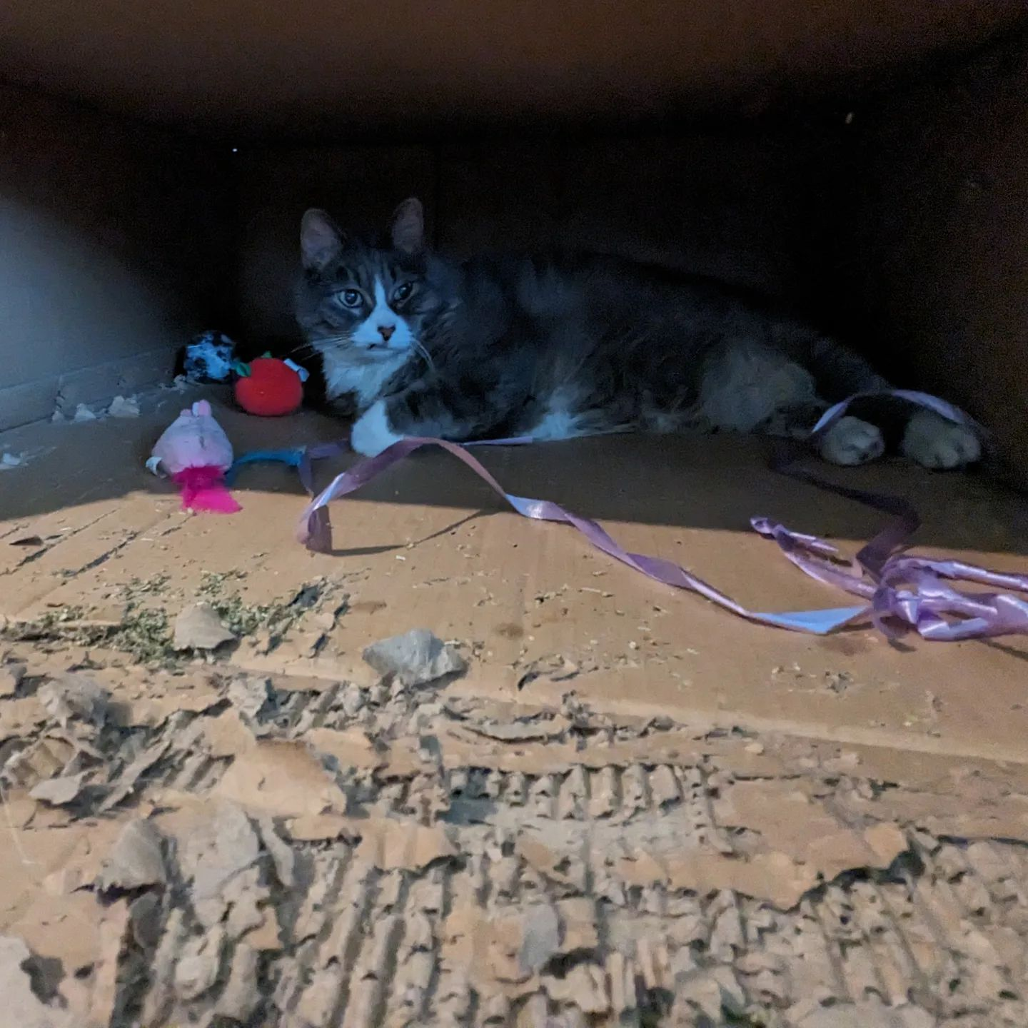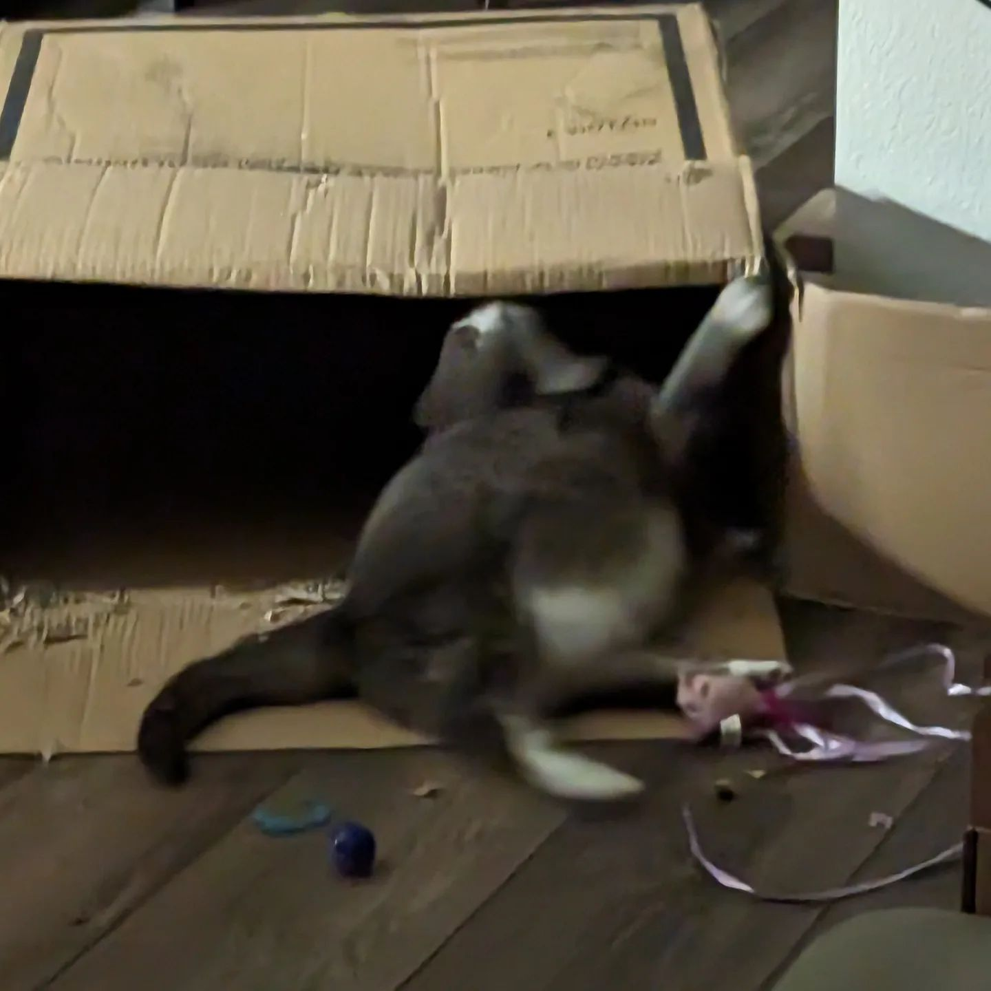 Beware the late night box zoomies! The party here is getting a little out of hand... without catnip!
