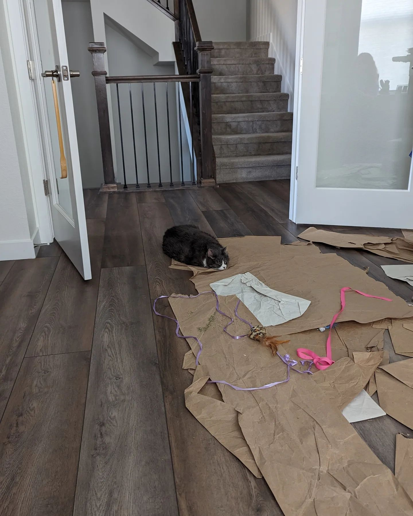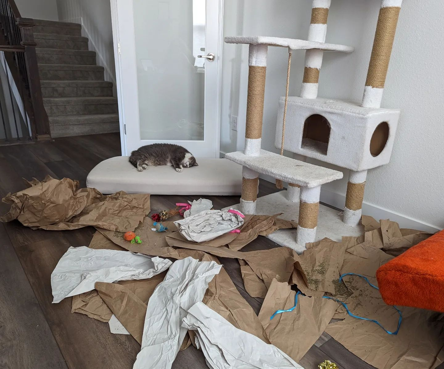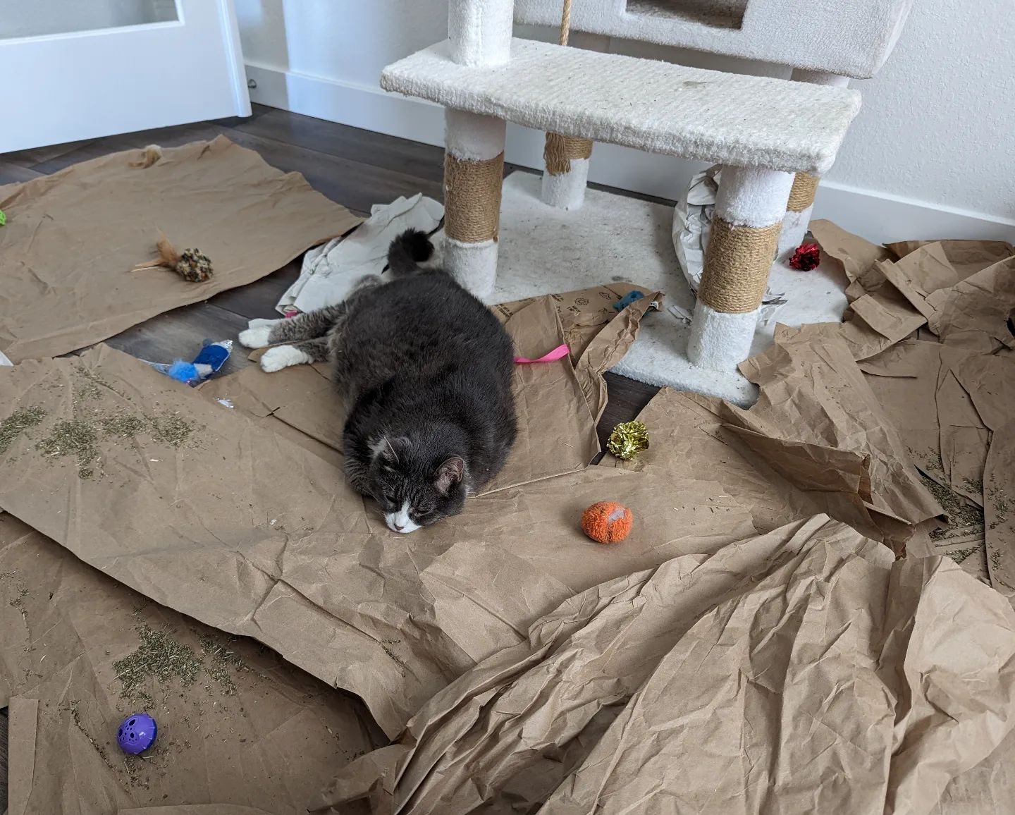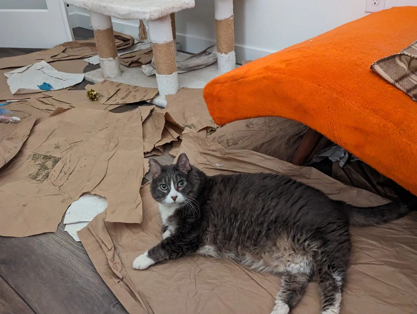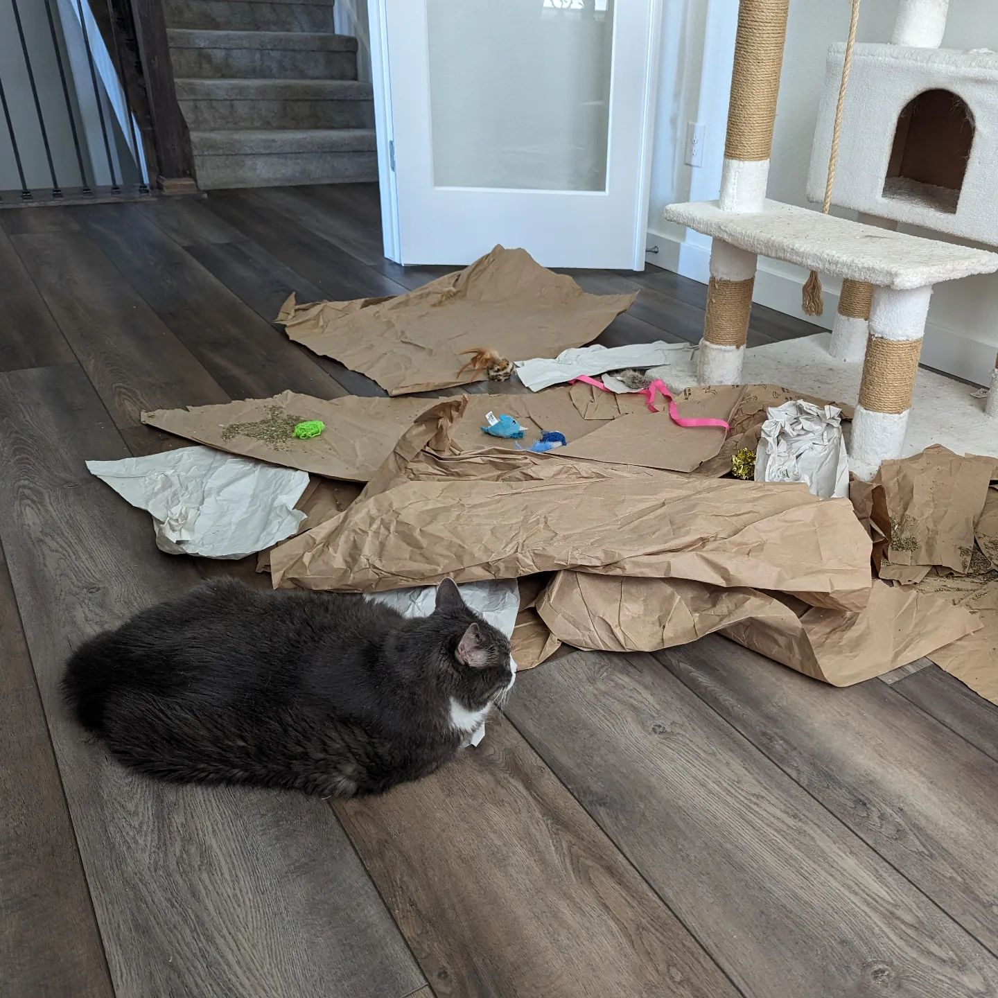 Beware the late night box zoomies! The party here is getting a little out of hand... without catnip!