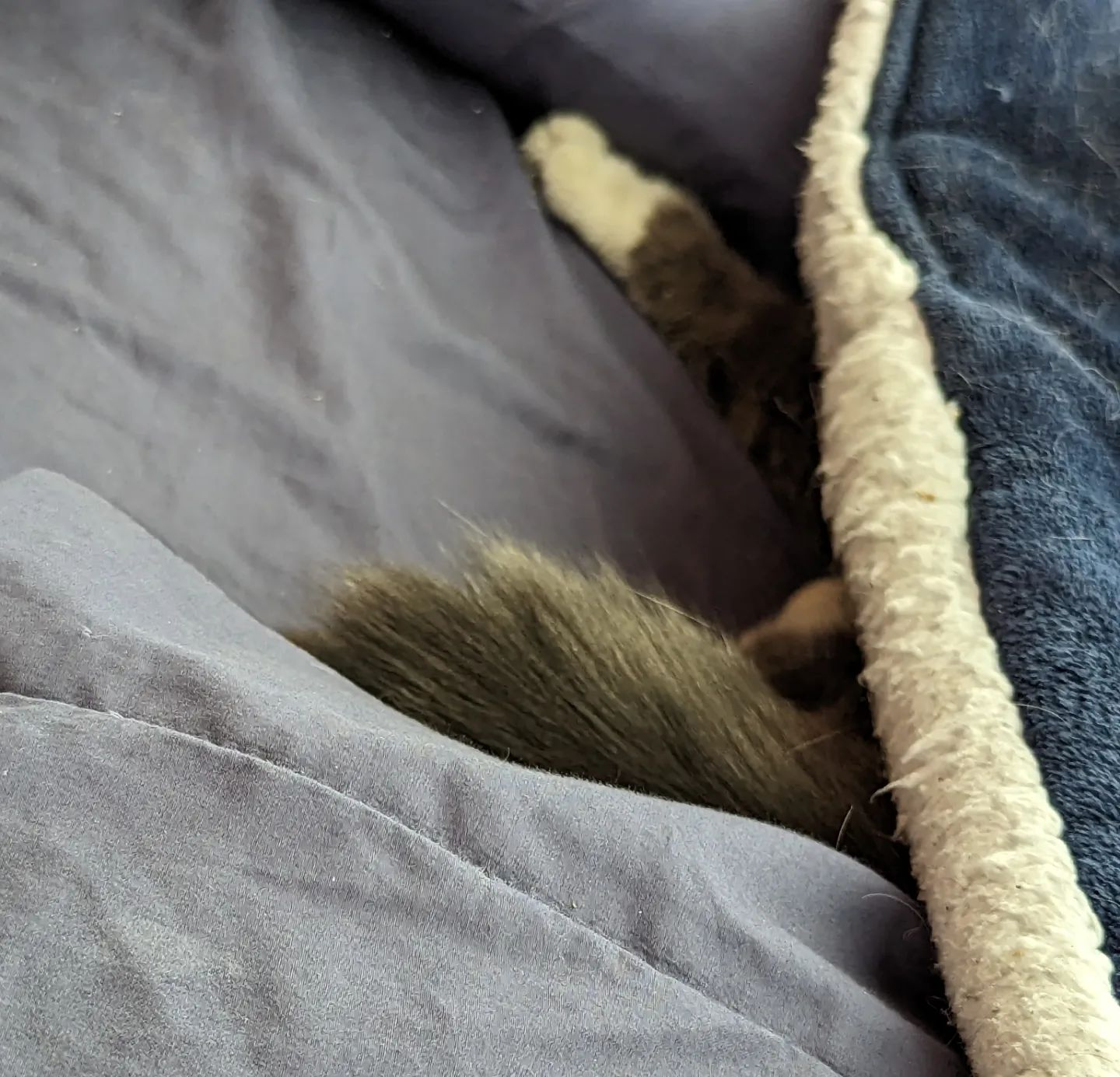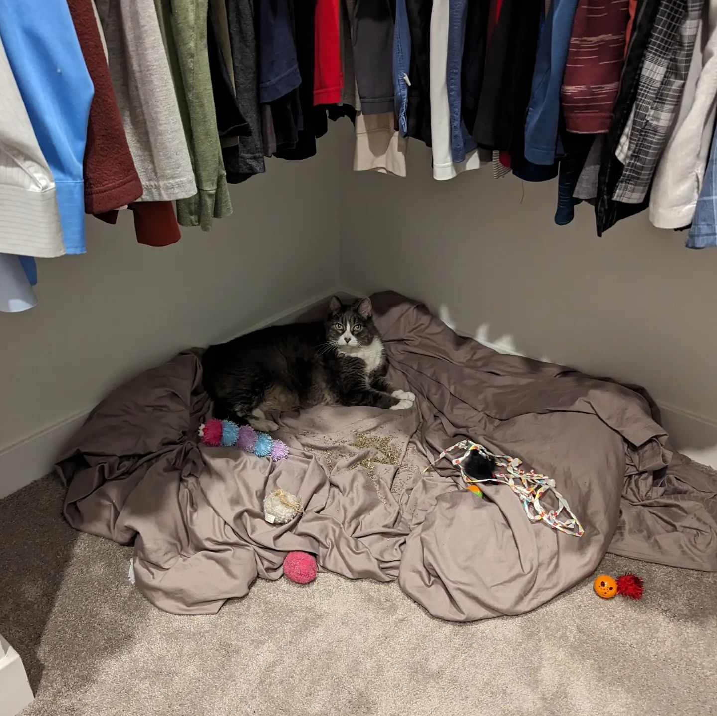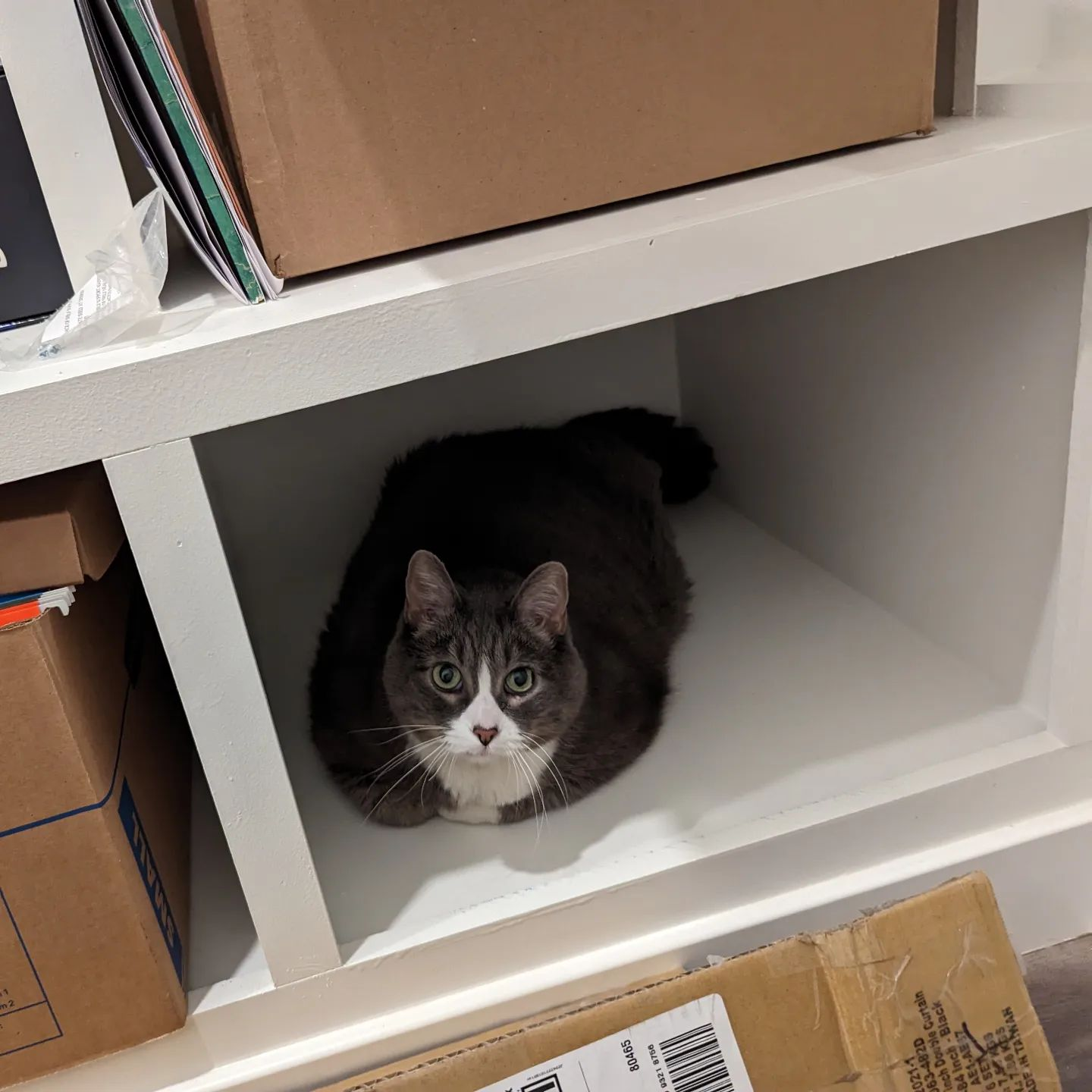 Ziggy is spending the morning in a closet cubby. She hasn't been feeling well, vet appointment made for Friday. We are hoping it is just a cold, since she started sneezing last night.