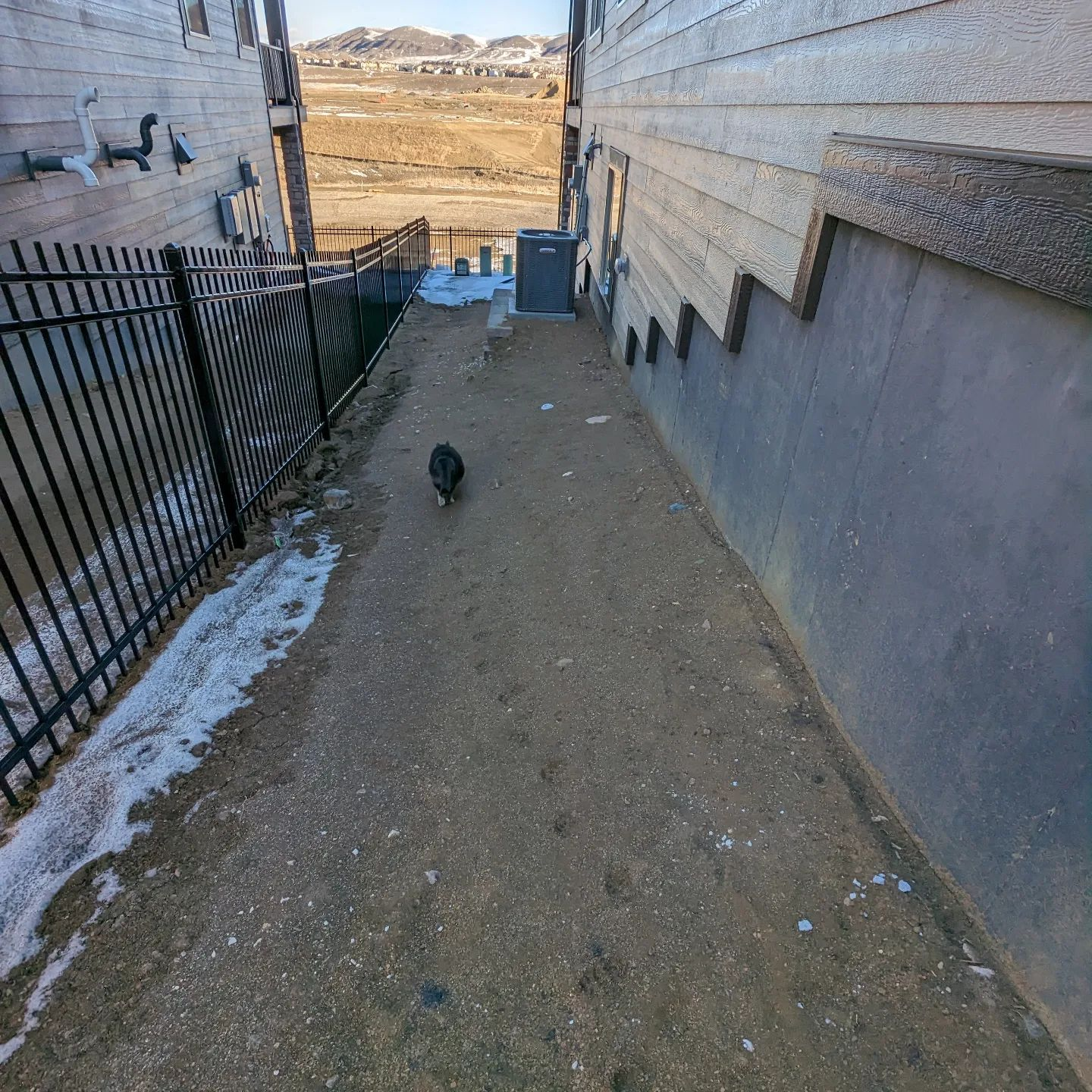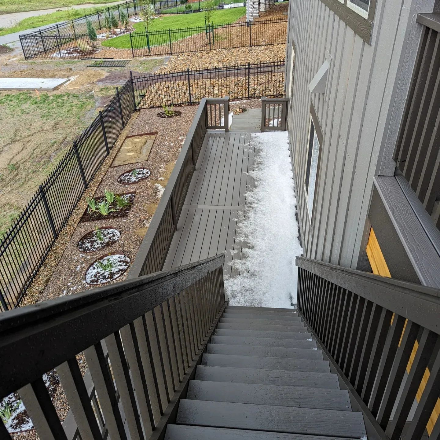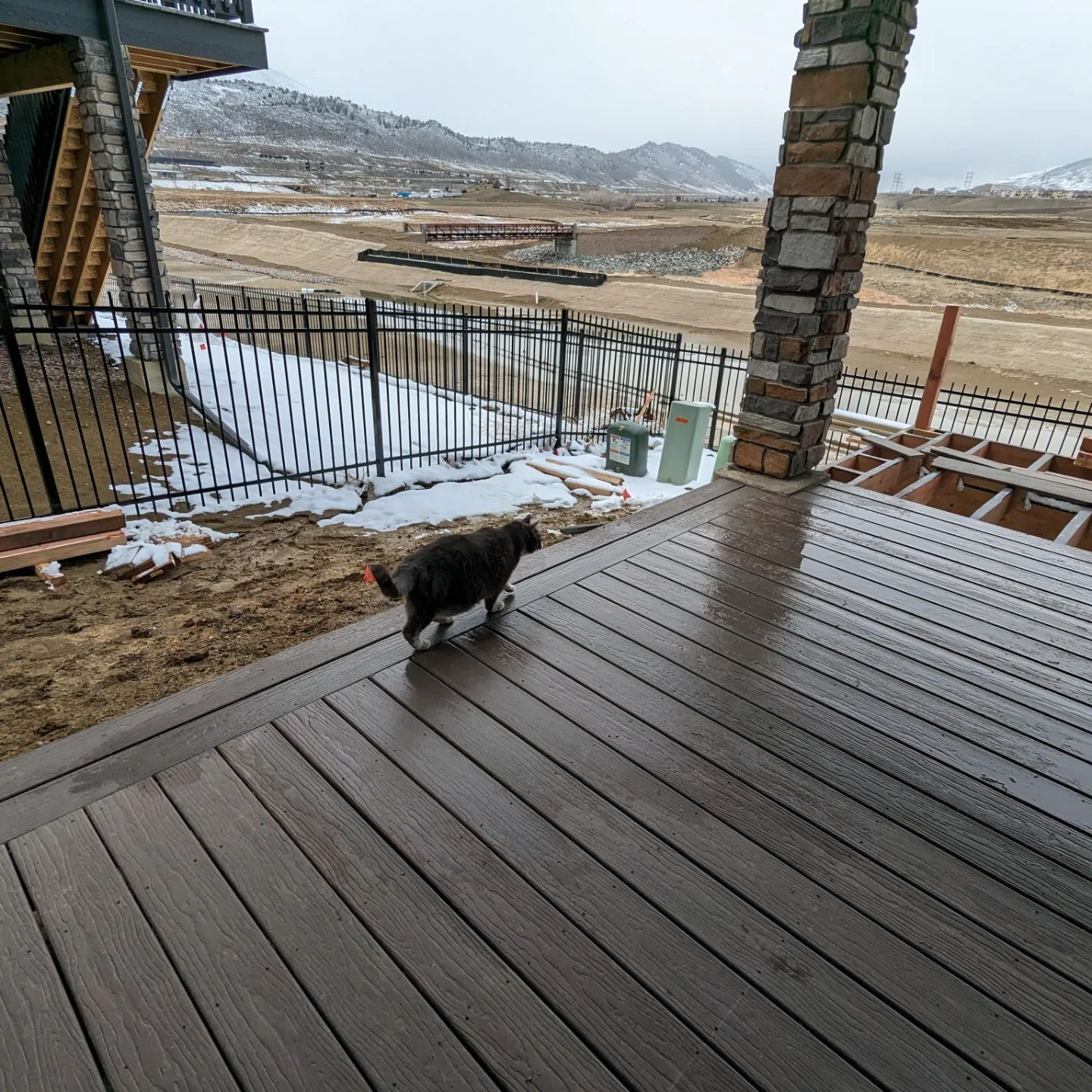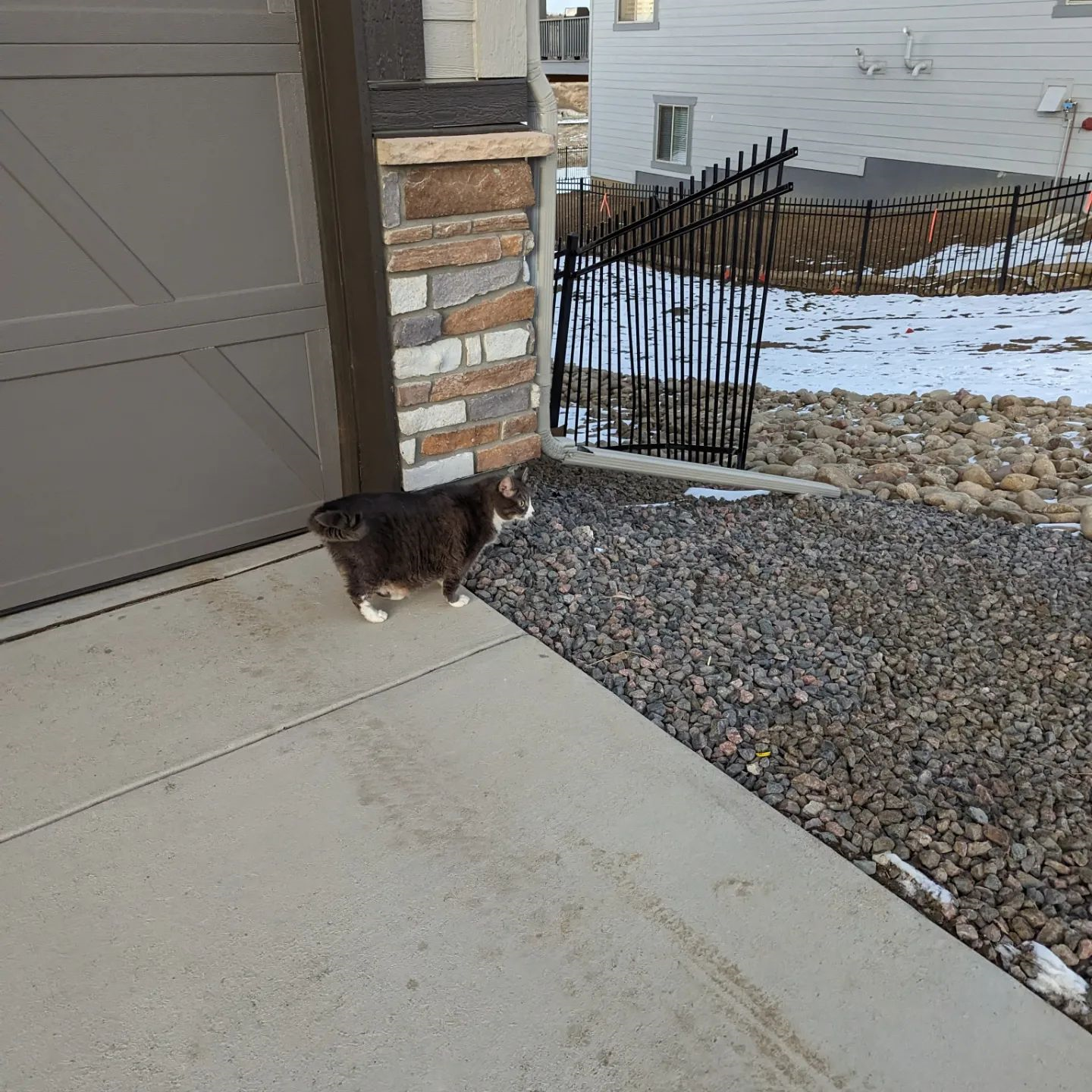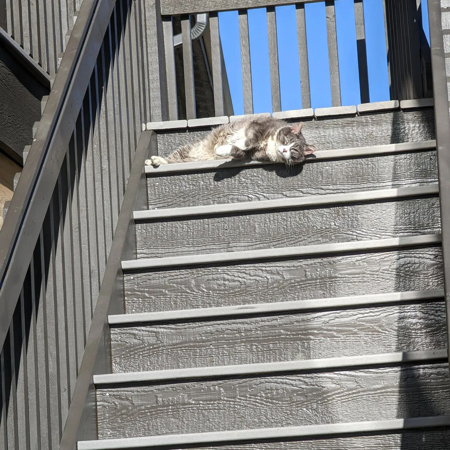 Outdoor adventure, part 2.... Checking on the infinity stair project. Our walkout basement door and our main floor patio door are connected by stairs. Ziggy is determined to go out one door and in through the other ... Well, not if the stairs are snowy.