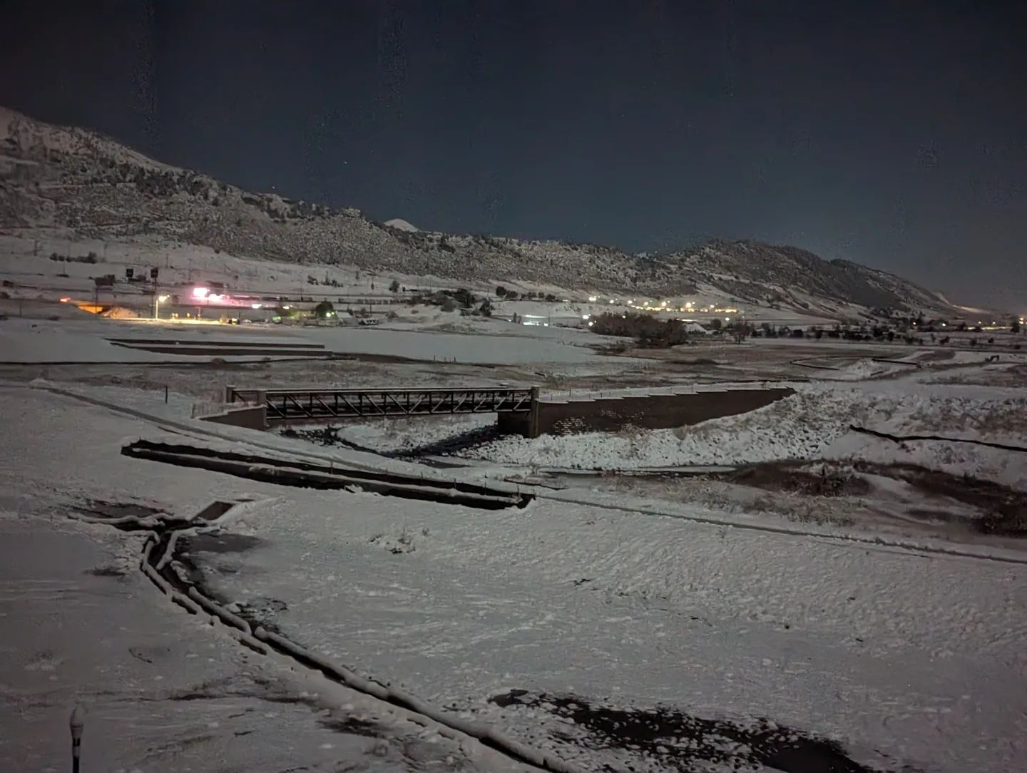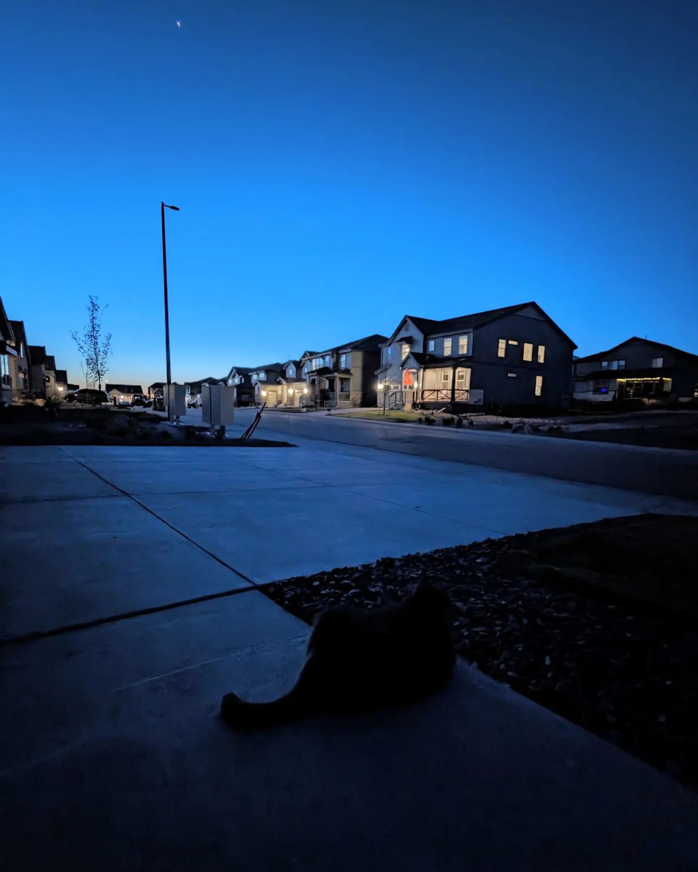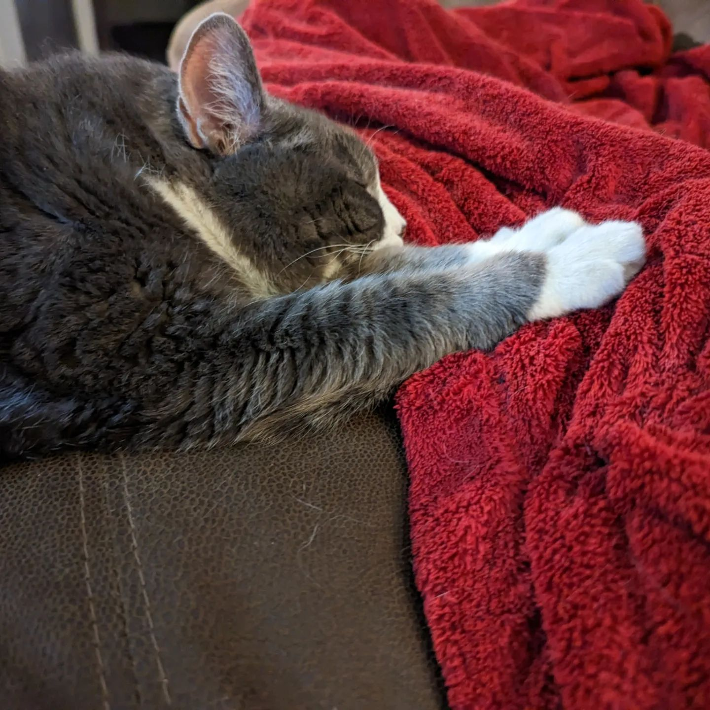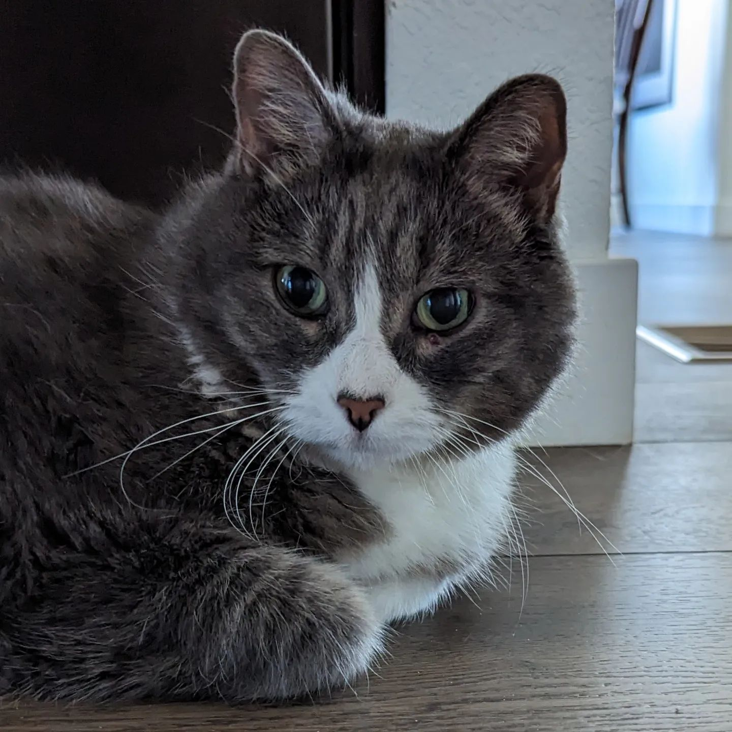 Happy Won't Look Whisker Wednesday from a proper cat loaf! Swipe for snowy sunrise over the neighborhood.