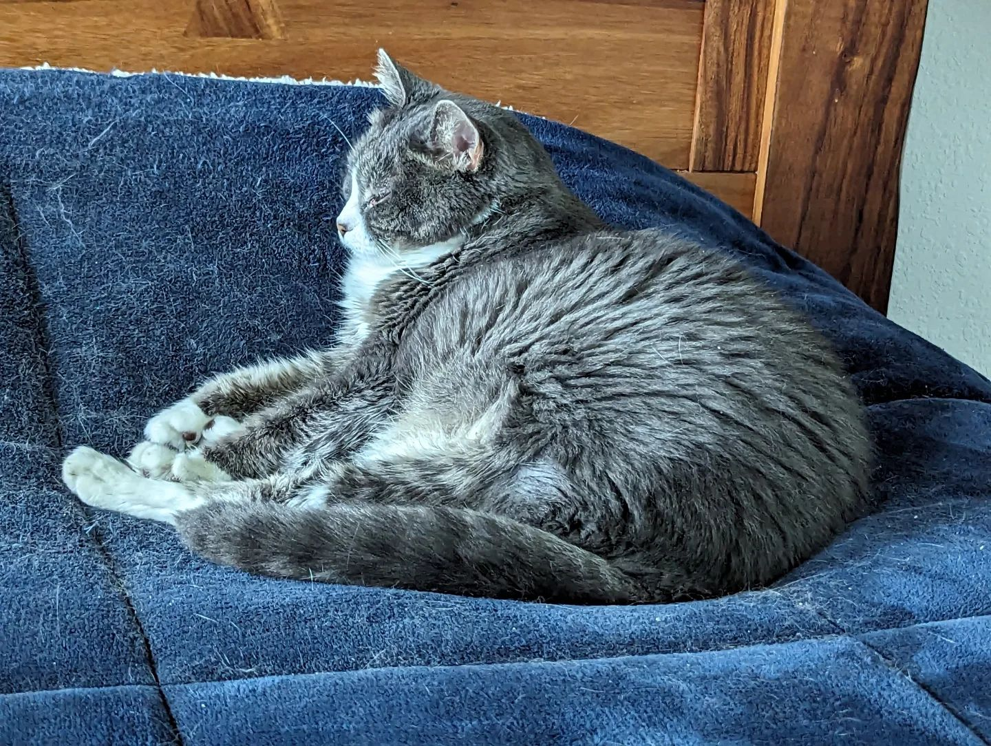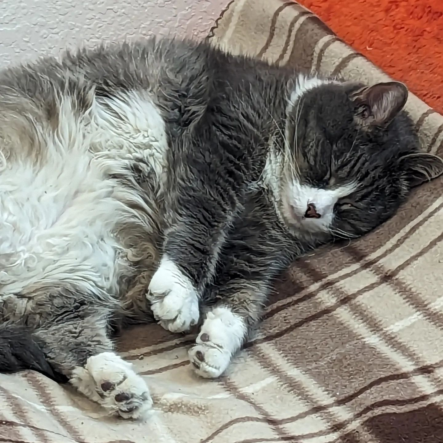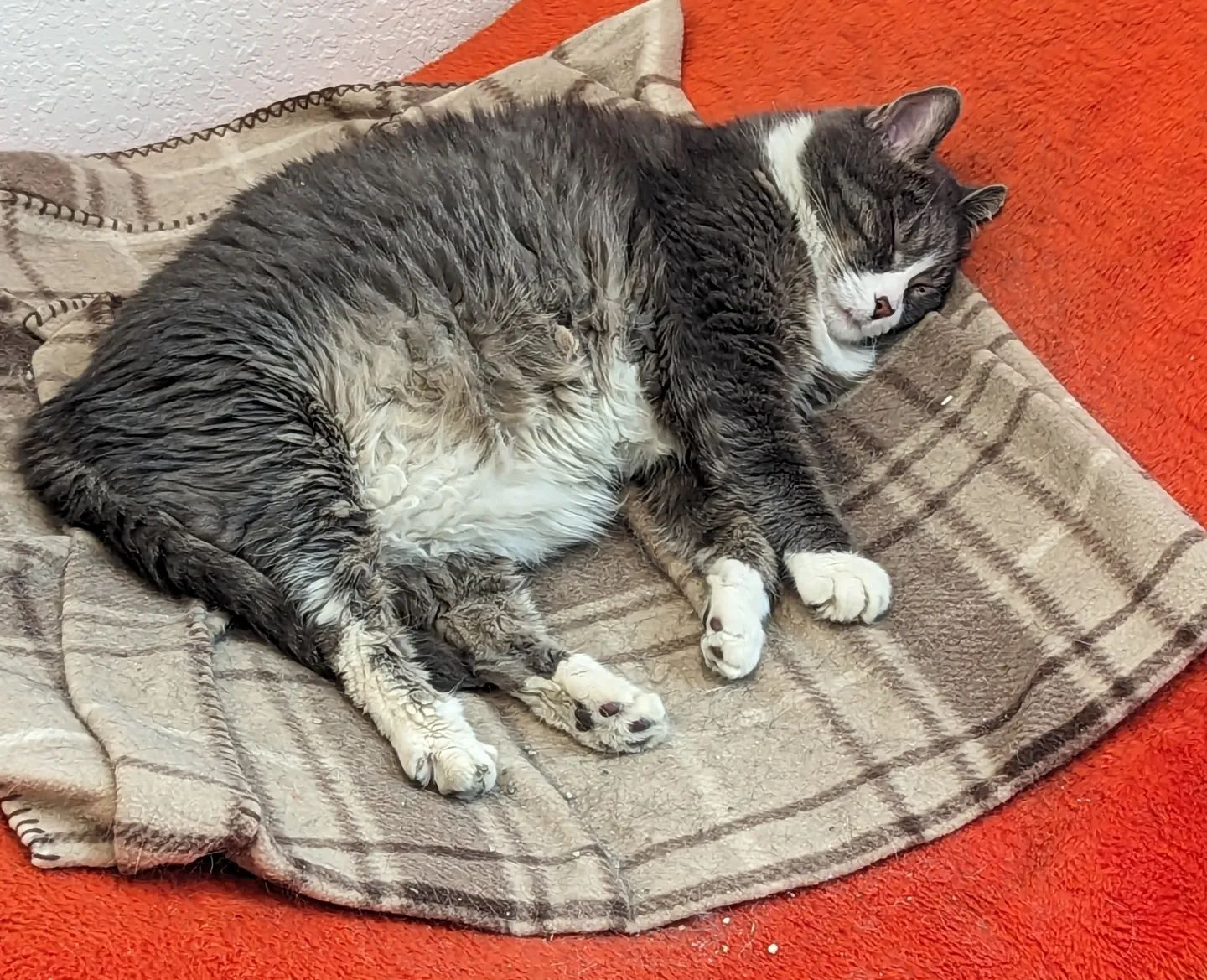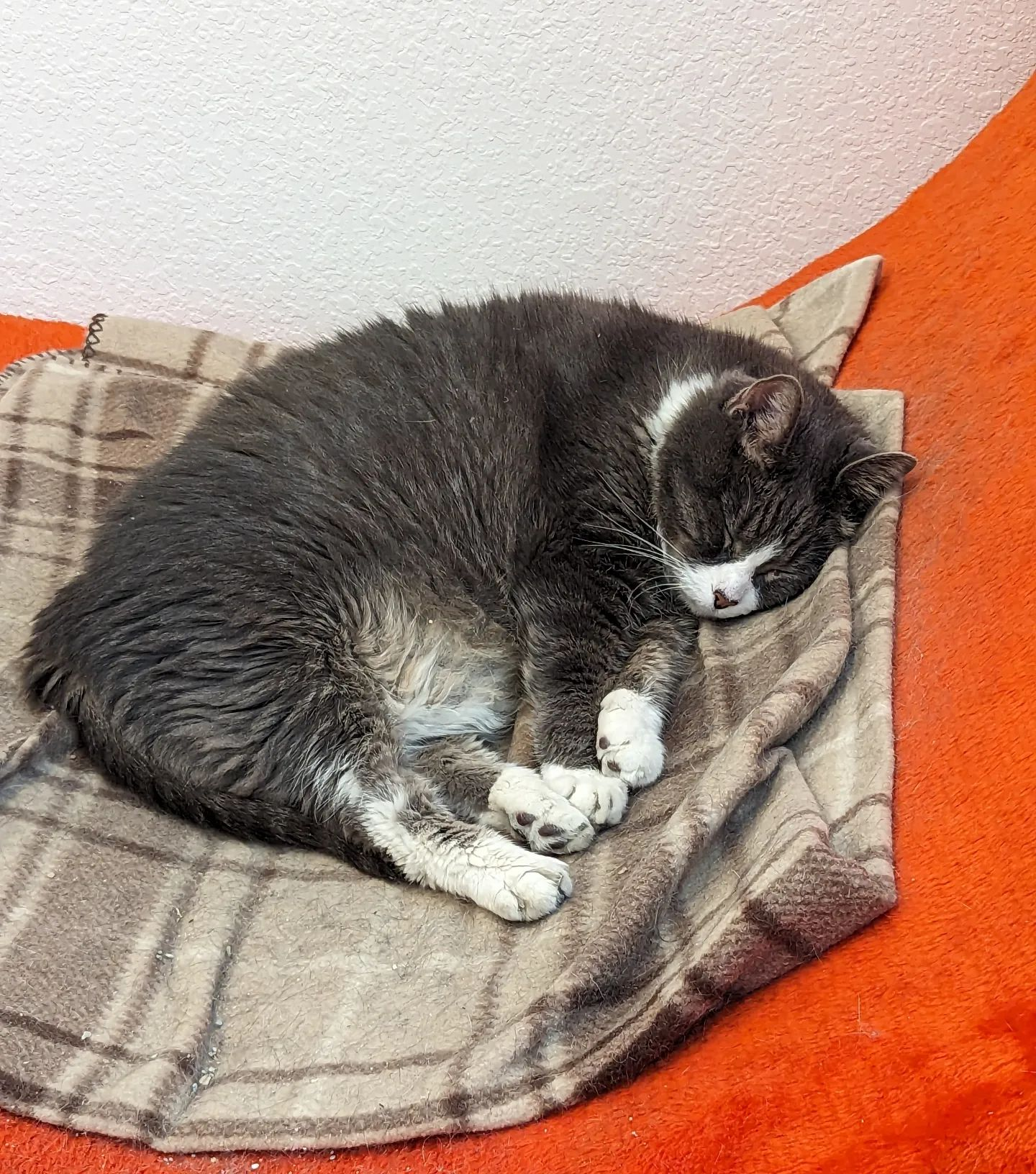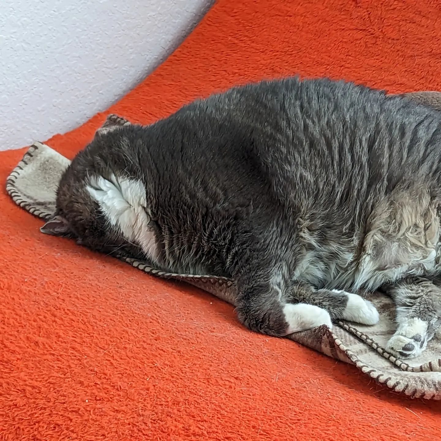 The cat loaf says she is done with this place. Urine and blood work looks good for a cat her age except blood sugar and dehydration. Blood sugar is in the same range as it has been for the last year and a half.
