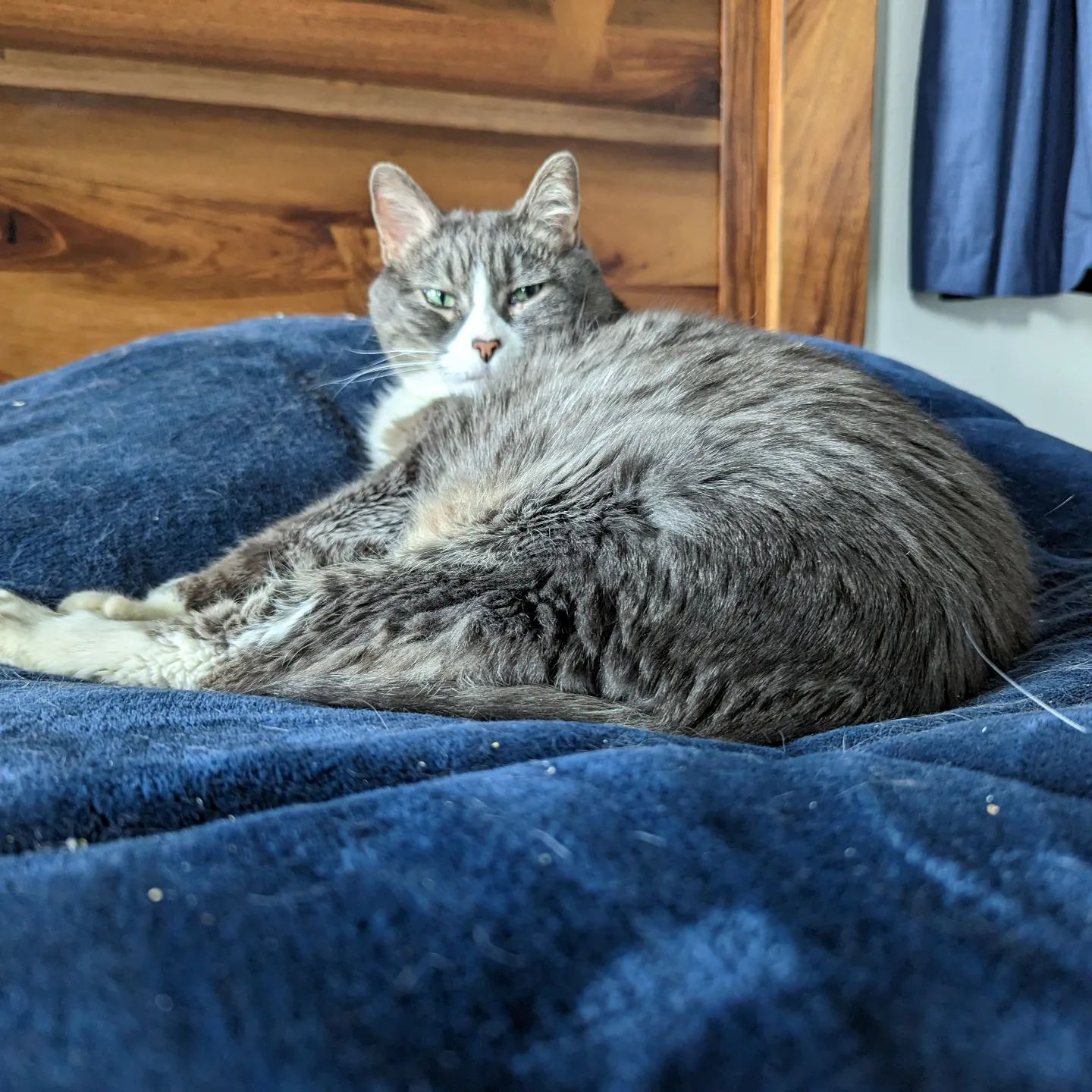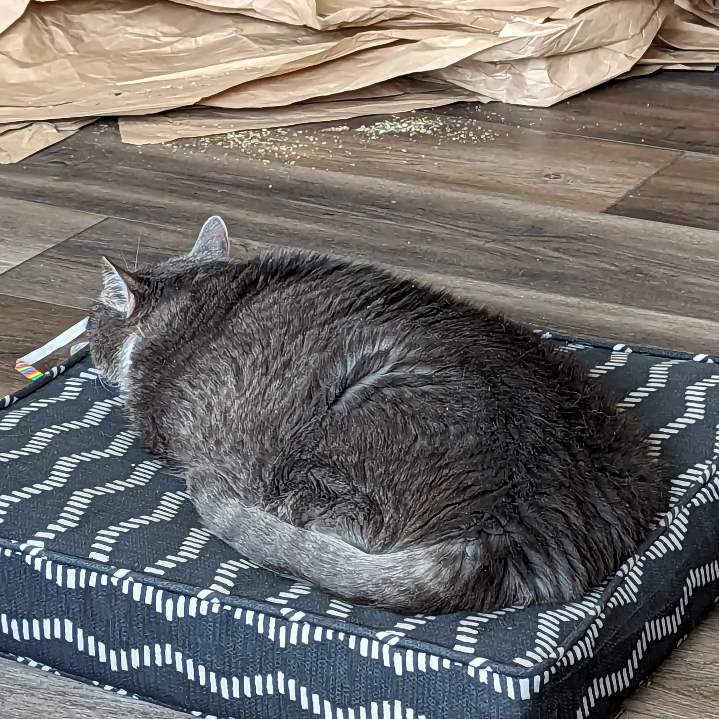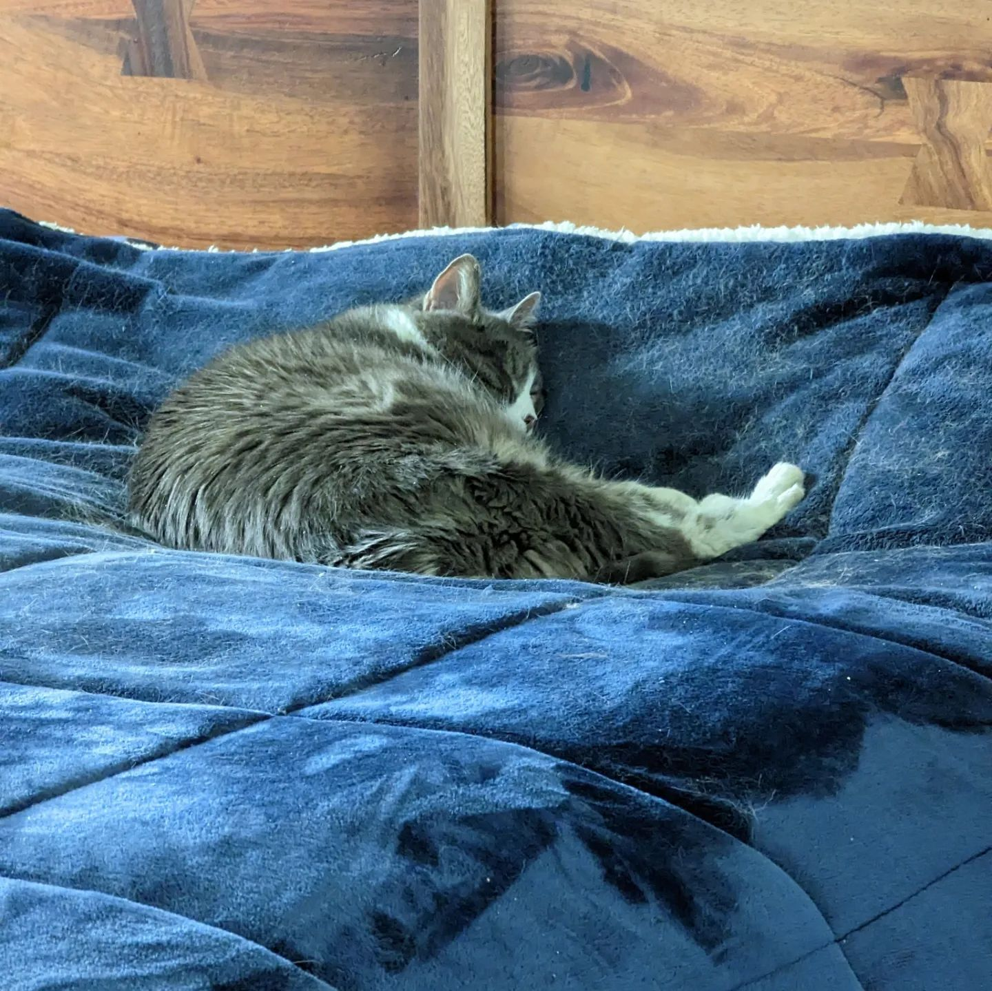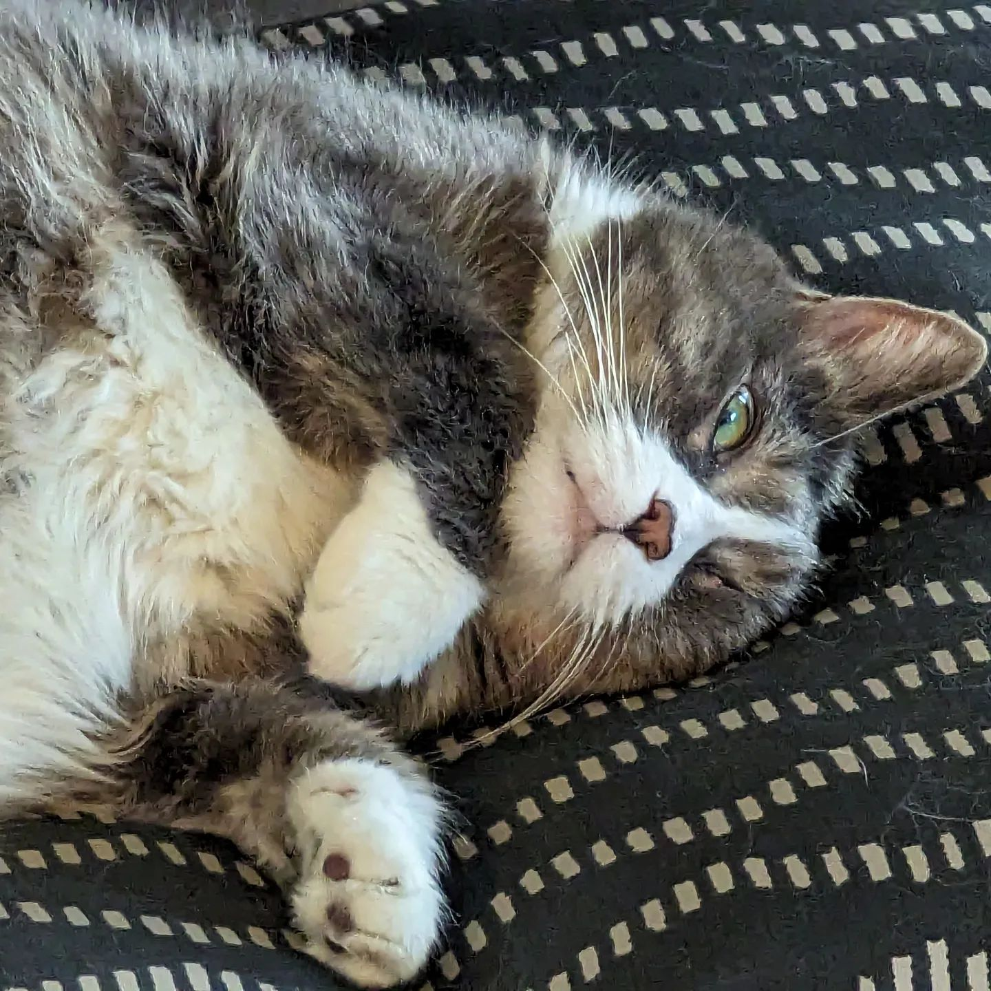 The cat loaf says she is done with this place. Urine and blood work looks good for a cat her age except blood sugar and dehydration. Blood sugar is in the same range as it has been for the last year and a half.