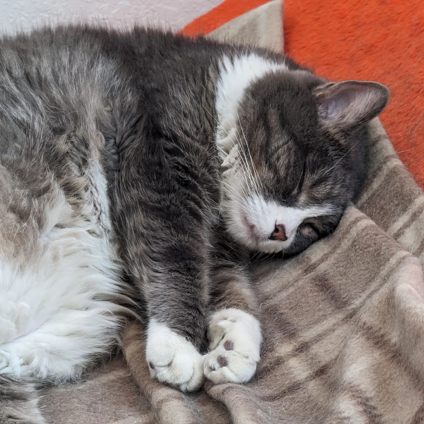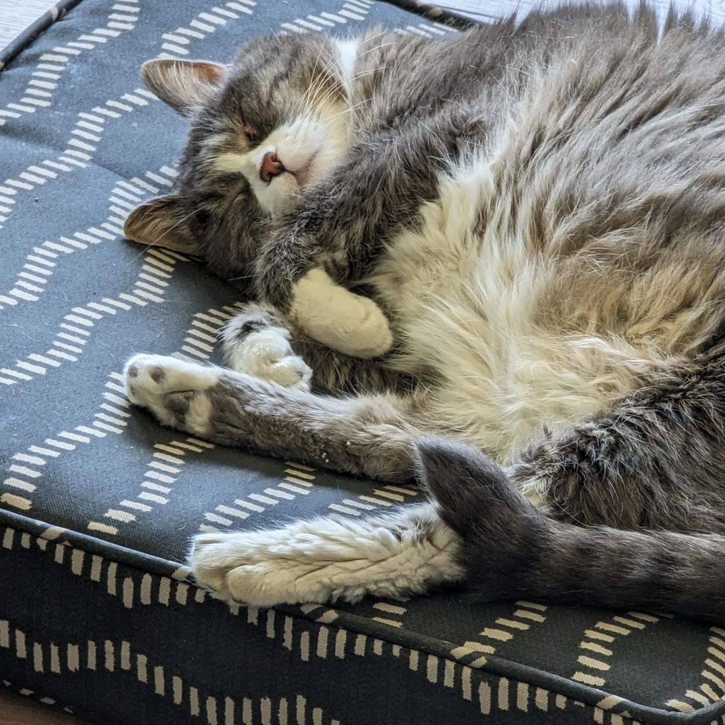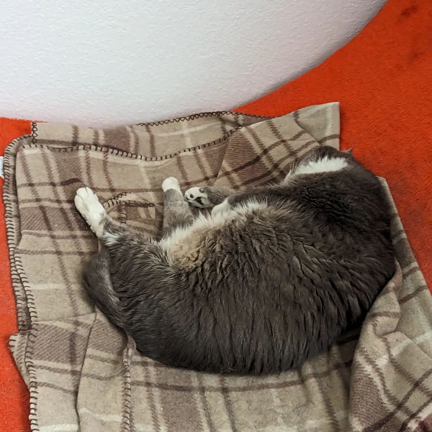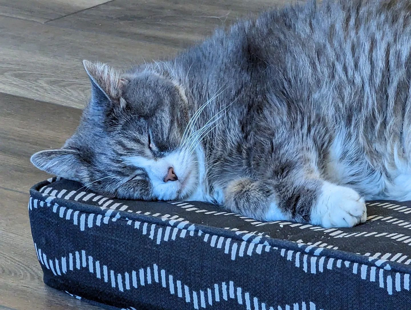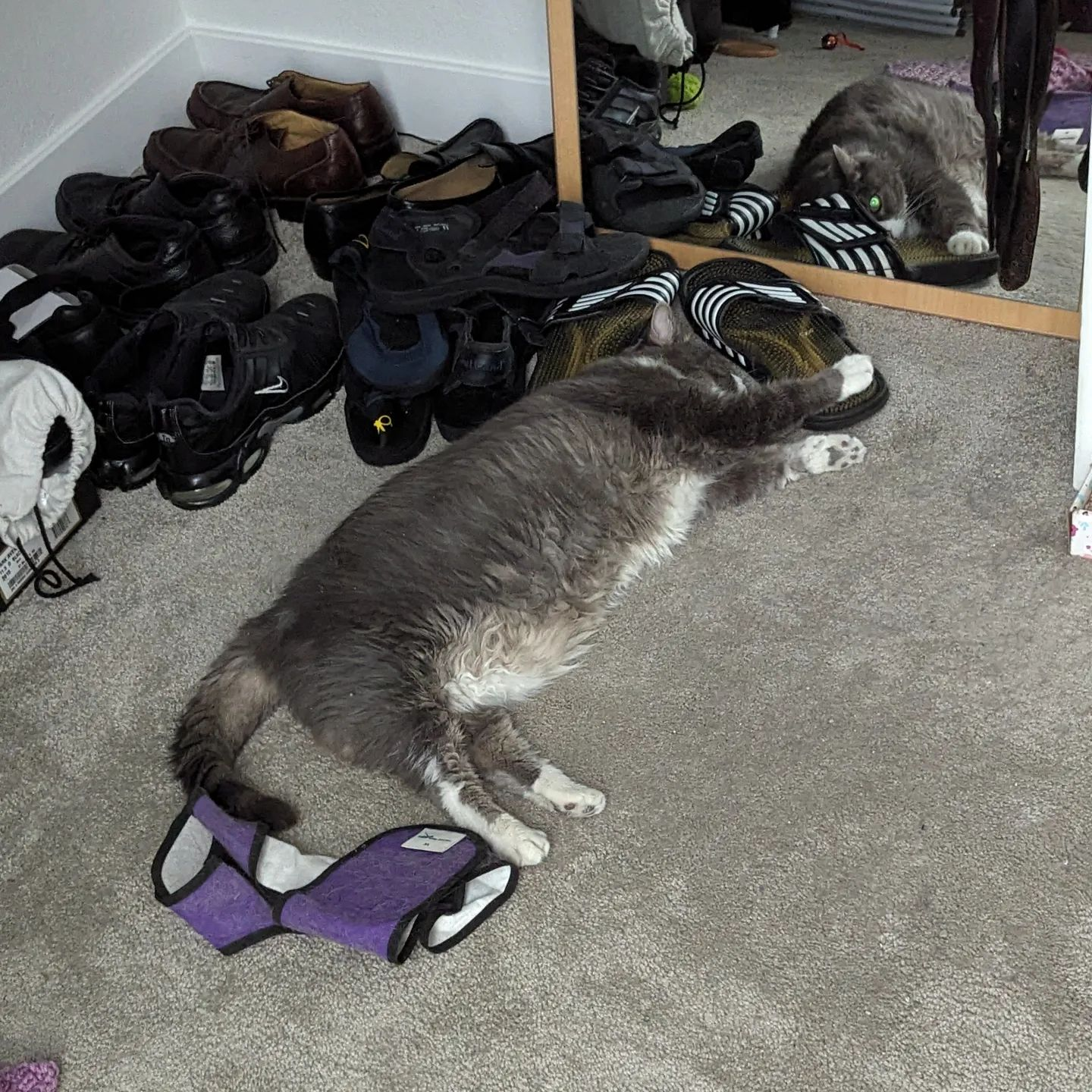 The cat loaf says she is done with this place. Urine and blood work looks good for a cat her age except blood sugar and dehydration. Blood sugar is in the same range as it has been for the last year and a half.