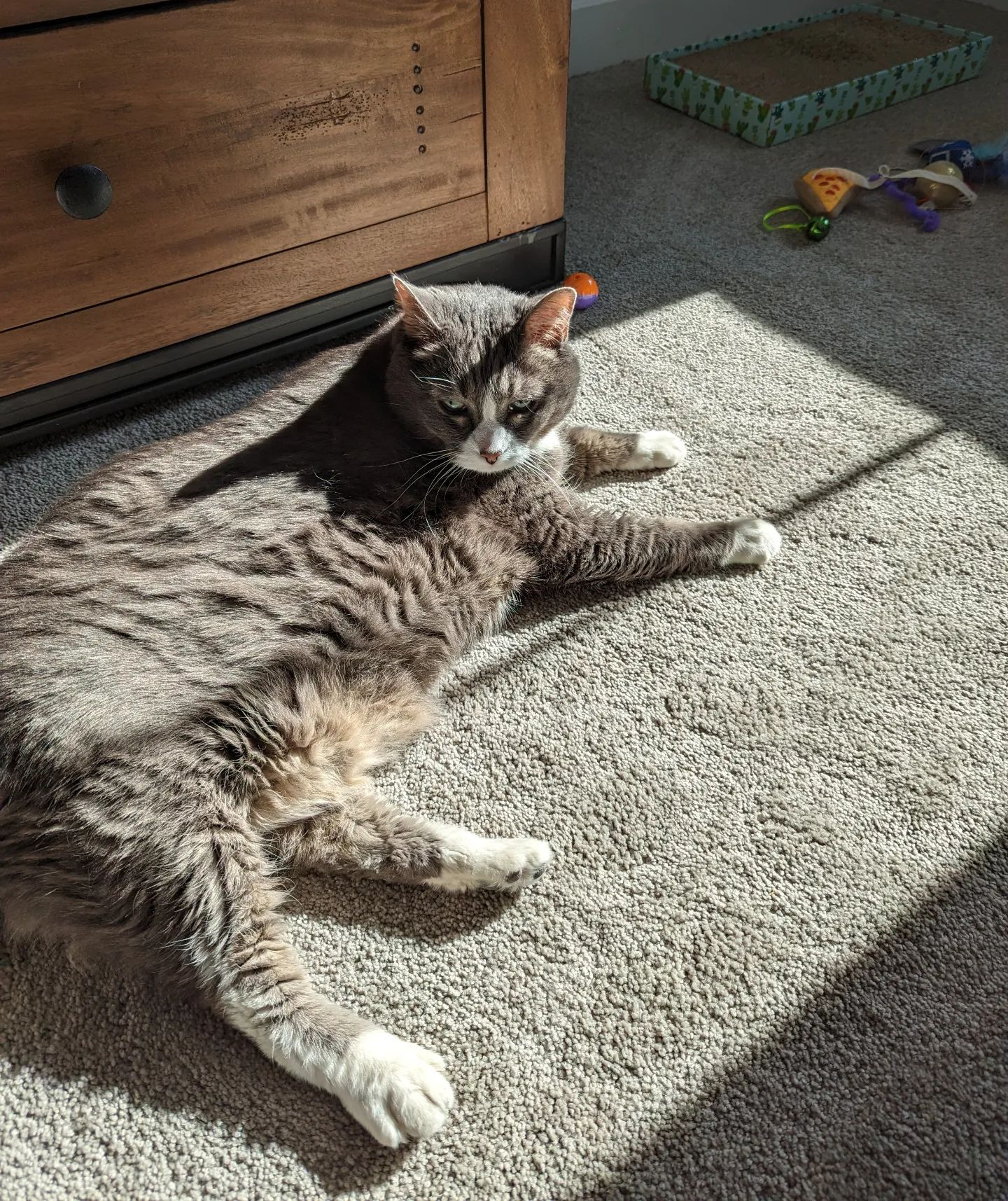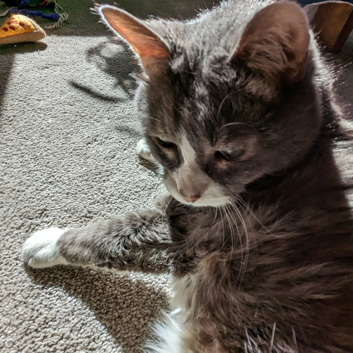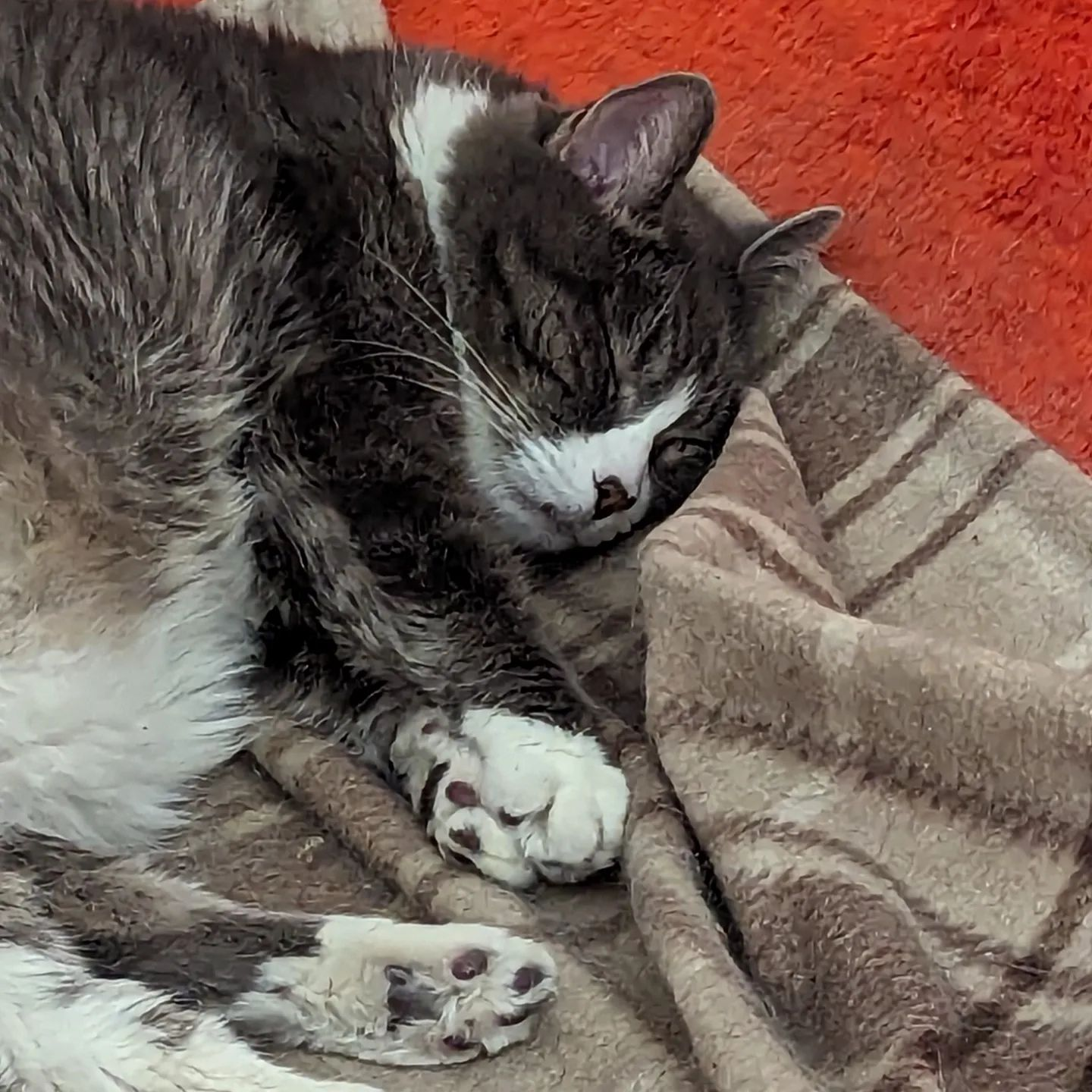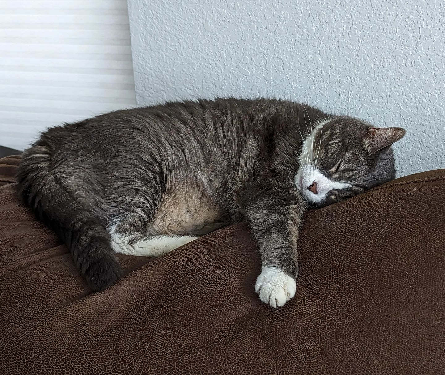 The cat loaf says she is done with this place. Urine and blood work looks good for a cat her age except blood sugar and dehydration. Blood sugar is in the same range as it has been for the last year and a half.