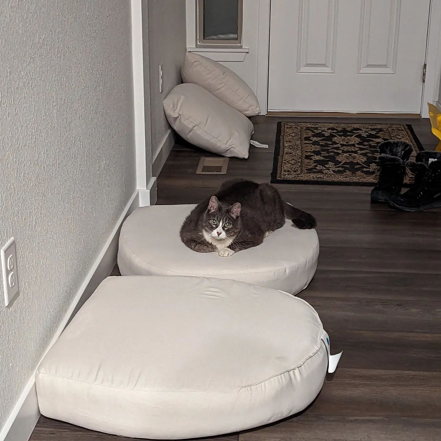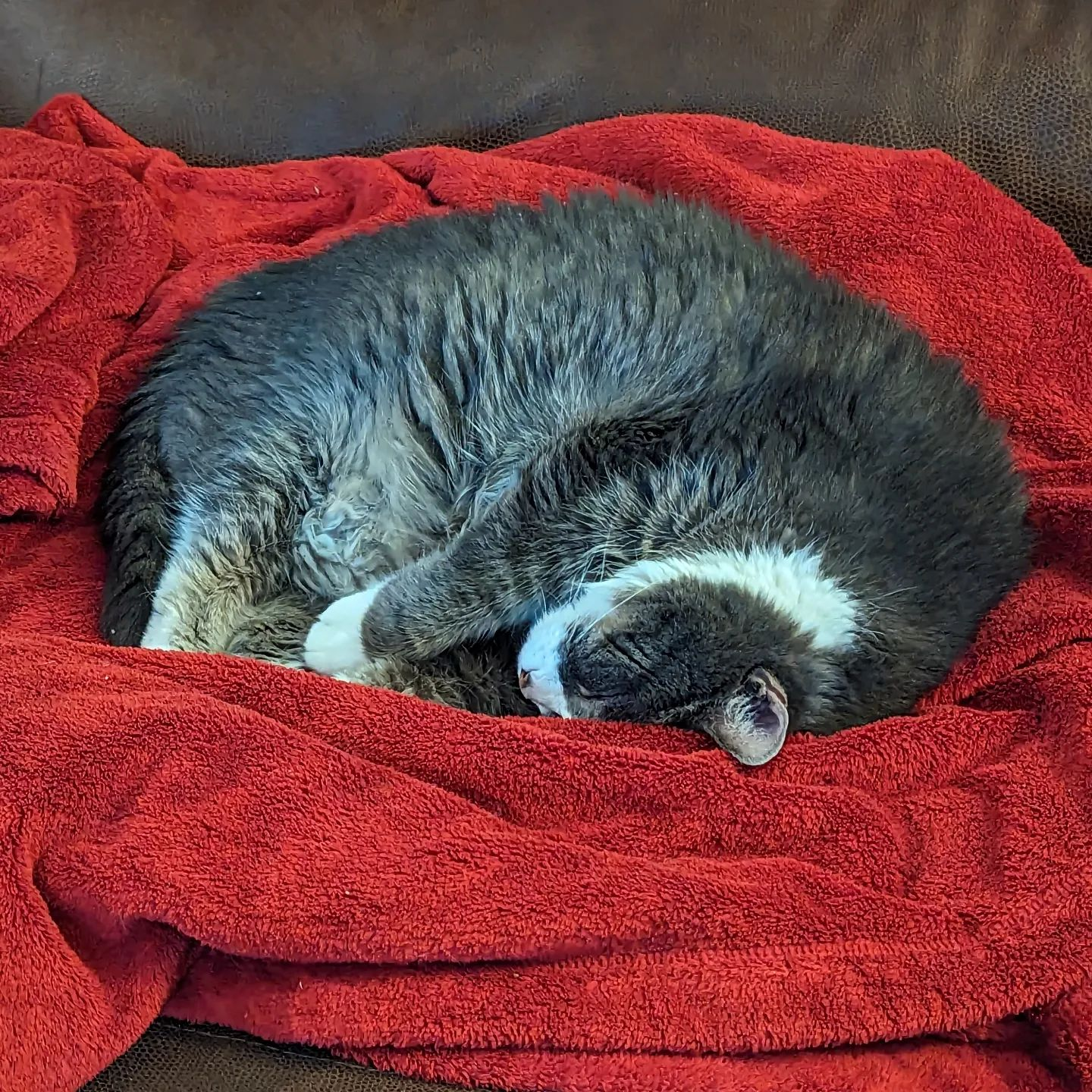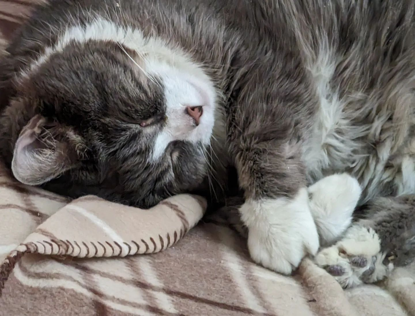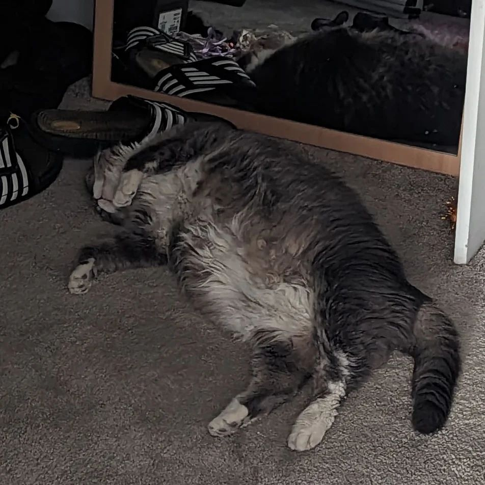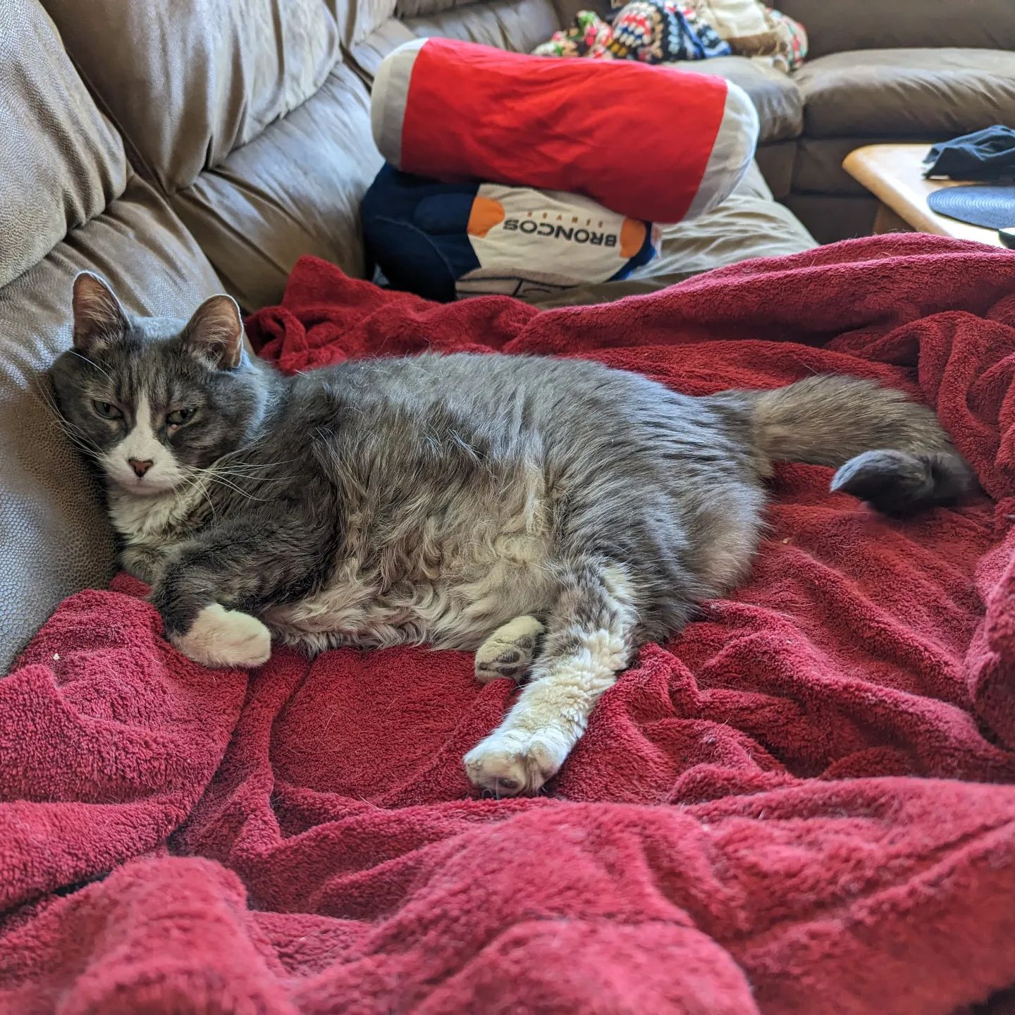 The cat loaf says she is done with this place. Urine and blood work looks good for a cat her age except blood sugar and dehydration. Blood sugar is in the same range as it has been for the last year and a half.