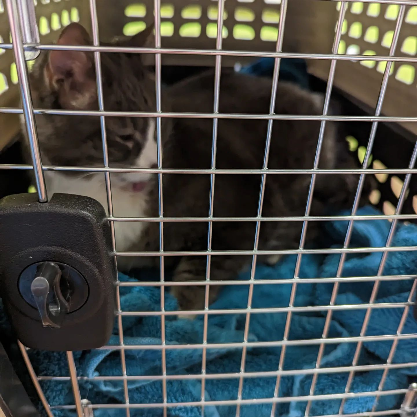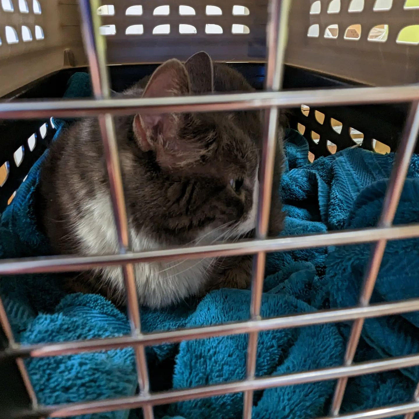 Waiting for the hospital discharge paperwork. Carrier, sweet carrier. Ziggy was happy to be loaded up and one step closer to heading home.