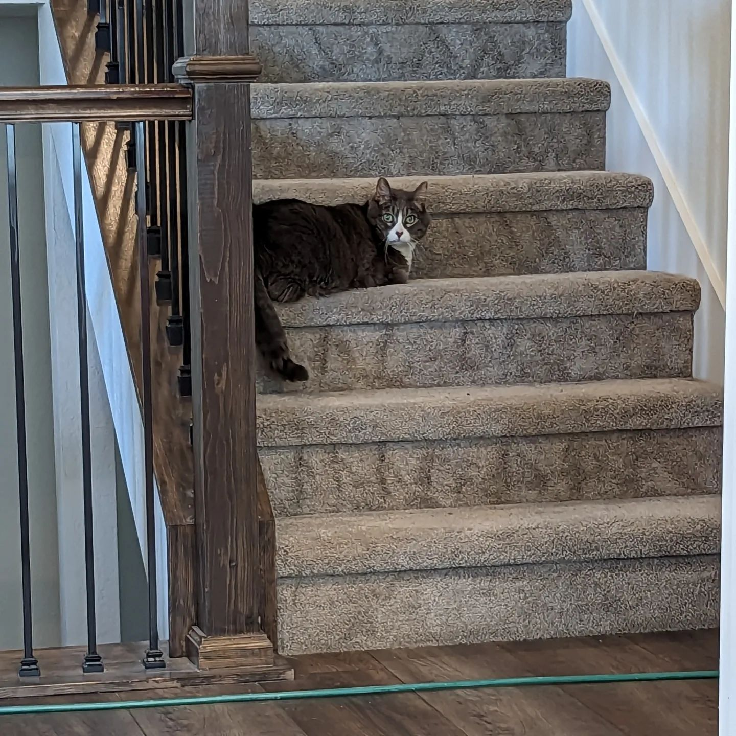 The infinity stairs project was a success! Part 7 of 7....drive the project manager in your life a little crazy by having some scope creep... Go sit outside the front door, too.