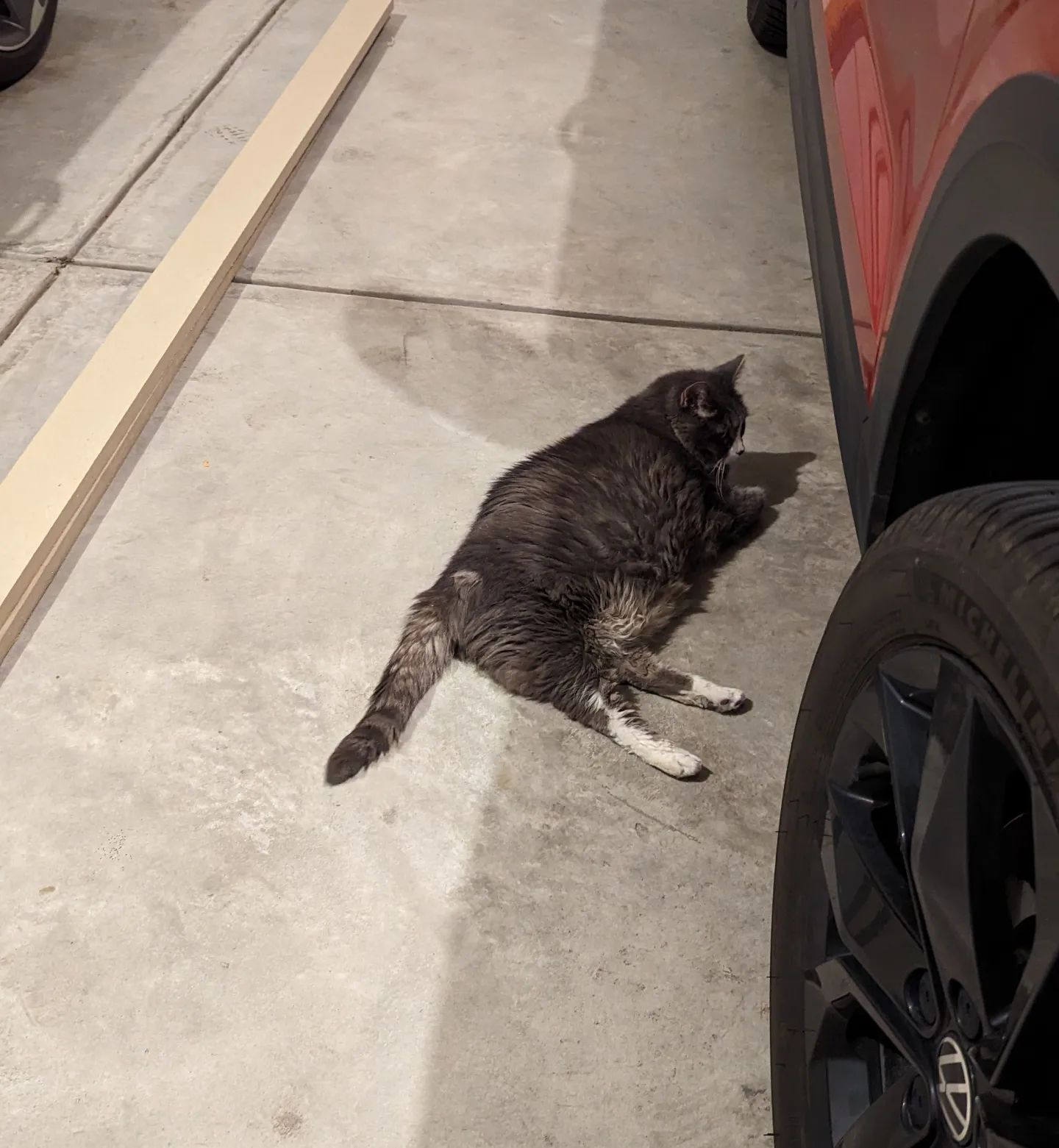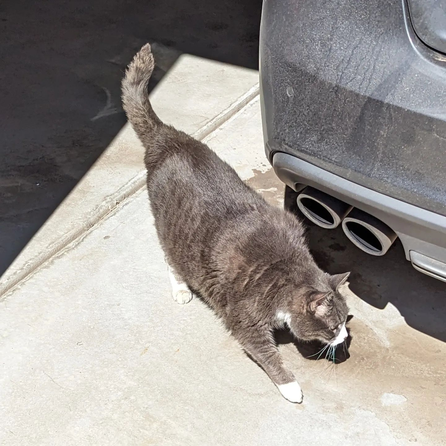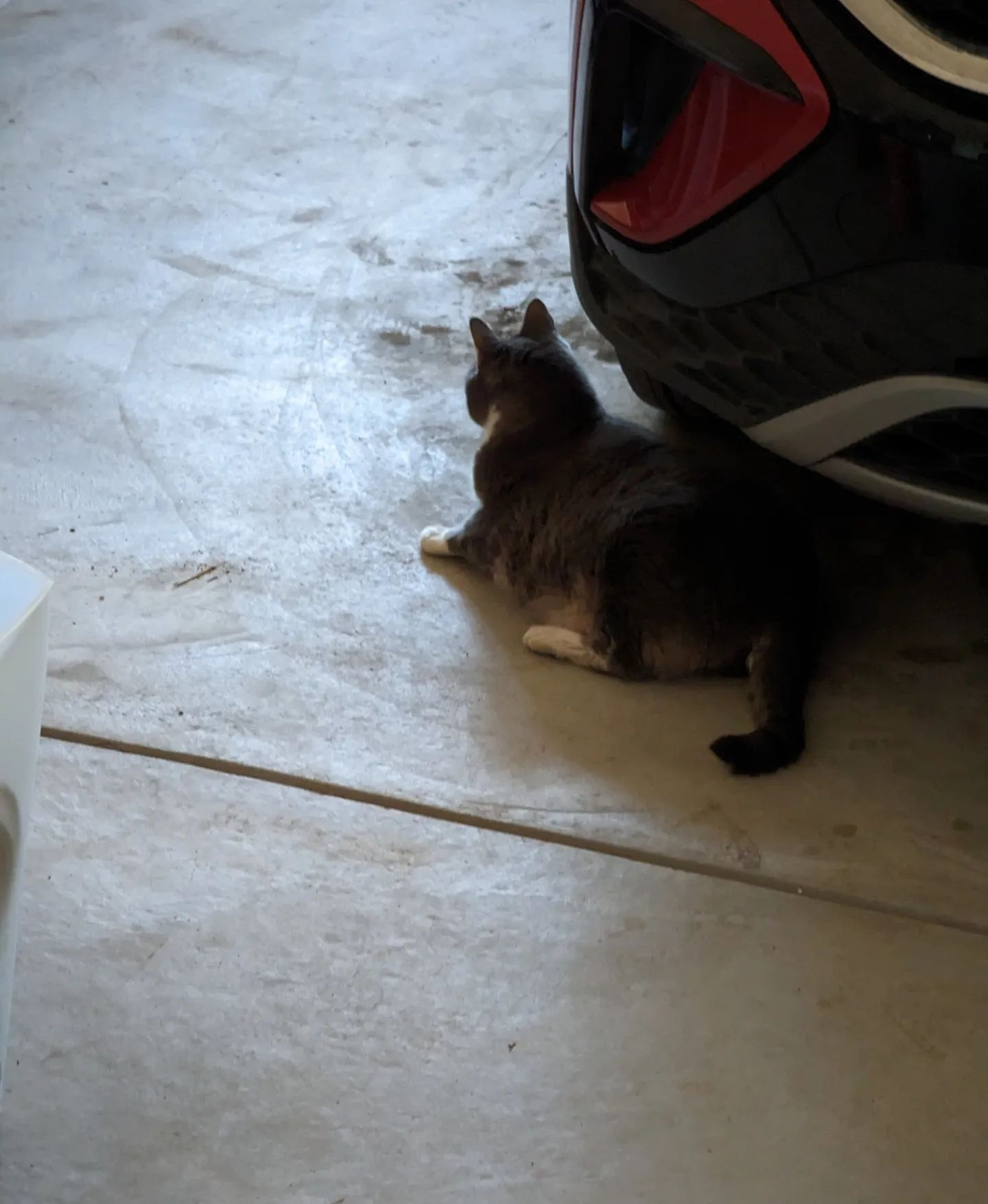 Garage time... Ziggy has been convinced there is something of interest under my car