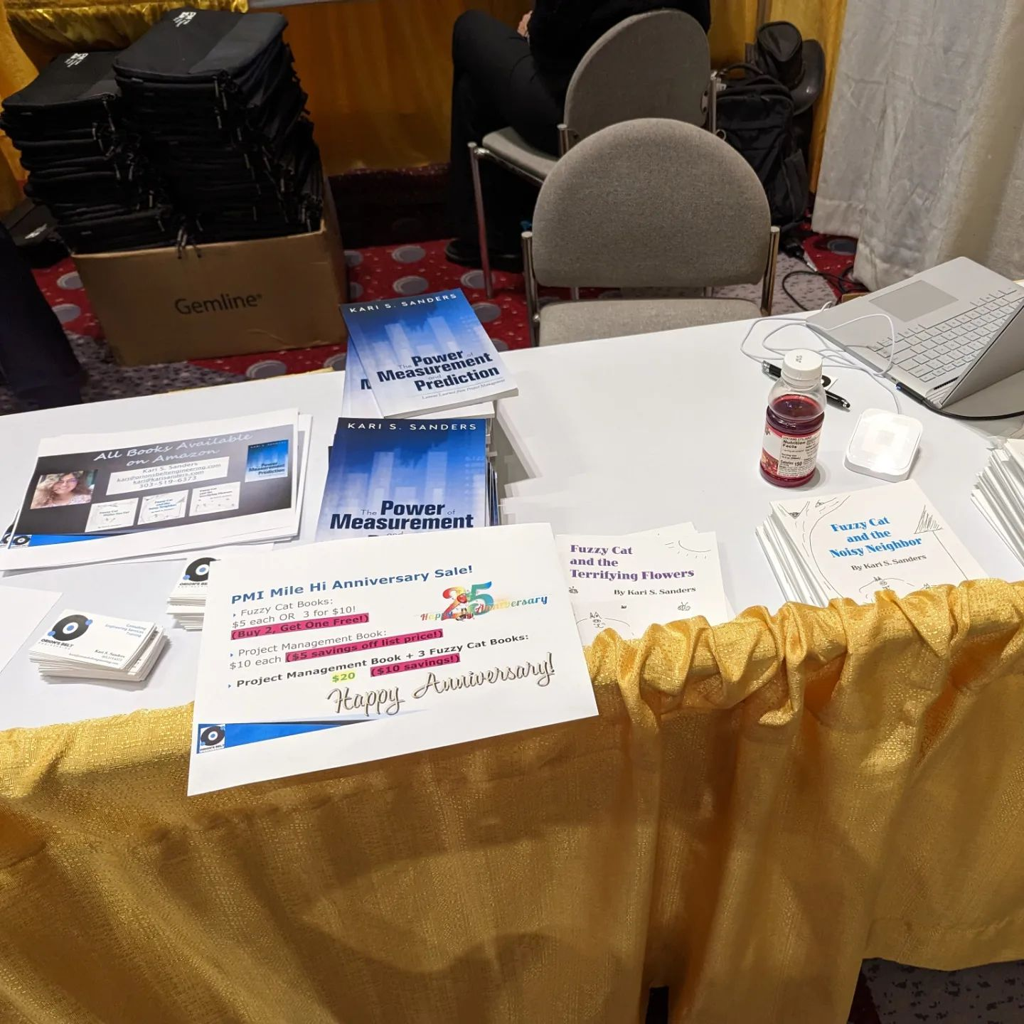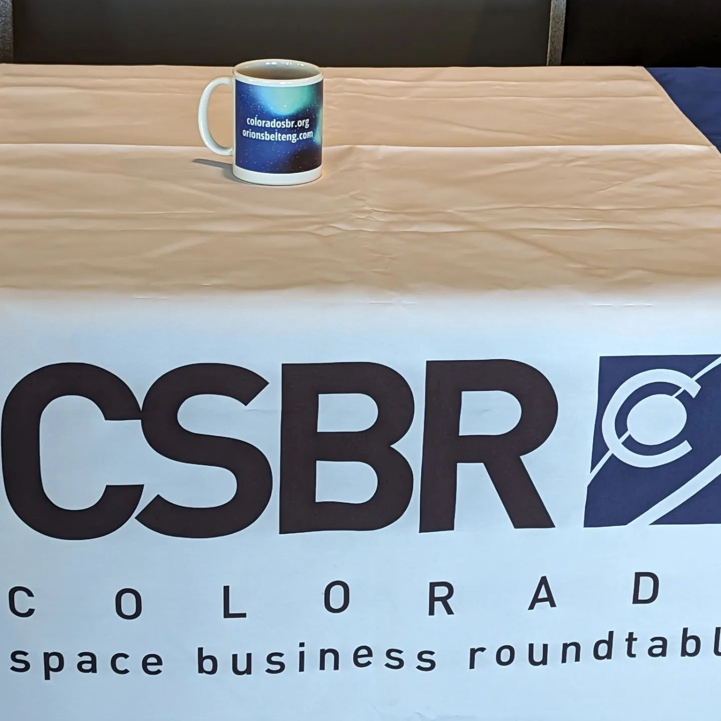 Cat loaf wants to know if my conference is done....yes, it is. Great business development opportunities with the Colorado Space Business Roundtable this week. My company sponsored the mugs - so happy with how they turned out! Swipe for pictures.