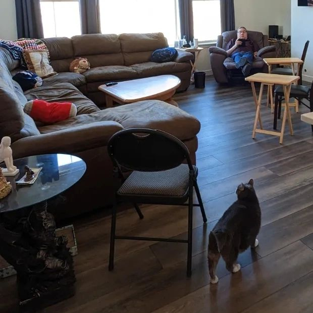 Thanks to my brother for stopping by and helping with the basement shelves! Was great to have a short visit. The shelves passed inspection. The piles of stuff that I moved to make room for the shelves did not pass inspection. I told the inspector not to worry....more organization is coming soon! Swipe to see Ziggy's full inspection.