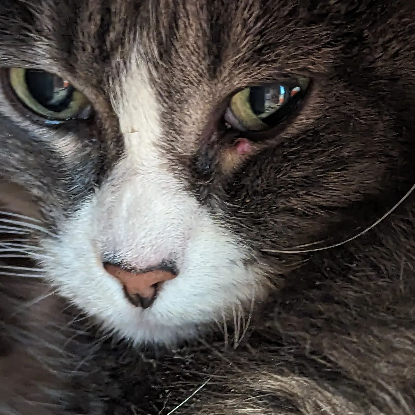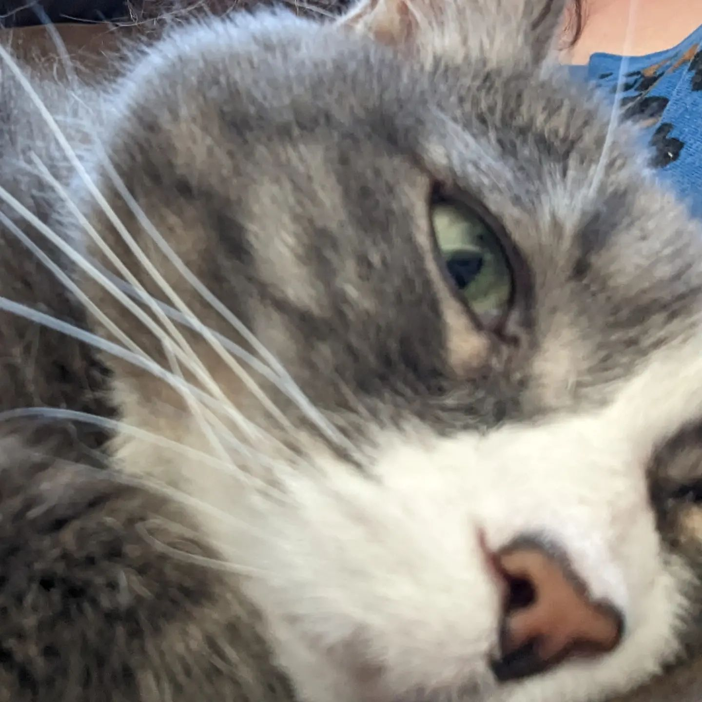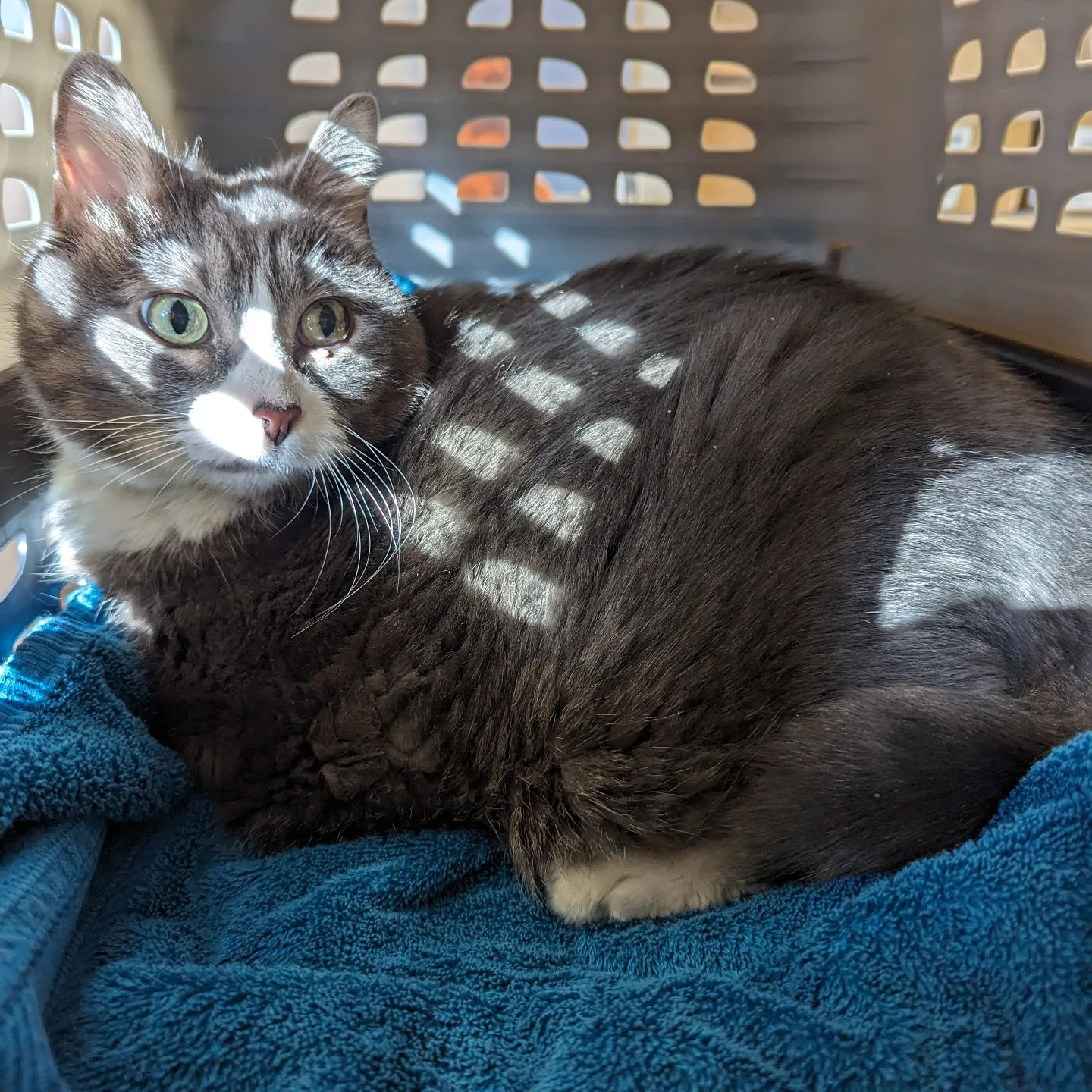 At the ER vet with Ziggy this morning. She hasn't been feeling all week, with substantially reduced appetite and water intake. Hoping she is just dehydrated from a bad cold, wanted to get it dealt with quickly due to her age and kidney problems. She's still feisty, though! We very quickly went from "Ziggy is so cute!" to a delivery of Ziggy wrapped up in the towel from her carrier after they moved me to a private room. Vitals were good, no fever. Waiting for the vet shift change to complete.