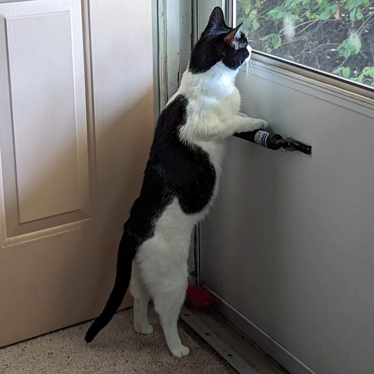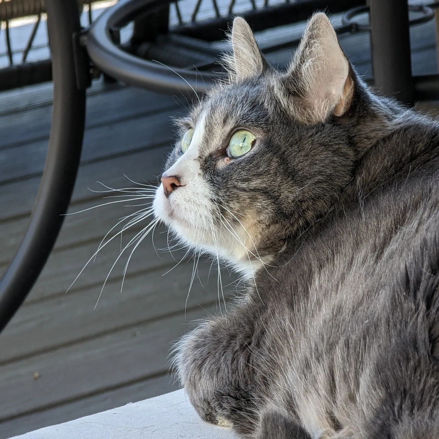Happy Won't Look Whisker Wednesday! Ziggy was on guard duty this morning. Very serious business. Swipe for more pictures.