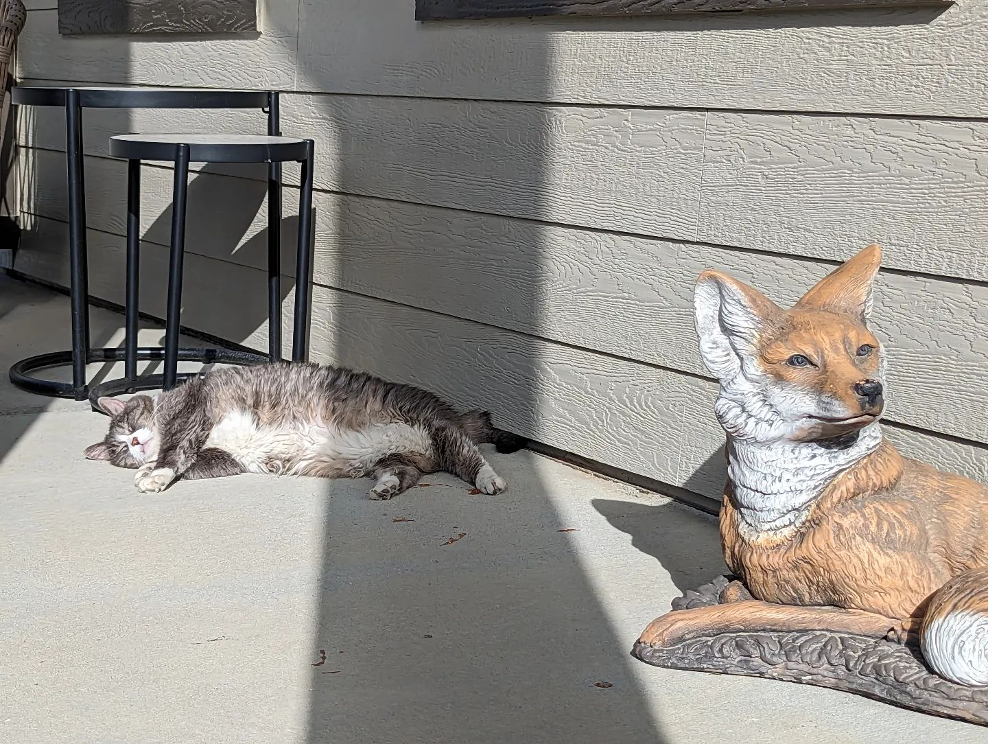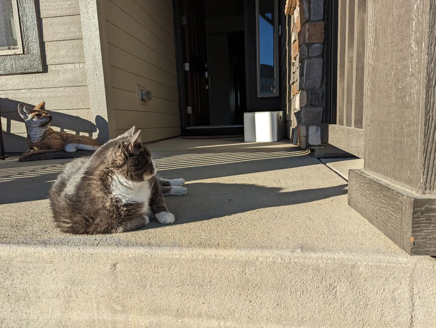Caturday guard duty .... It's warm and sunny now. No Christmas snow expected on the high altitude desert plains of Colorado. Happy Caturday! .....