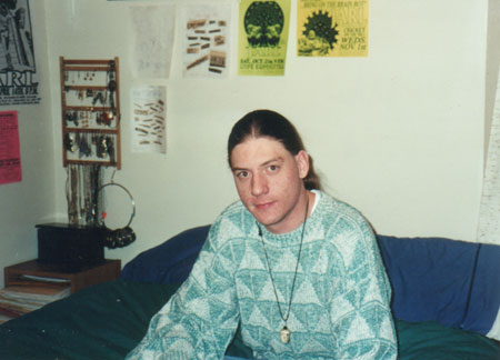 for the School of Mines). This is a picture I took of Mike in our bedroom, which was decorated with flyers from the band's shows.