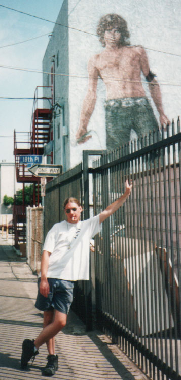 Here's my Mike looking cool in front of a Jim Morrison mural.