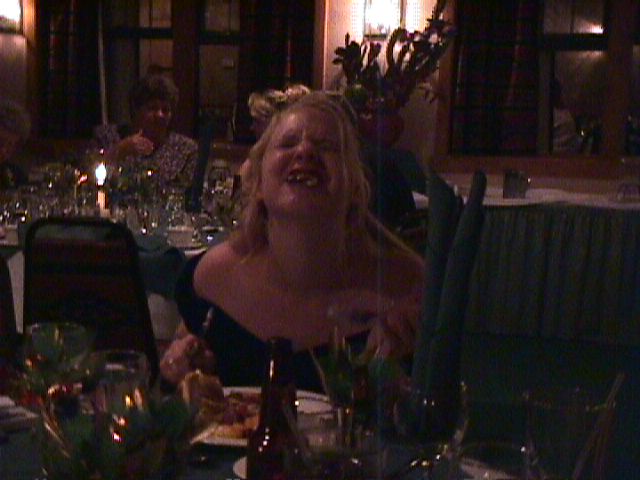 Mike and me having our first dinner as a married couple: