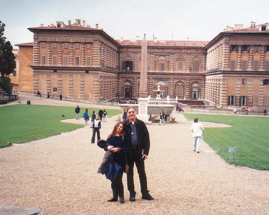 Information from "Eyewitness Travel Guides: Italy", pages 294-295: "The Palazzo Pitti was originally built for the banker Luca Pitti. The huge scale of the building, begun in 1457 and attributed to Brunelleschi, illustrated Pitti's determination to out rival the Medici family through its display of wealth and power. Ironically, the Medici later purchased the palazzo when building costs bankrupted Pitti's heirs. In 1550, it became the main residence of the Medici, and subsequently all the rulers of the city lived here. Today, the richly decorated rooms exhibit countless treasures from the Medici collections.