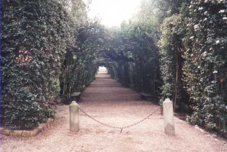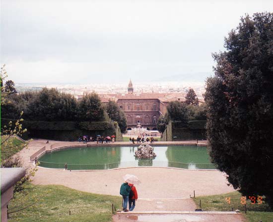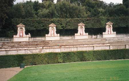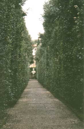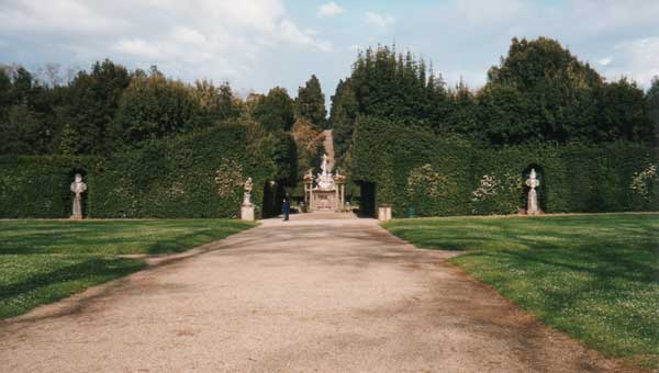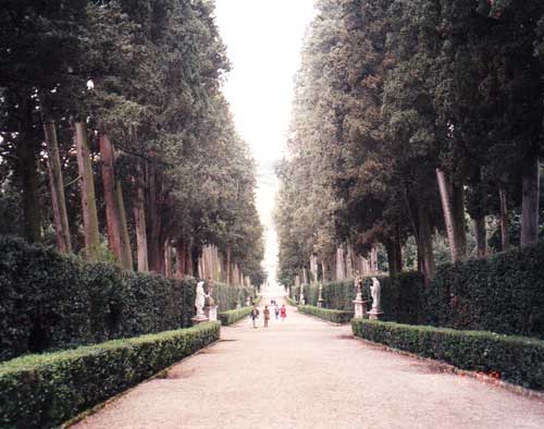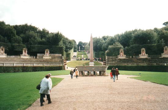 The Boboli Gardens: The Boboli Gardens, a lovely place to escape the rigors of sightseeing, were laid out for the Medici after they bought the Palazzo Pitti in 1549. An excellent example of stylized Renaissance gardening, they were opened to the public in 1766. The formal parts of the garden, nearest the palazzo, consist of box-hedges clipped into symmetrical geometric patterns. These lead to wilder groves of oak and cypress trees, planted to create a contrast between artifice and nature. Countless statues adorn the gardens, particularly along the Viottolone, an avenue of cypress trees planted in 1637. High above the gardens stands the Forte di Belvedere, designed by Buontalenti in 1590 for the Medici Grand Dukes."