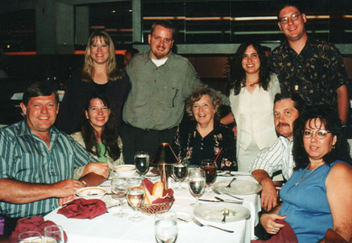 From left to right: Terry (Mike's dad), Gwenn (his mom), Rannae (his sister), Rob, Grandma, me, Mike, Uncle Mark, and Aunt Bella