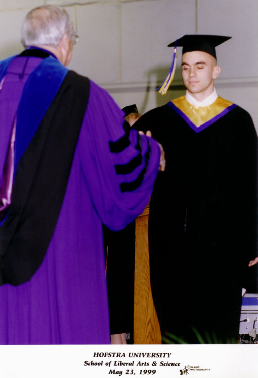 My brother graduated with a Bachelor's Degree from Hofstra University on May 22, 1999. There were two ceremonies - one for honors students and one for all the students. Mike, my Mom, my Dad, Grandma B (my Mom's Mom), and me were in attendance. The day after the graduation, my parents held a party for my brother. Mike (hubby Mike, not brother Mike) was the photographer for this page.