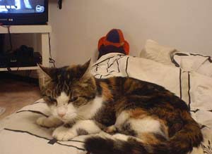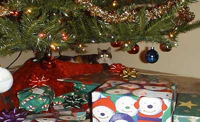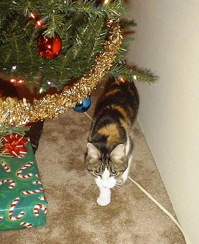 Our Apartment: December 18, 2002 Phoebe enjoyed hiding behind the tree.