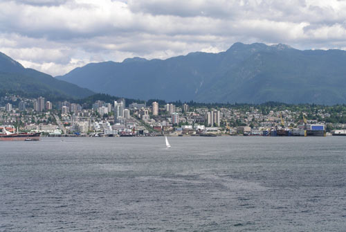 View of a street in Vancouver from the walkway