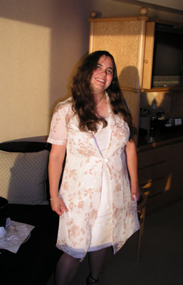 The dinner lasted over two hours, and it was everything we had hoped for. We had a table right next to the window - overlooking the Island Pricess, mostly. We watched as they prepared the ship for the evening's festivities. A chatty couple at the table next to us informed us that the Island Princess was a brand new cruise ship, and they were preparing for a gala to celebrate its first cruise. The couple was not invited to the gala, but they did have tickets for the maiden voyage the following day.