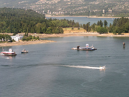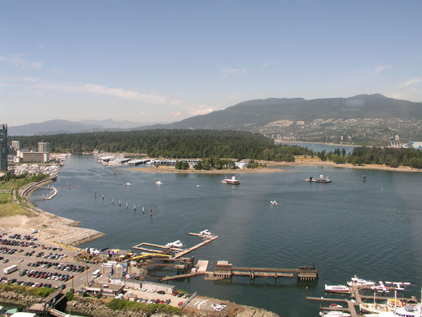 Looking west, toward Stanley Park (the tree-covered island) and the ocean: